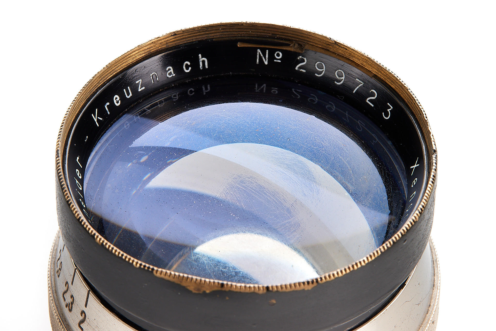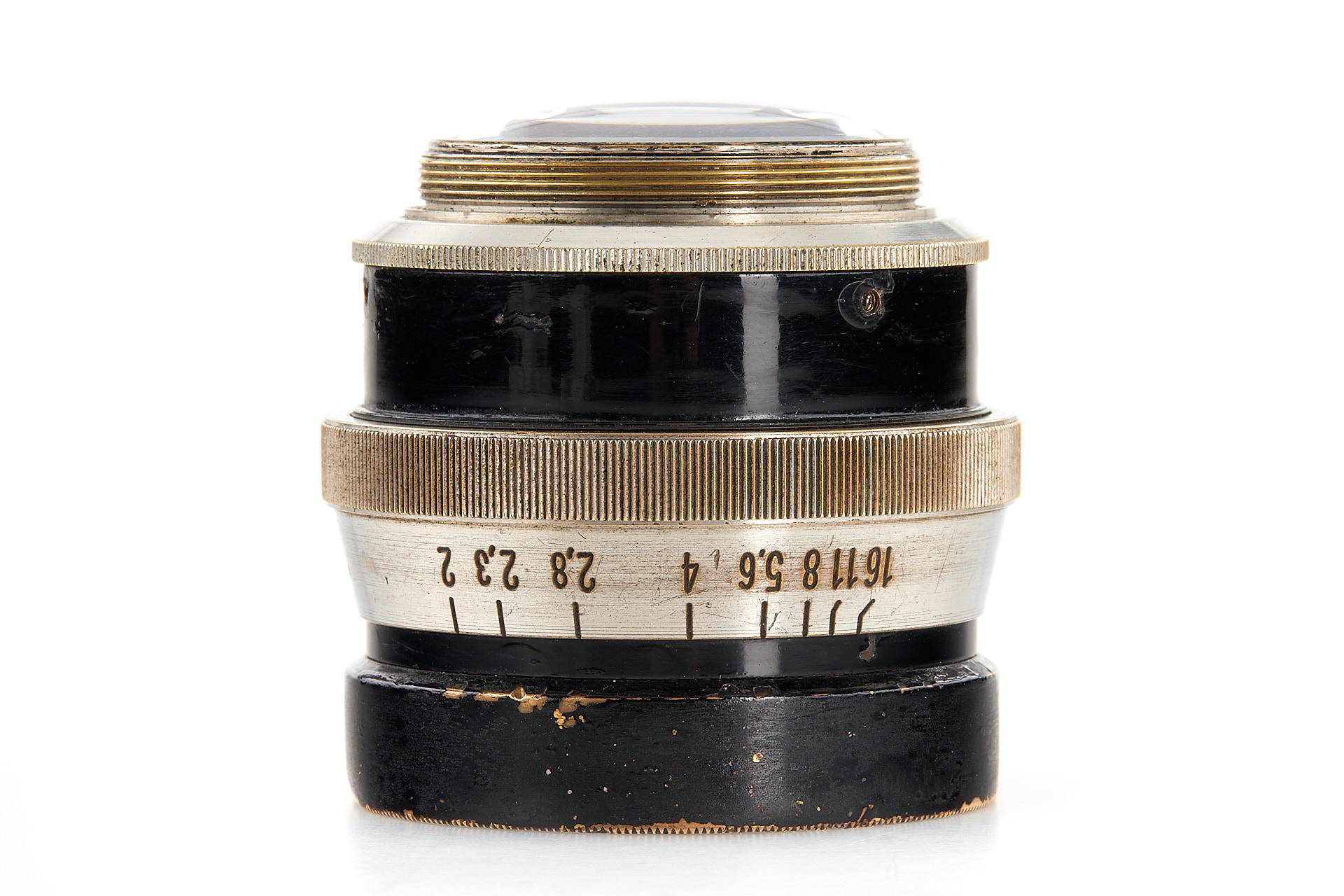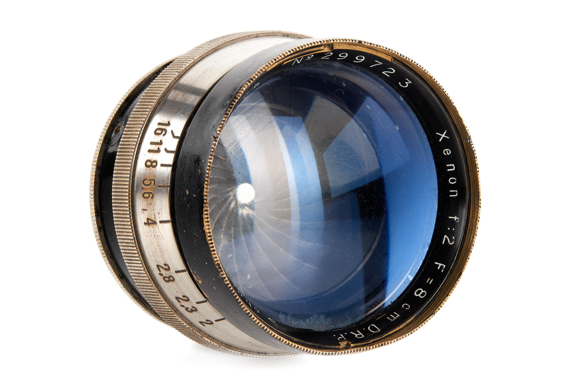 very rare, fast Xenon 2/8cm for medium format, in black paint/nickel finish, with a characteristic 'ping-pong ball' style protruding rear element, lightly coated optics with some cleaning marks, the lens was made in a small batch of only three units in 1934