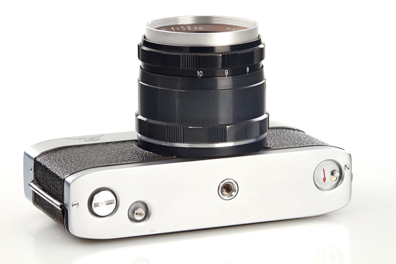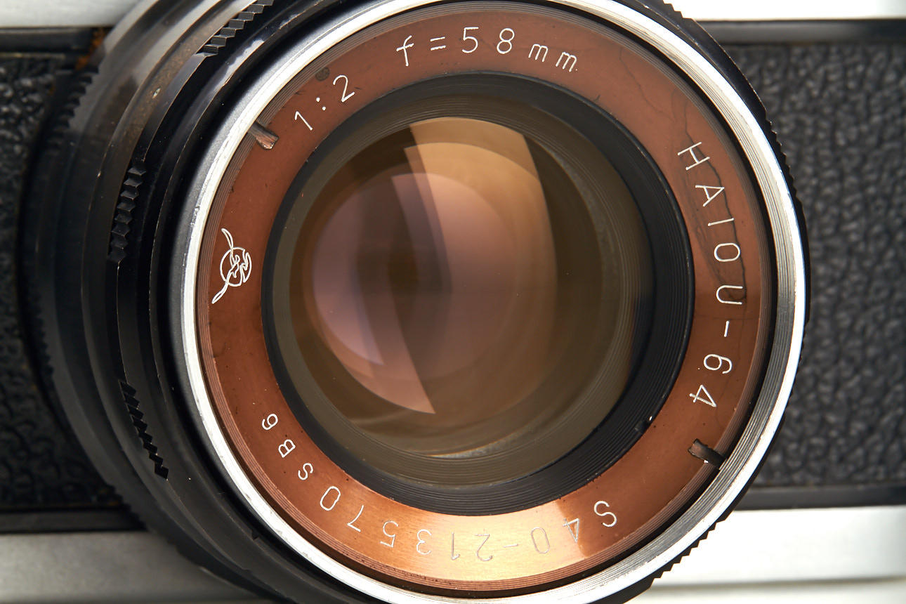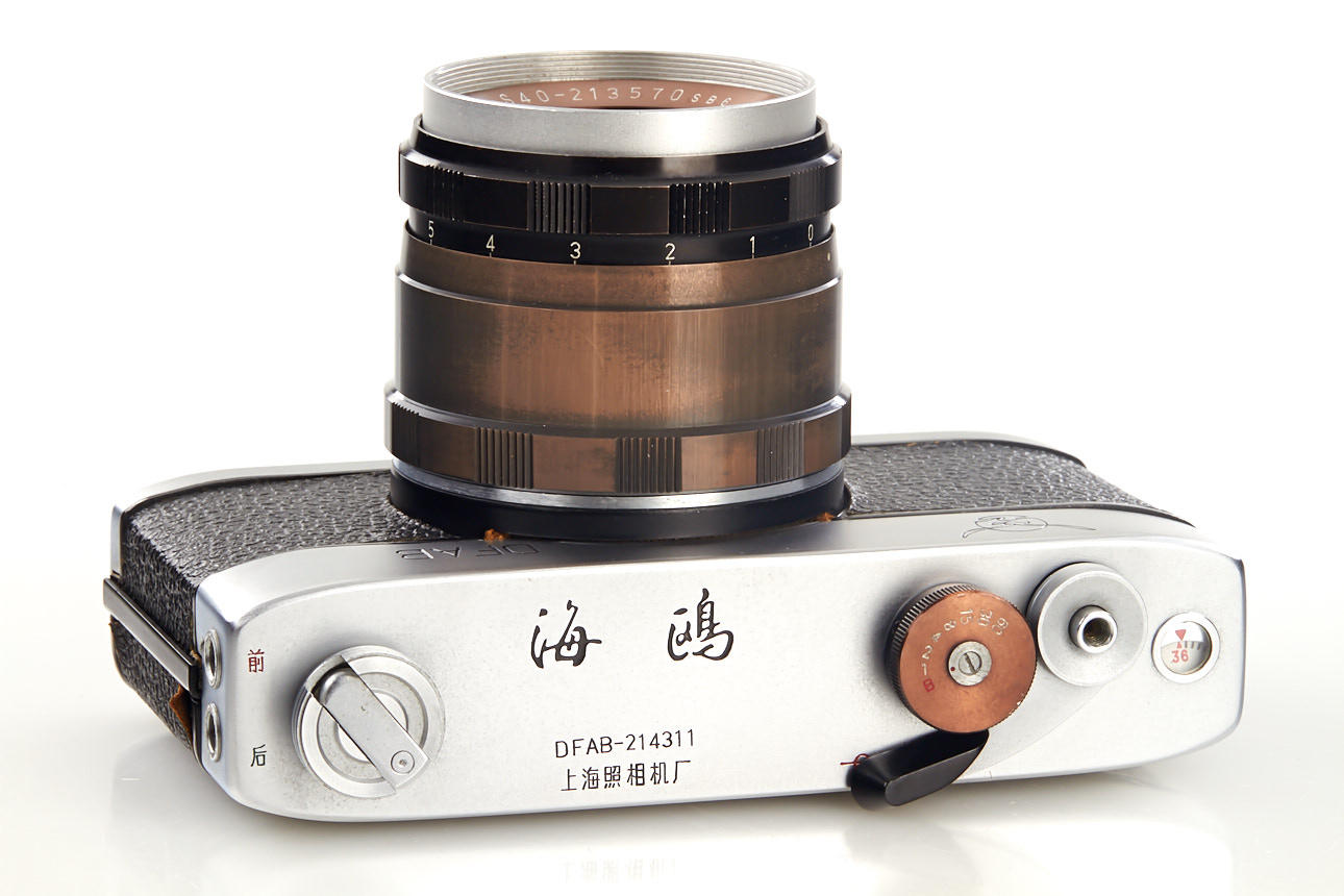 very rare Chinese scientific camera for 24x36mm, without finder, in perfect working condition, with interchangeable M42 Haiou-64 2/58mm no.S40-213570SB6 (focusing scale engraved with numbers 0 to 10, no iris diaphragm)