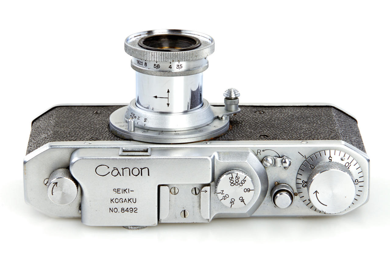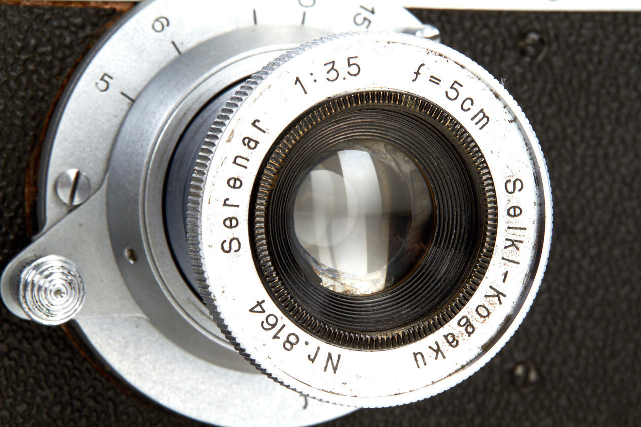 first model post-war Canon, very rare (total production less than 500 cameras), in beautiful original condition and working order, with matching collapsible Seiki-Kogaku 3.5/5cm Serenar no.8164, cap