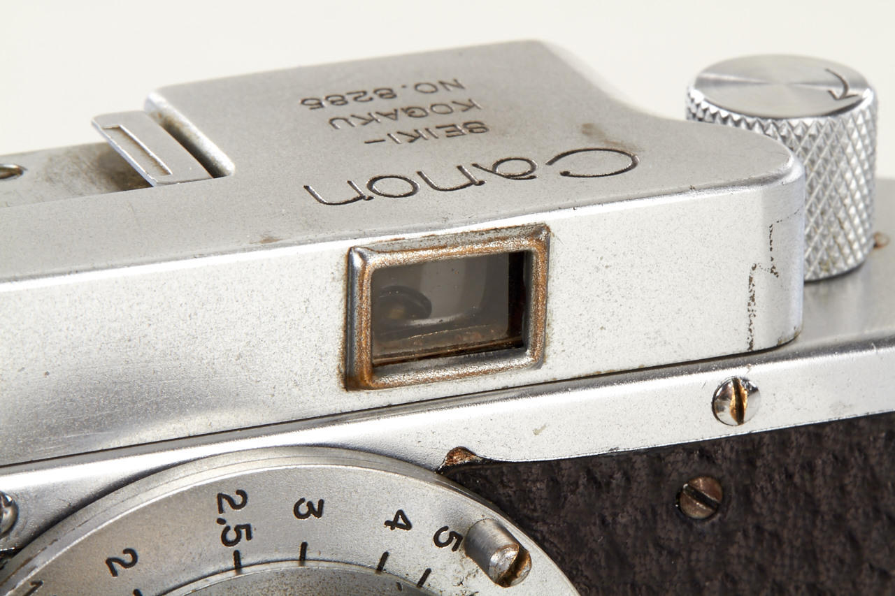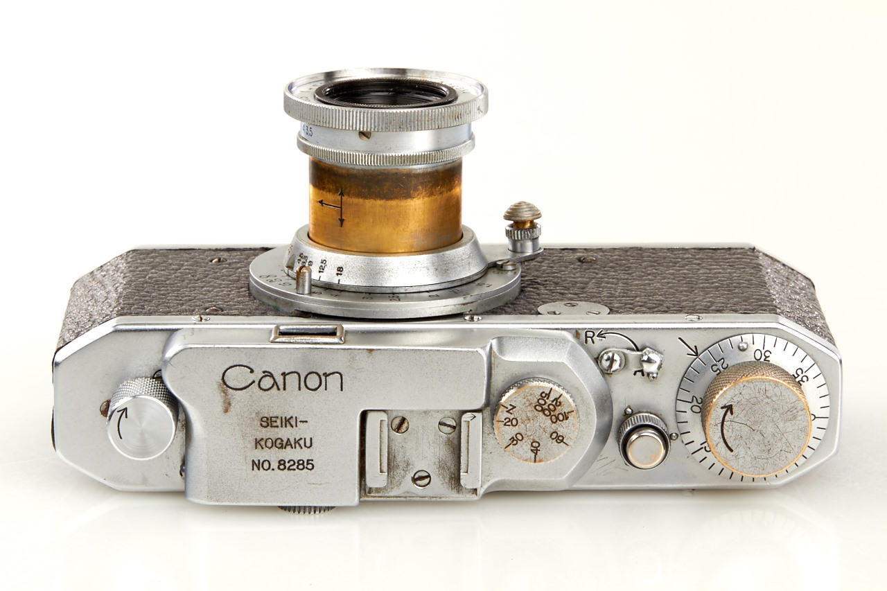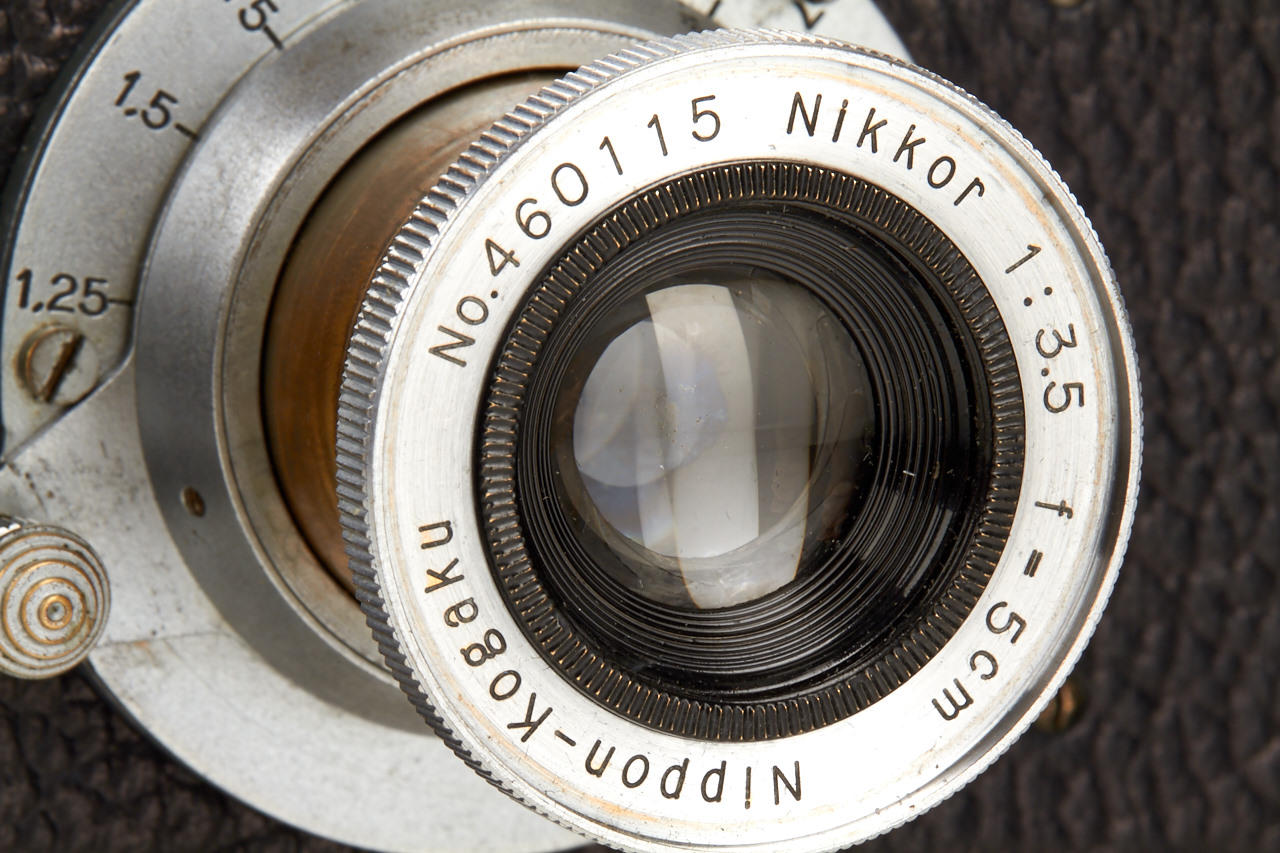 one of the rarest Canon cameras and the first camera built just after the war in August 1945 (total production less than 500 cameras) in original condition with matching and very special collapsible Nippon-Kogaku Nikkor 3.5/5cm no.460115, chrome Canon cap