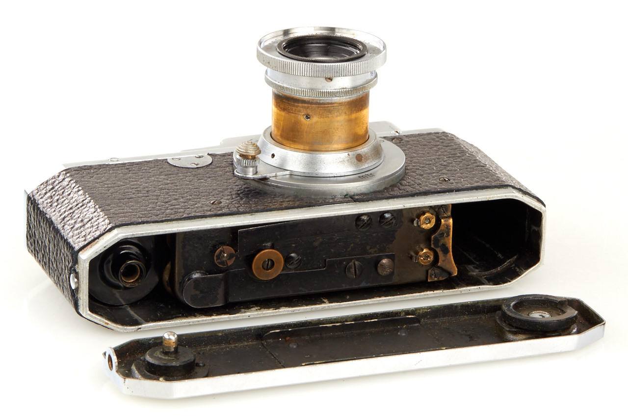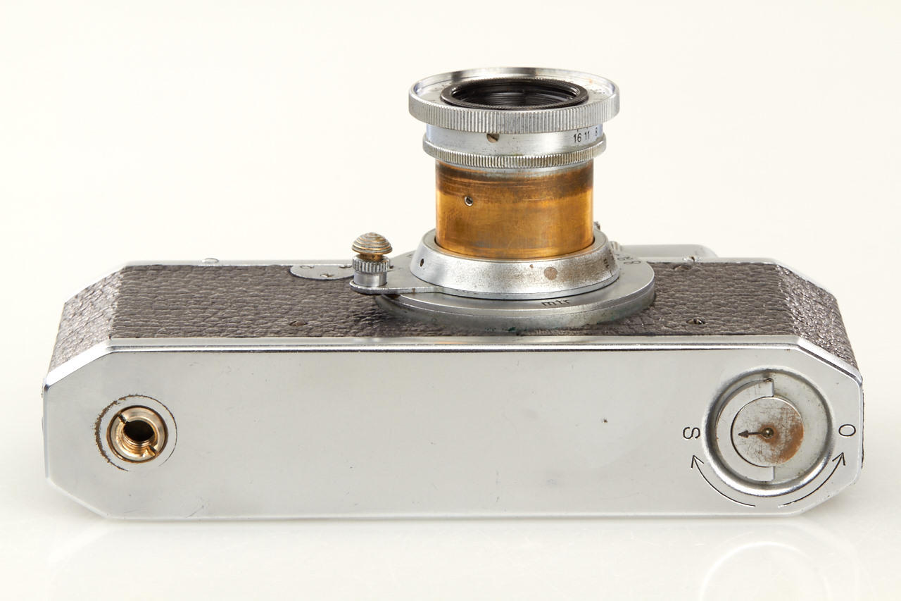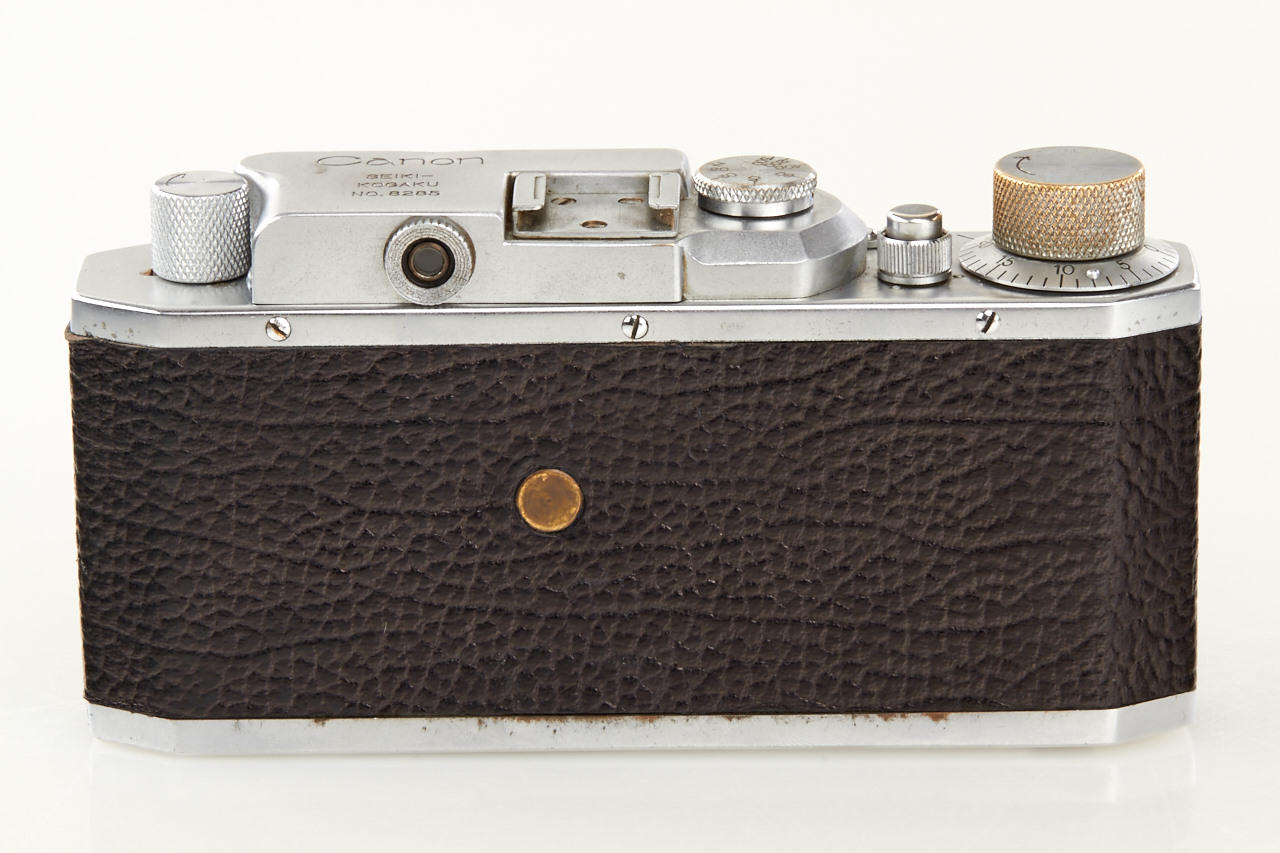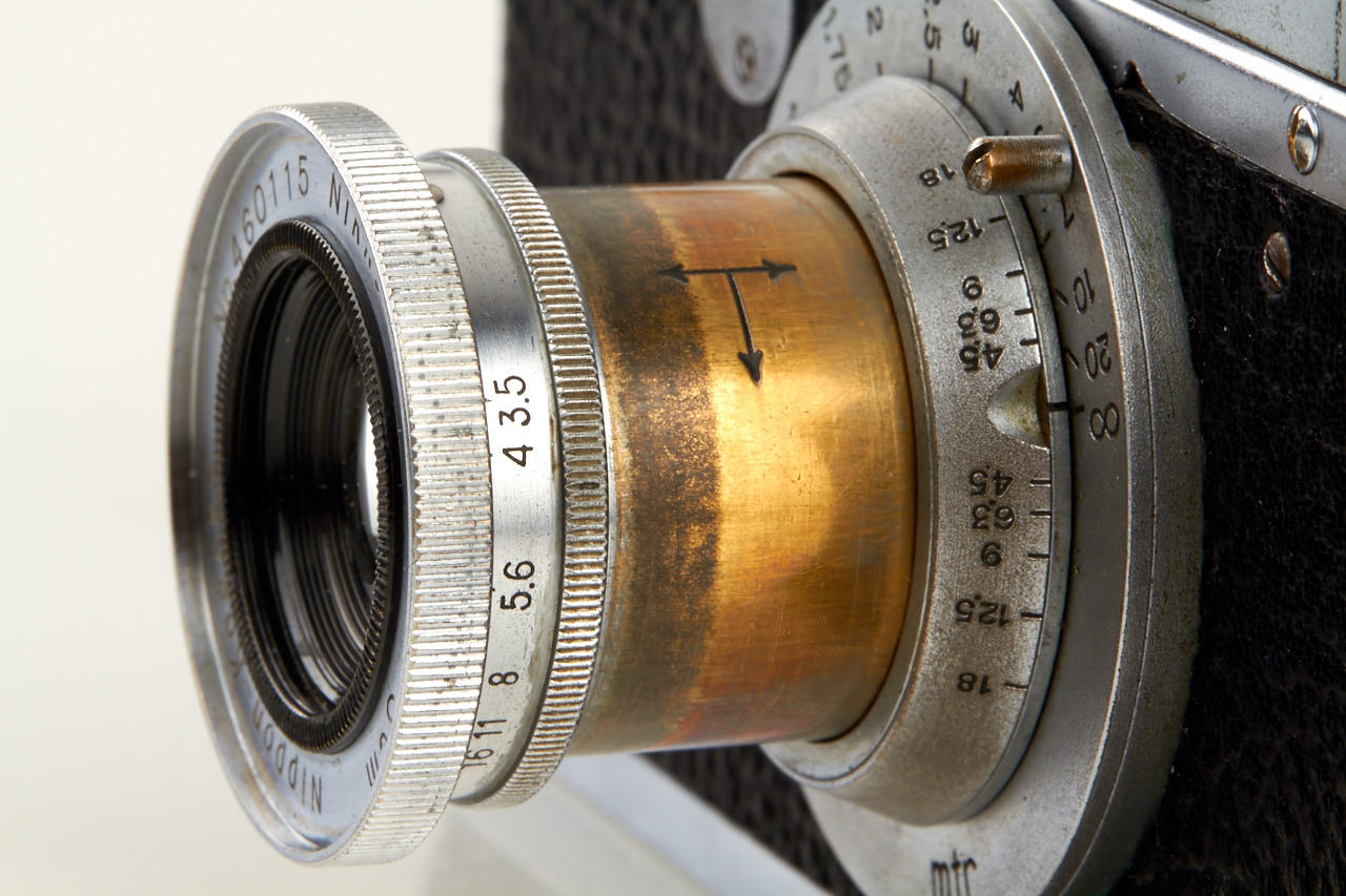 one of the rarest Canon cameras and the first camera built just after the war in August 1945 (total production less than 500 cameras) in original condition with matching and very special collapsible Nippon-Kogaku Nikkor 3.5/5cm no.460115, chrome Canon cap
