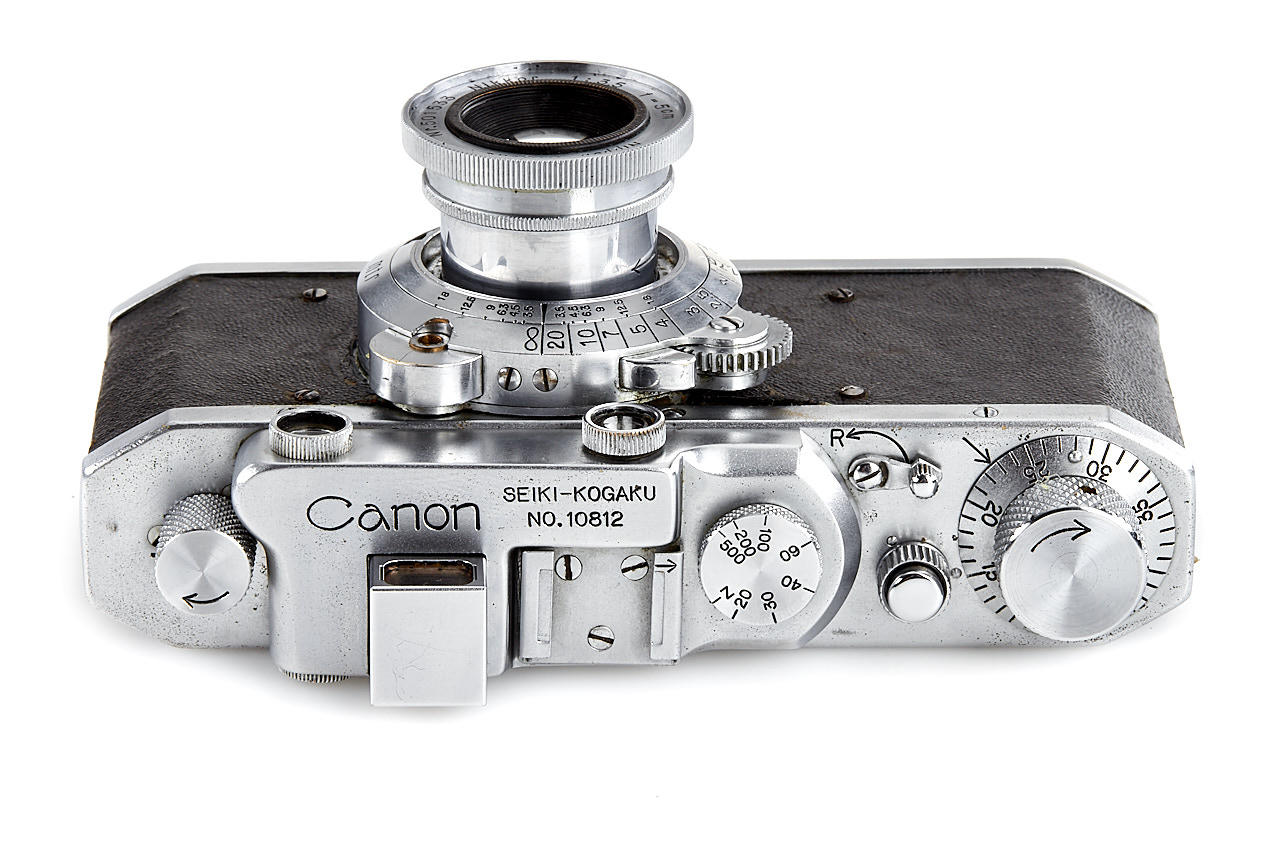 early Canon rangefinder camera with Nippon-Kogaku Nikkor 3.5/5cm no.501533, lens flange engraved with no.1943, in good original condition