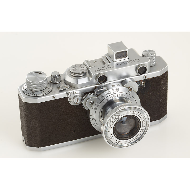 early Canon with very early Nippon-Kogaku Nikkor 2.8/5cm no.5029, camera and lens in fine condition, lens flange engraved Nr.3387, original black Canon lens cap