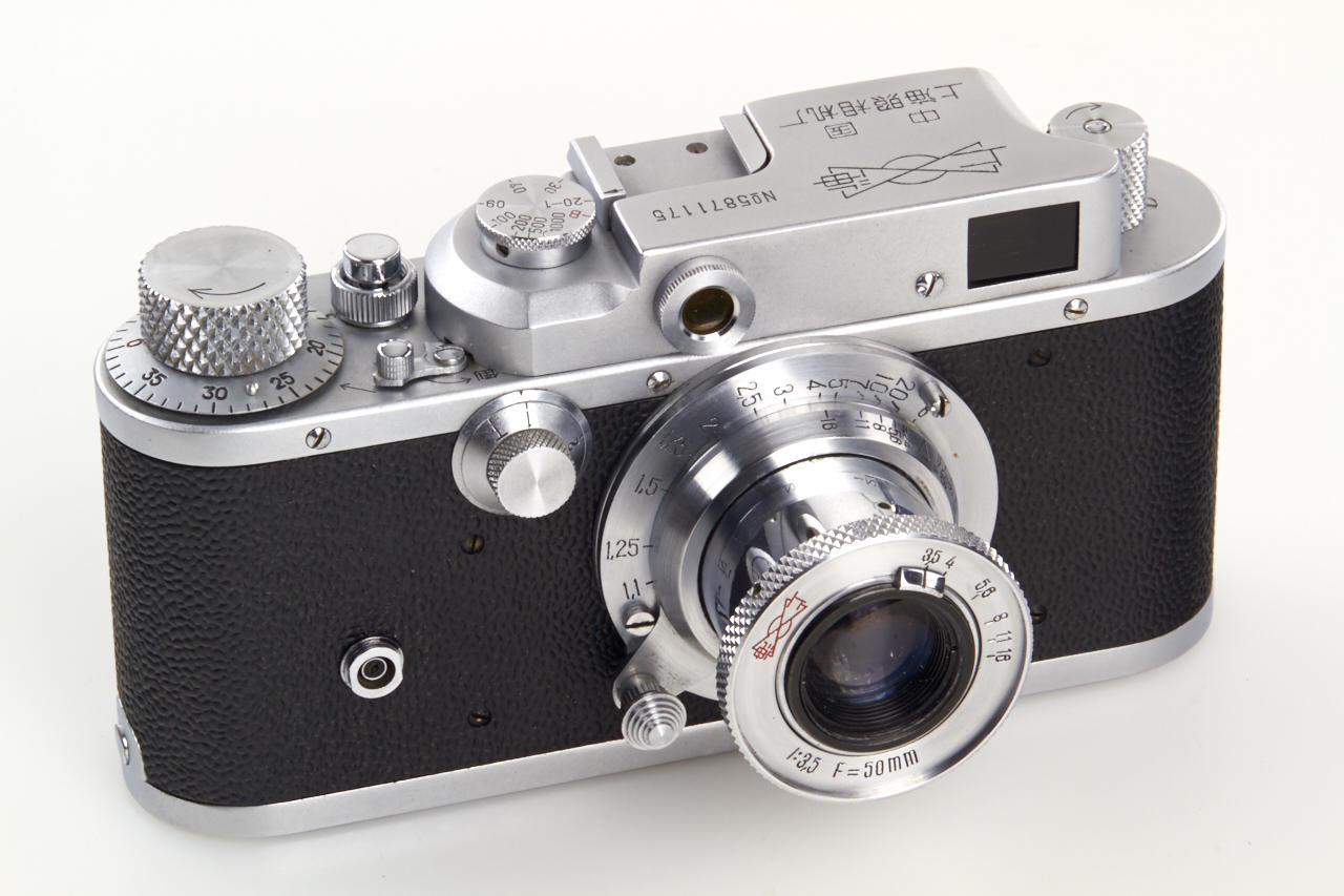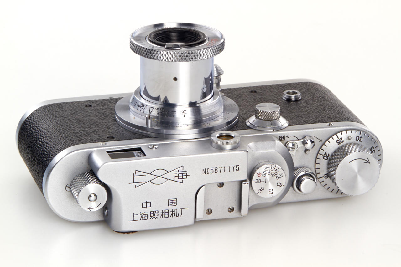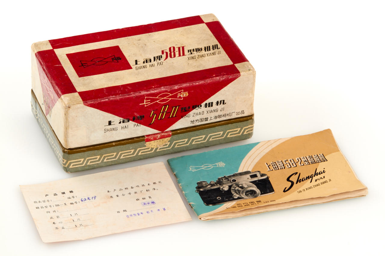 like new last model Shanghai with matching Shanghai lens 3.5/50mm, Shanghai cap, Chinese instructions, guarantee card from 1962, original maker's box - very rare set in this wonderful condition