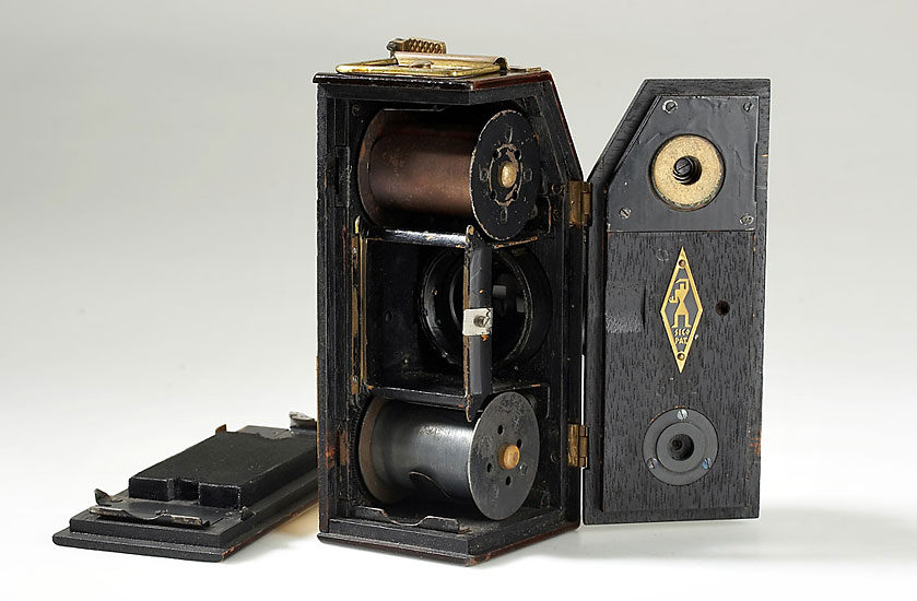 very rare Swiss camera for 25 pictures 30x40mm on unperforated 35mm film, in top original condition, both spools, 3.5/6cm Rüo Anastigmat no.5524 in Rim-set Compur shutter, original ever ready case
