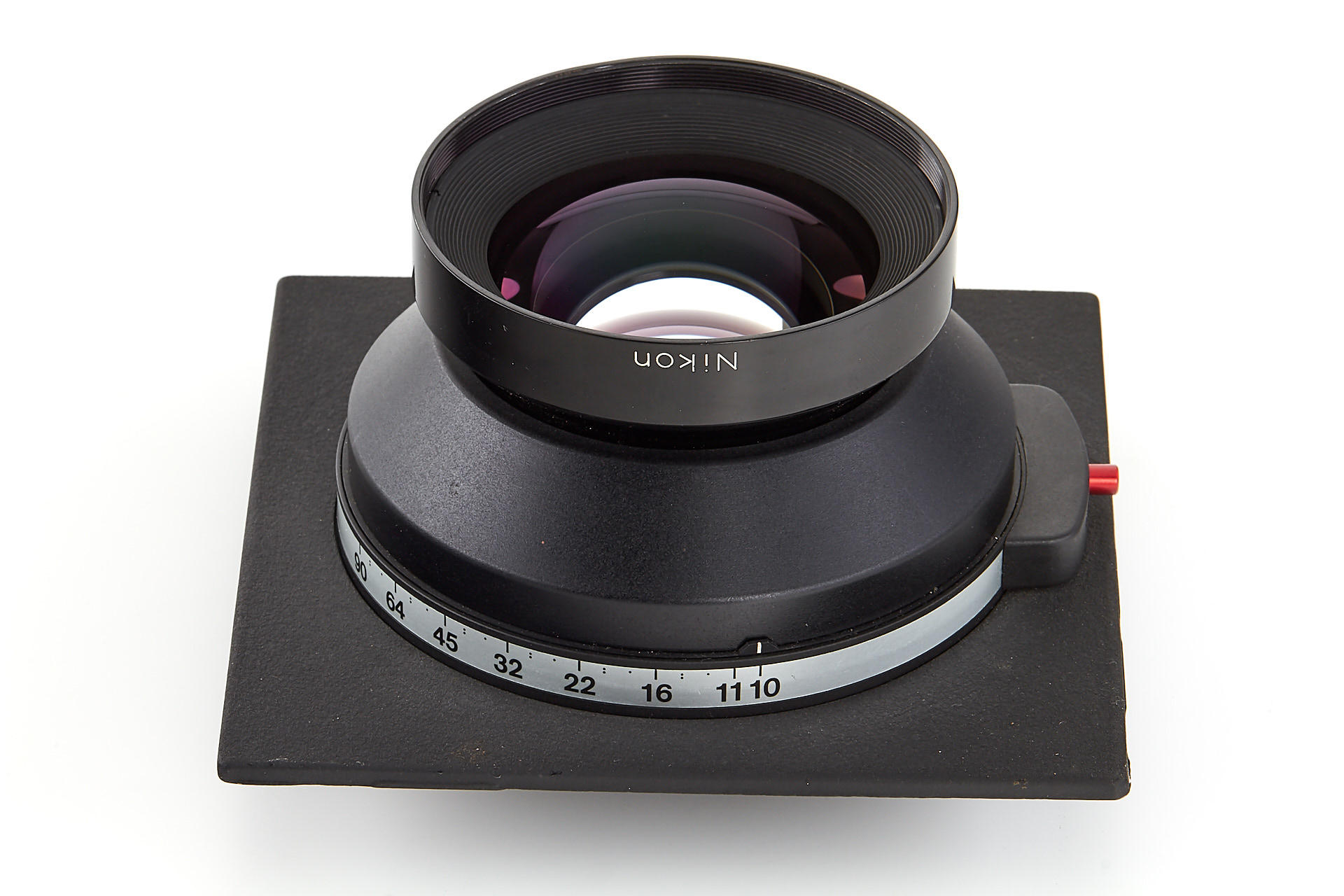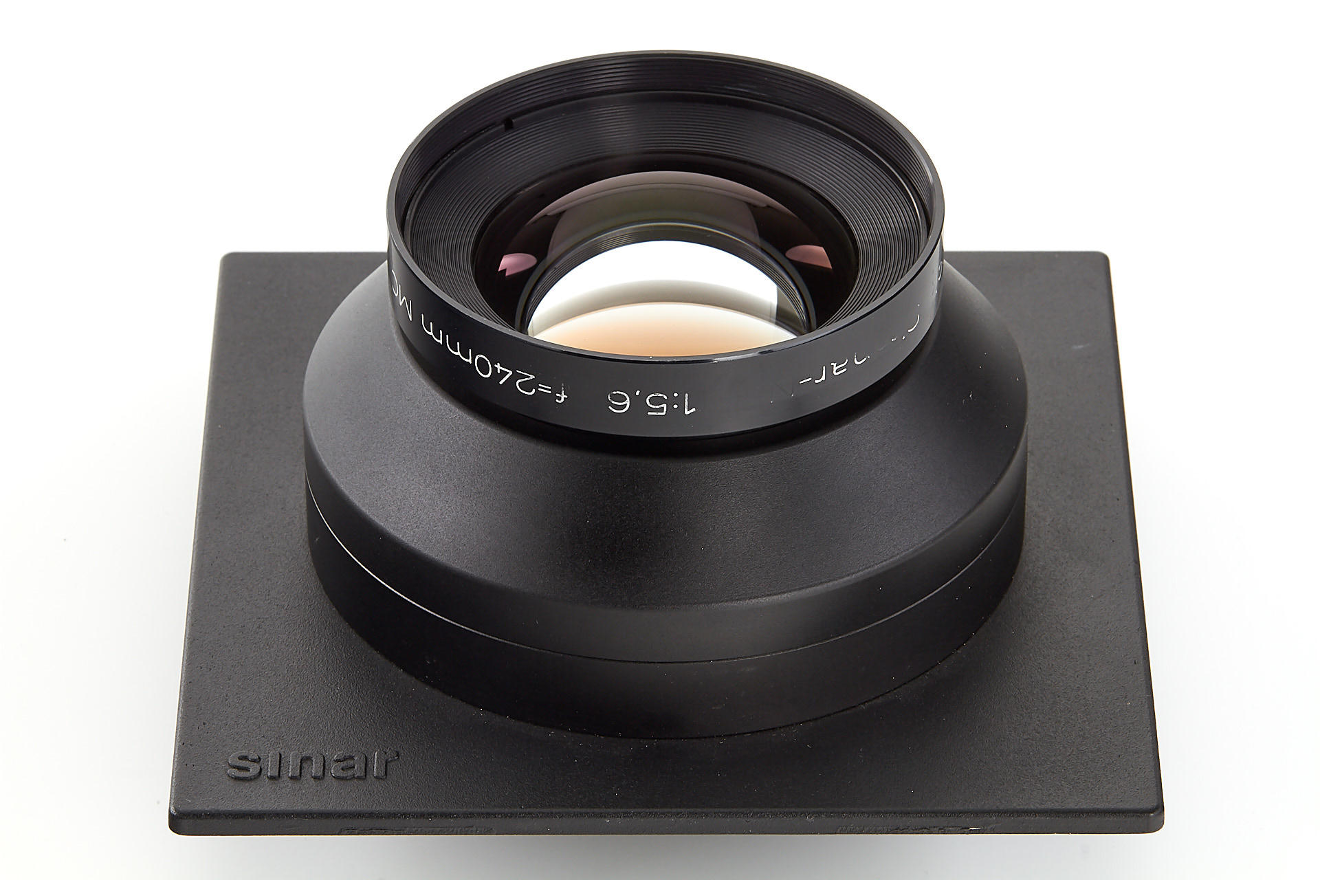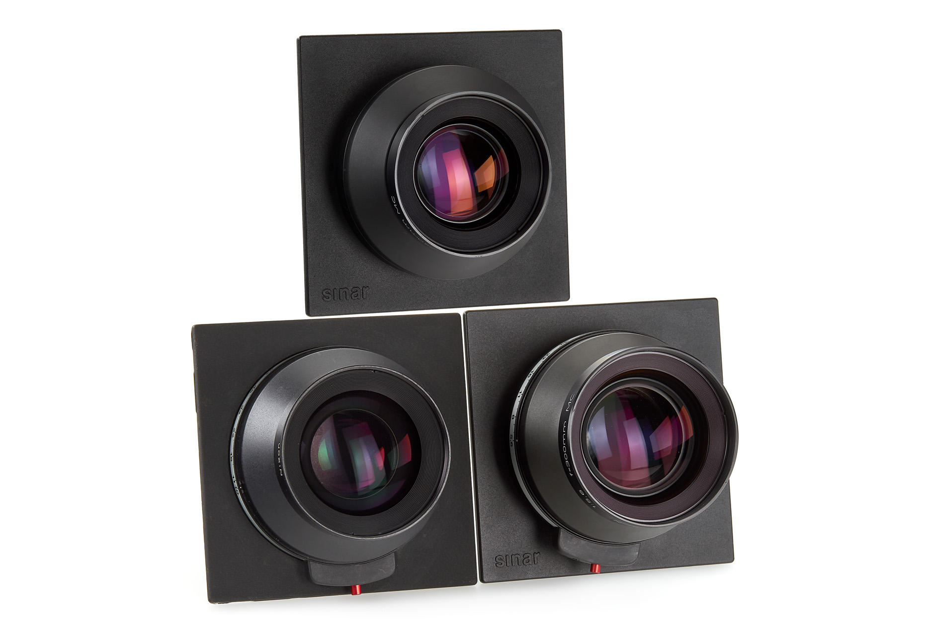 lot of three lenses on Sinar lens boards, for behind-the-lens shutter: (1) Nikkor-W 5.6/240mm no.770868, (2) Sironar-N MC 5.6/240mm no.10086589, (3) Sironar-N MC 5.6/300mm no.10223069, all in excellent condition with good optics