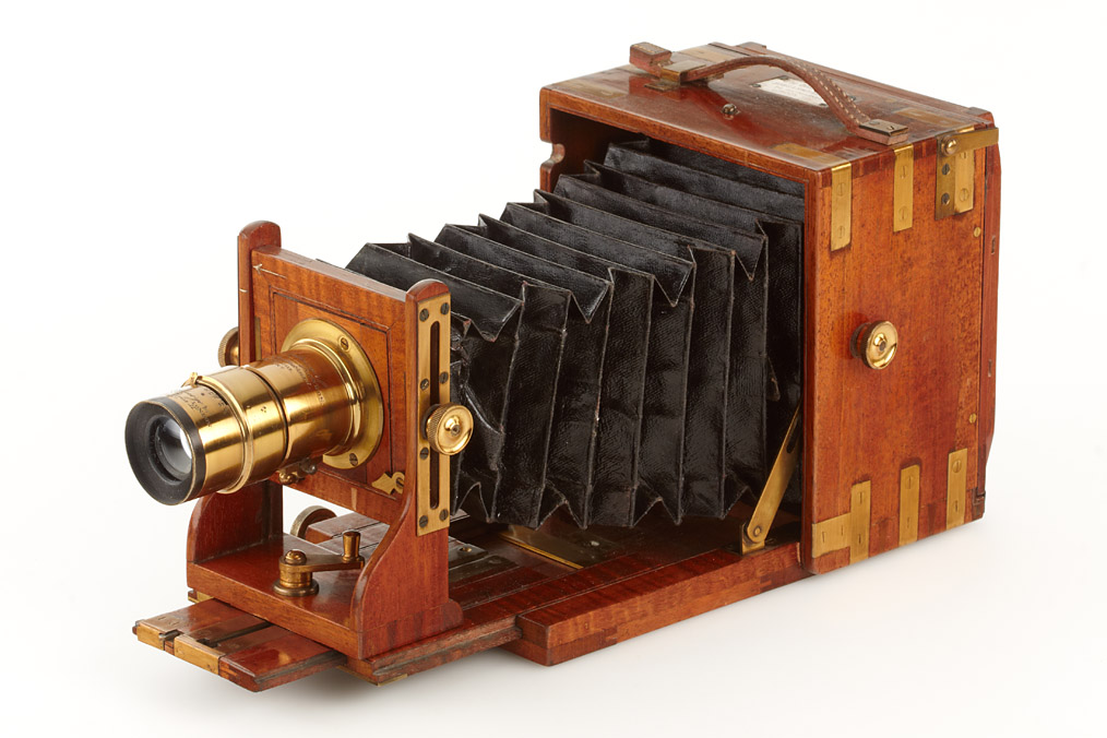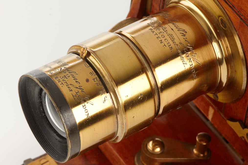 4x5' version of this rare camera with triple-extension in stunning condition, brass fittings, polished-mahogany body, Dallmeyer no.2 Stigmatic Series II no.60497 with matching Tele-Photo-Attachment 2 1/2 Inch no.62619, three double plate filmholders