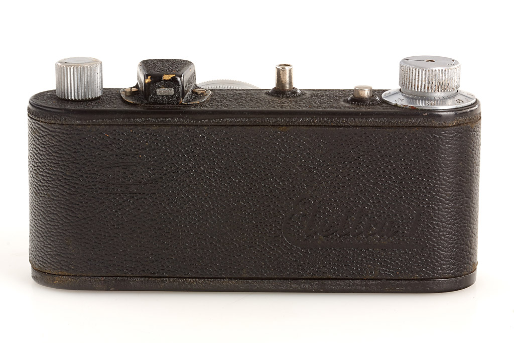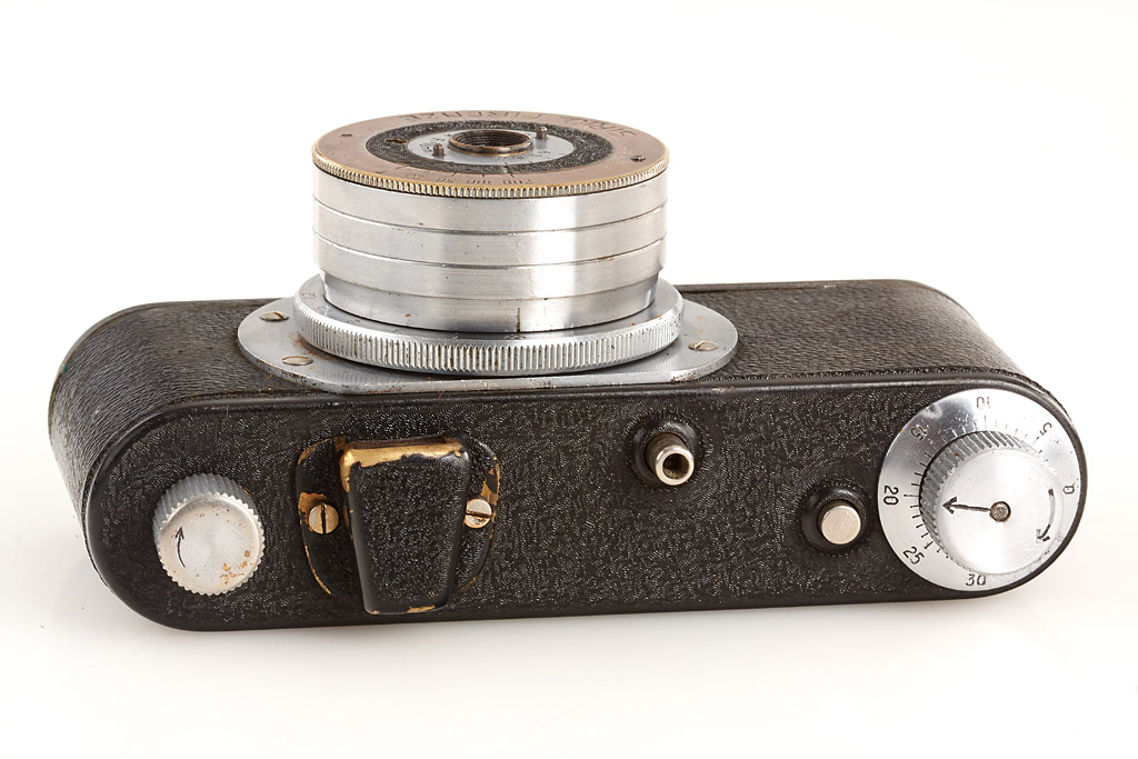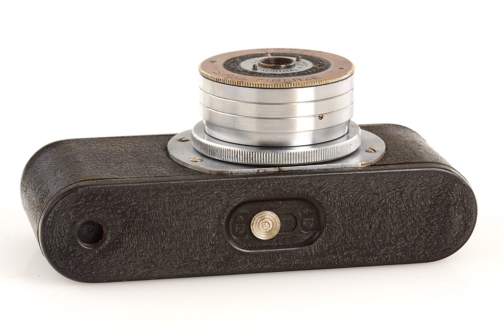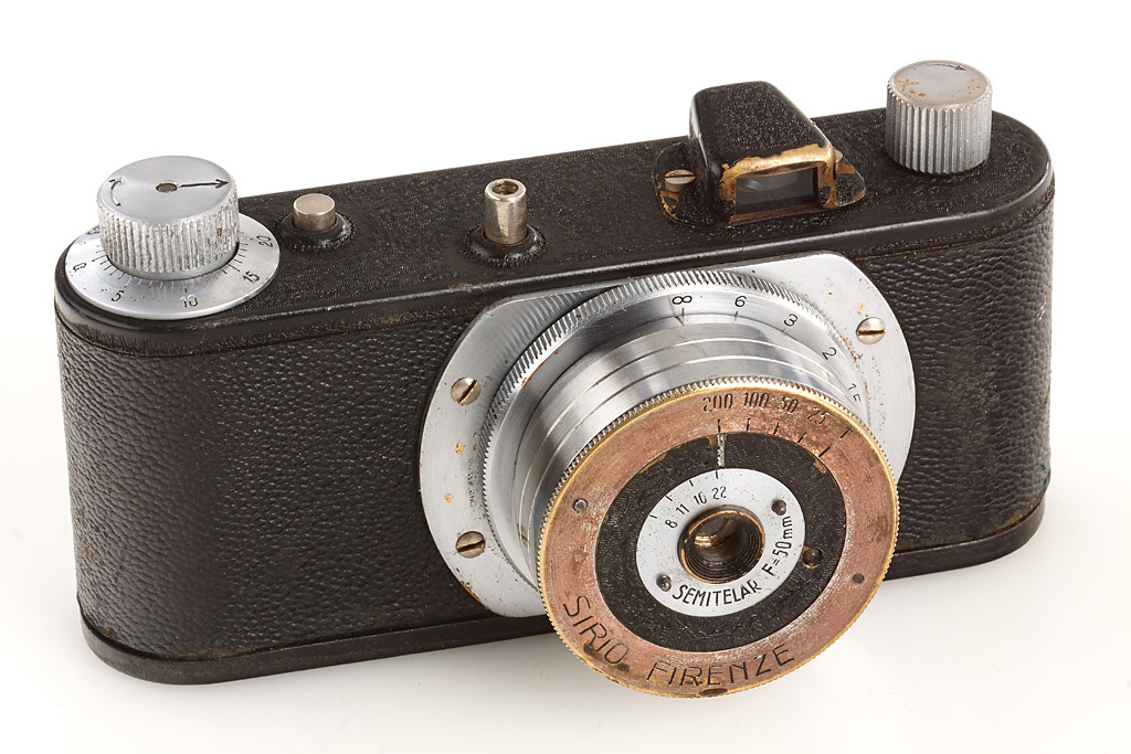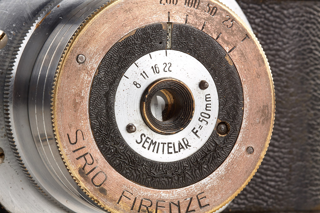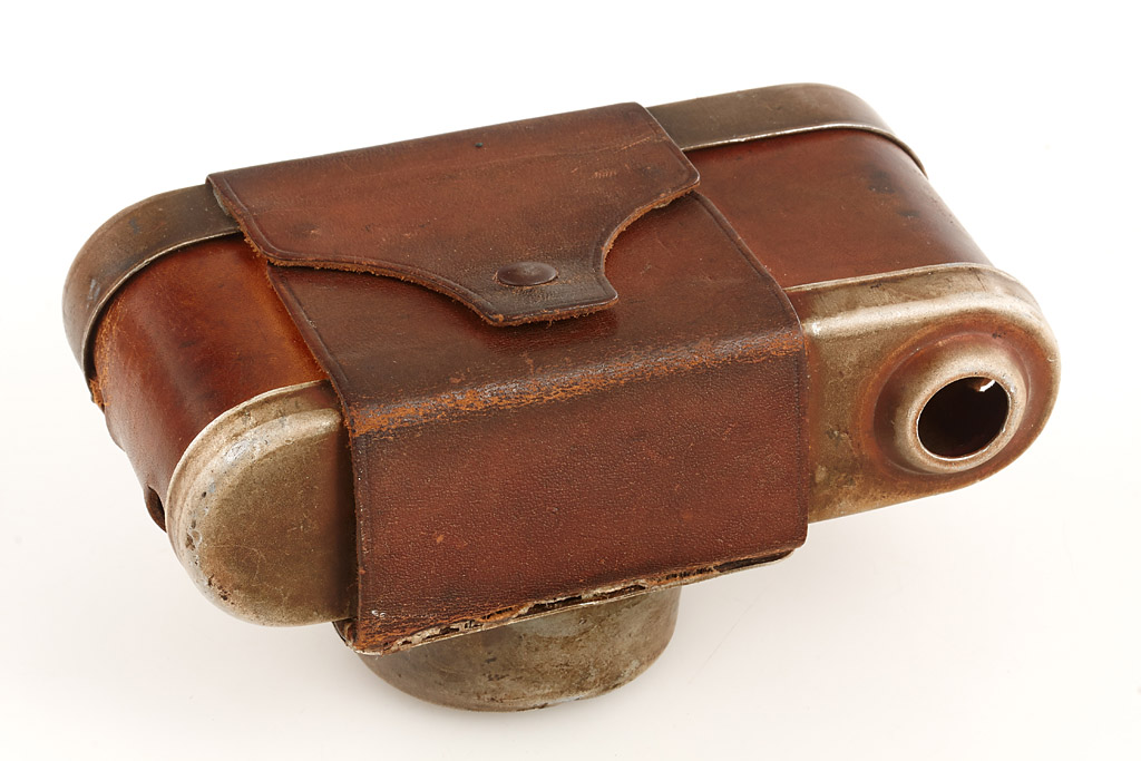 with Semitelar 8/50mm and rare metal/leather everready case (worn)