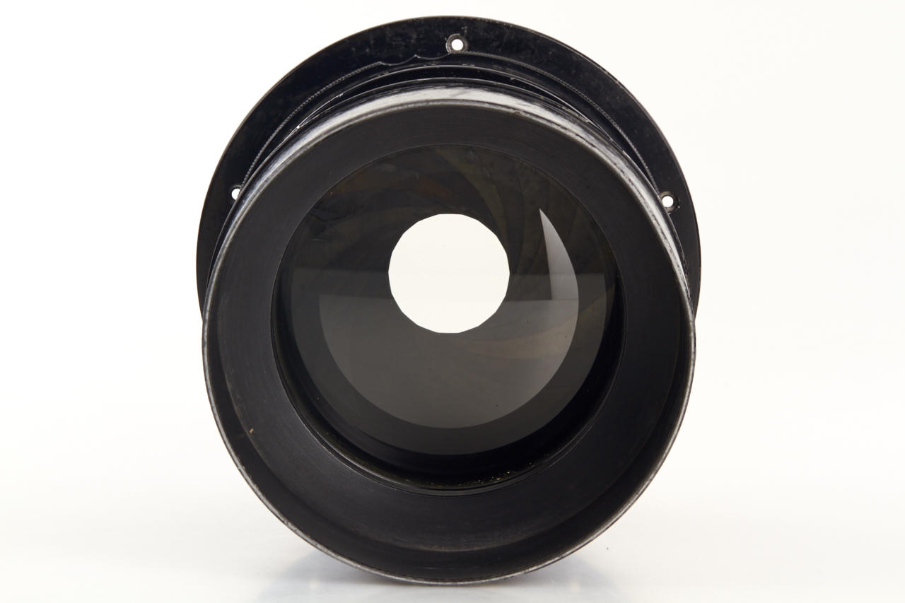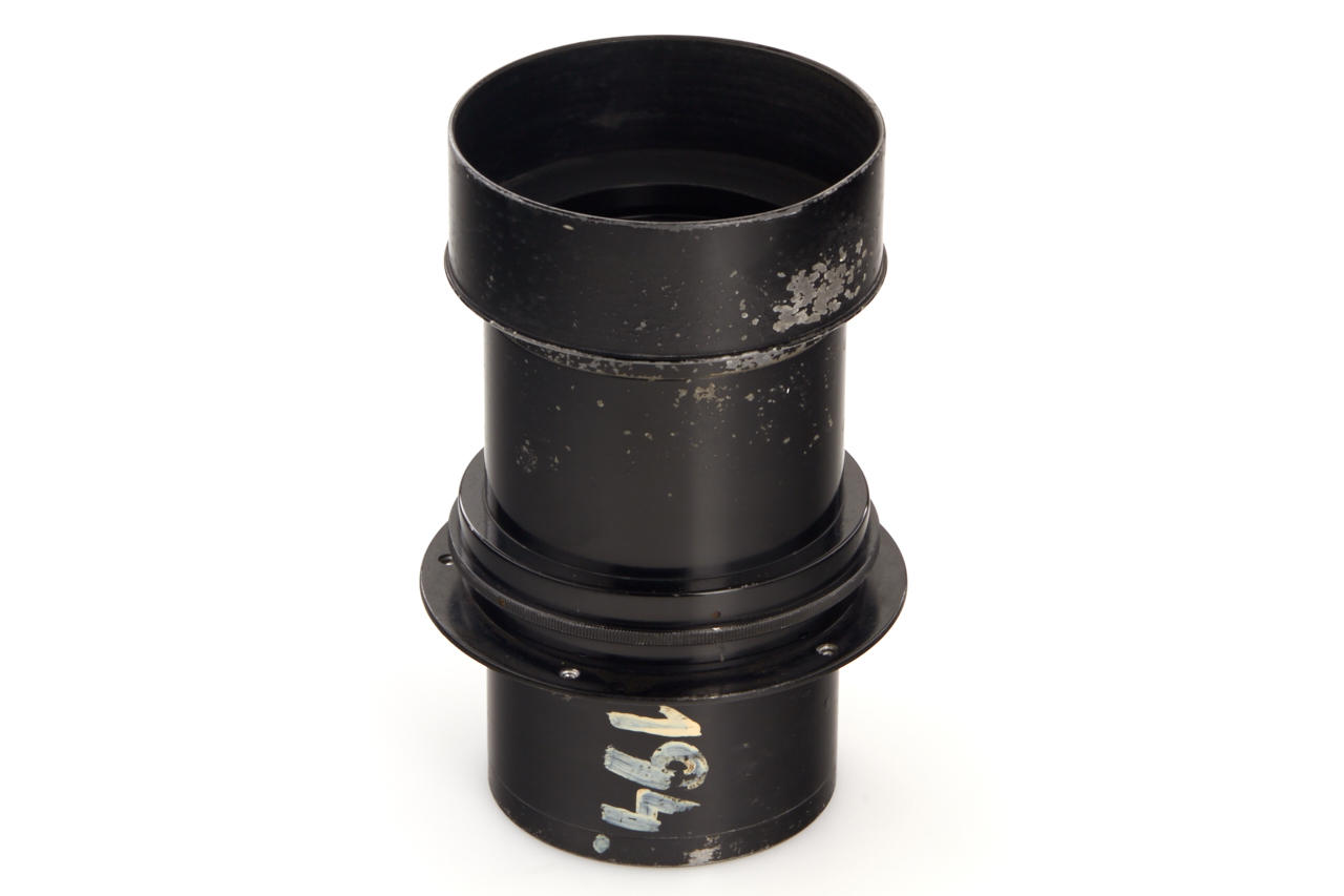 large soft-focus portrait lens in aluminium housing (total height incl. hood 25cm), very good condition, clean optics, working iris diaphragm