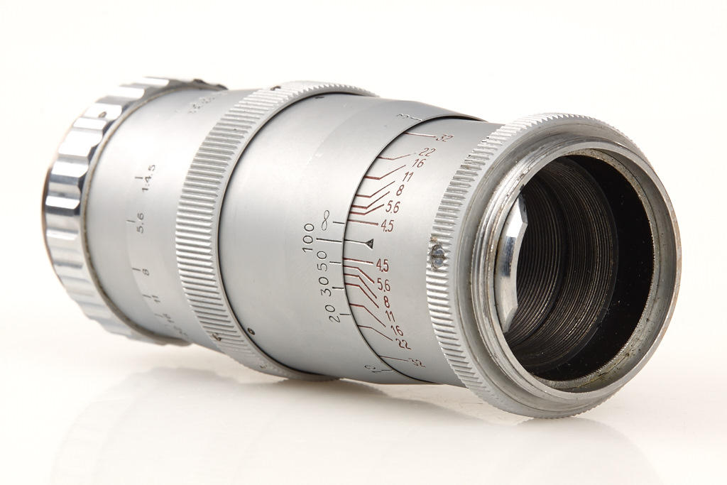 rare tele lens in original RF coupled M39 screw mount, hazy and small separation, both original caps and maker's box