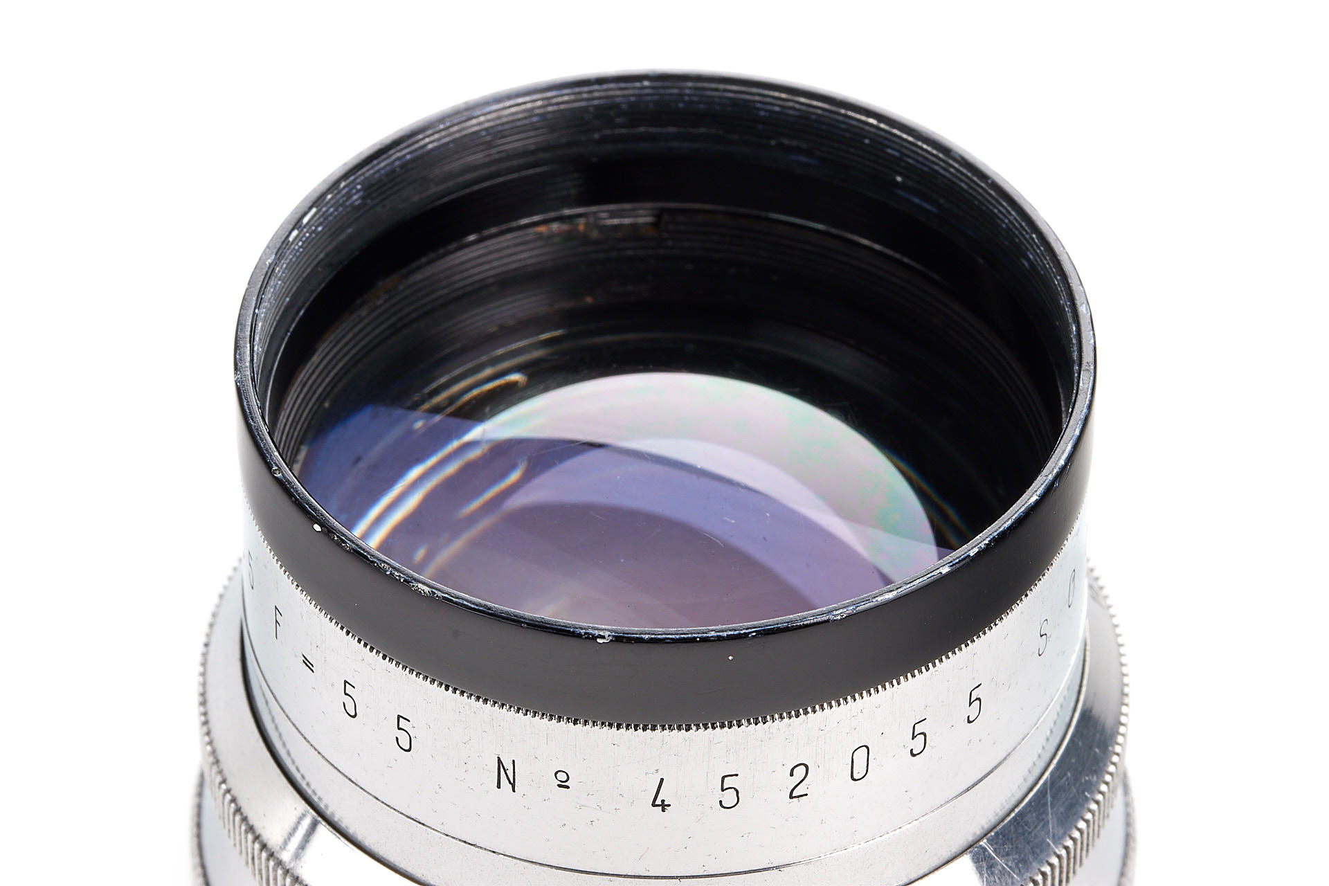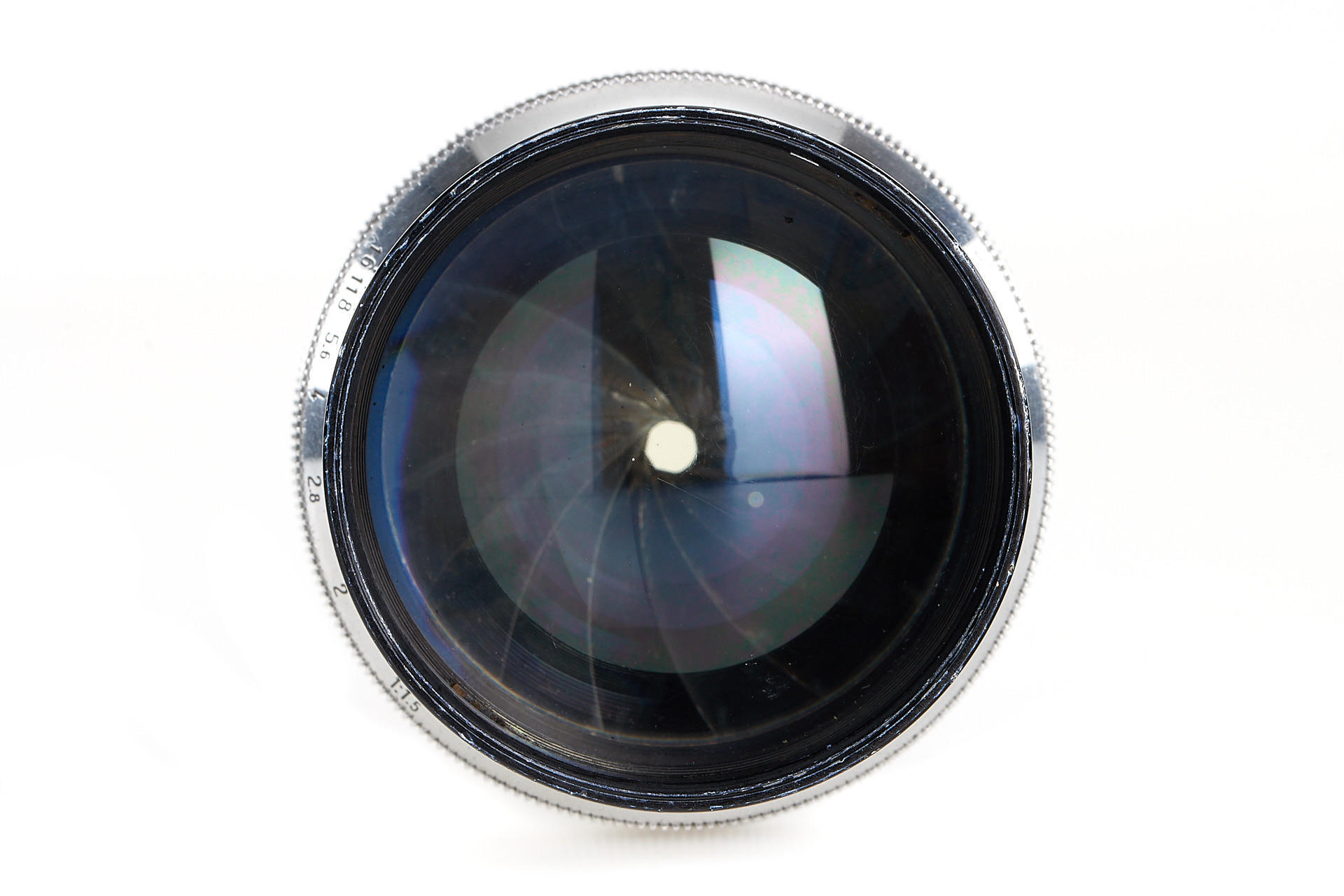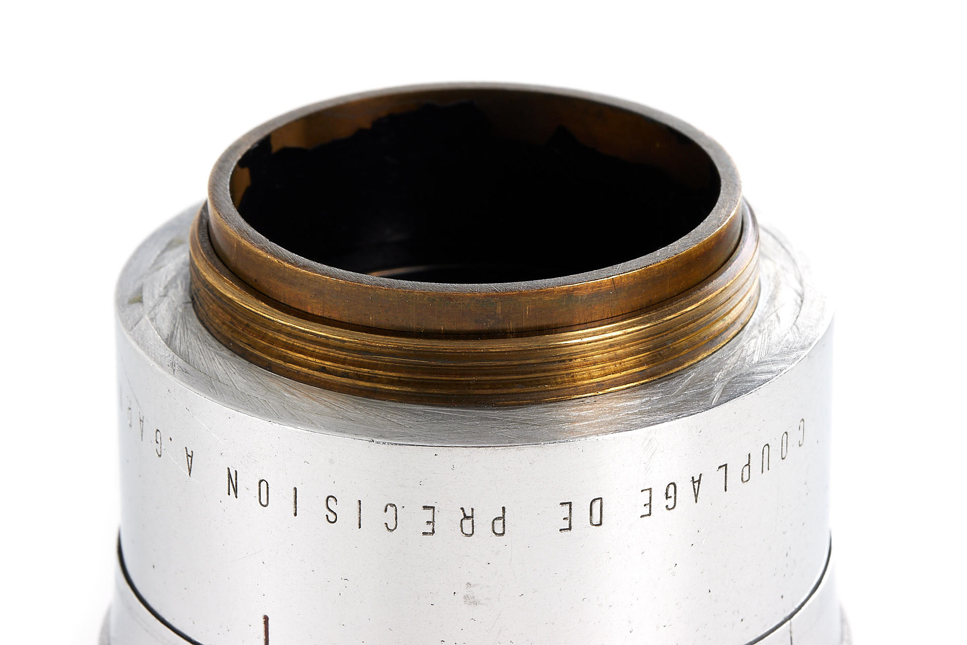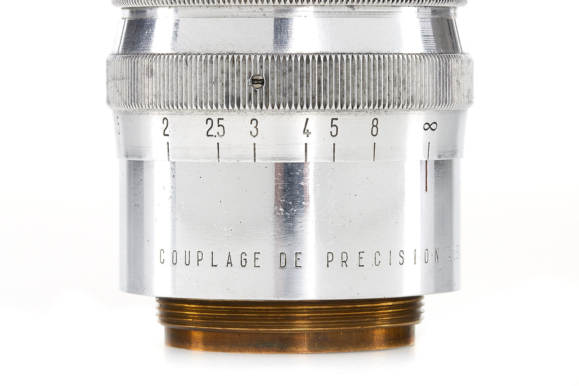 One of the rarest and most desirable third party lenses in original, rangefinder-coupled Leica mount. Brass barrel finished in bright chrome, coupling made for Som Berthiot by A. Garneau, Paris (engraved accordingly), good optics showing some minor haze and light cleaning marks (not affecting the photos). Only a handful of these special lenses are known to exist.