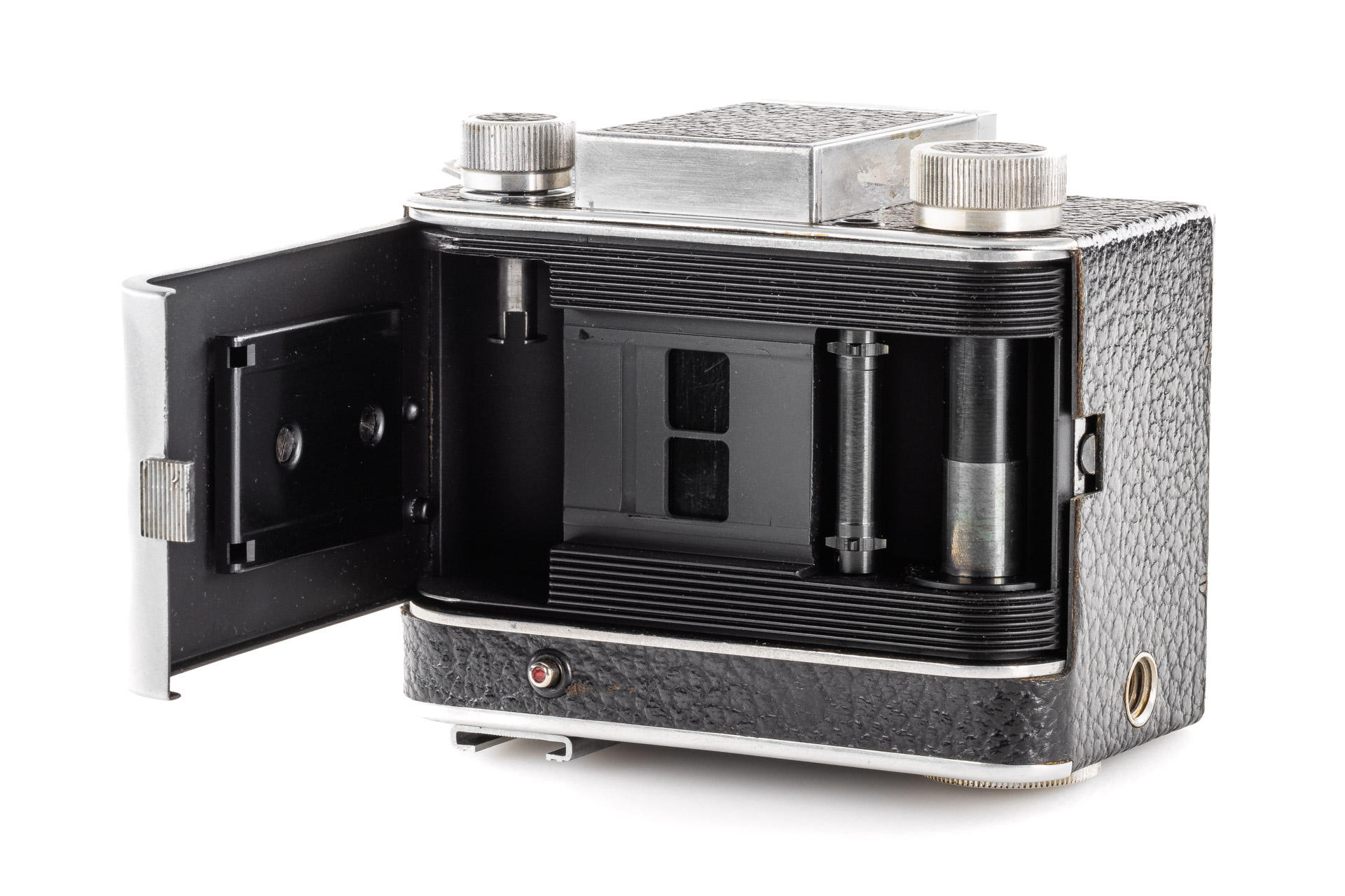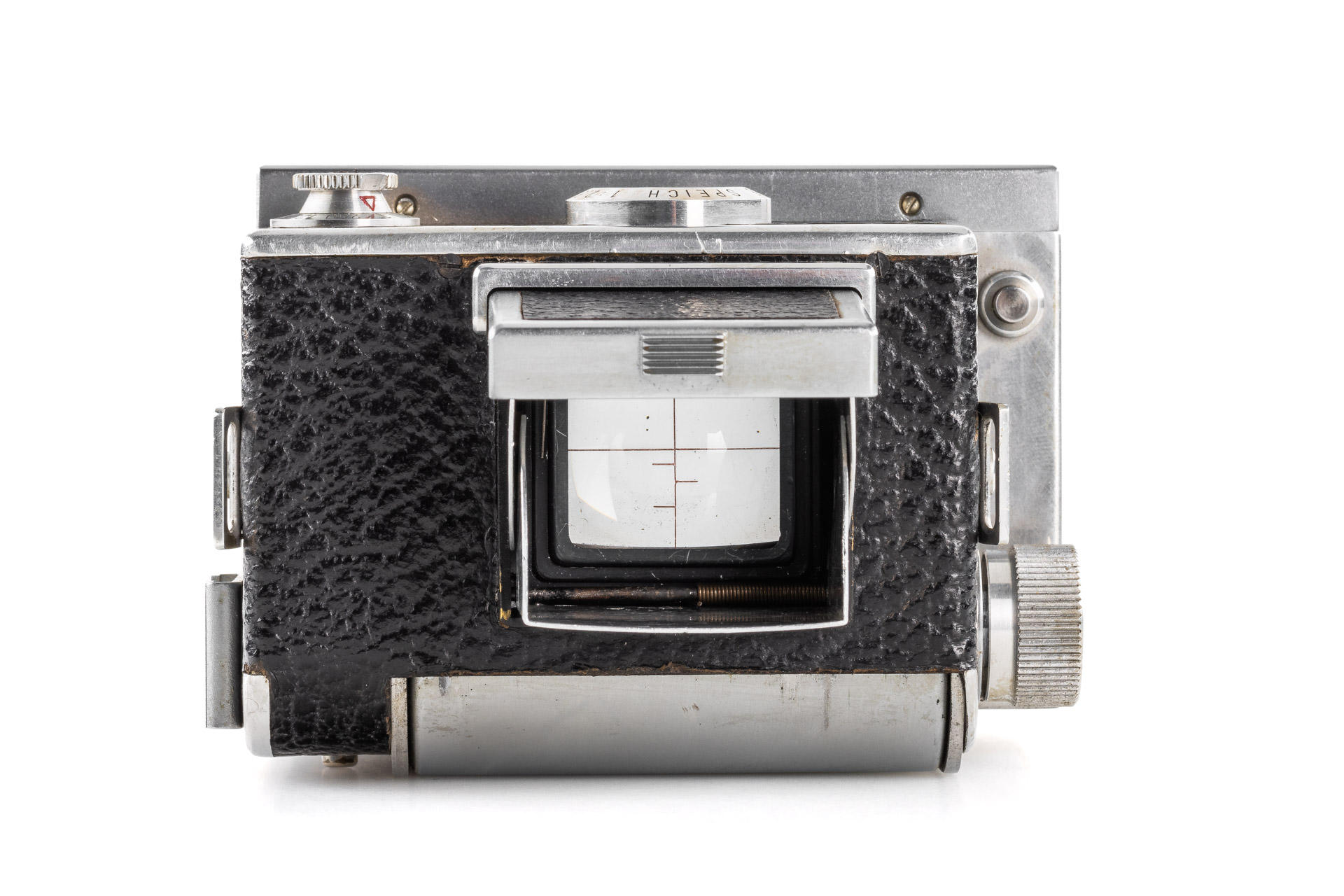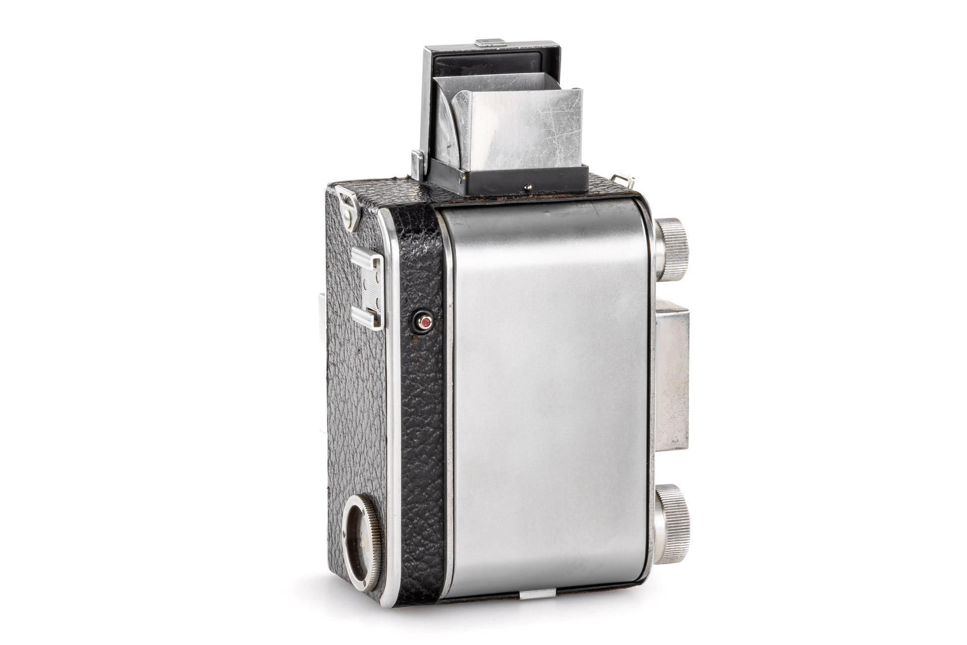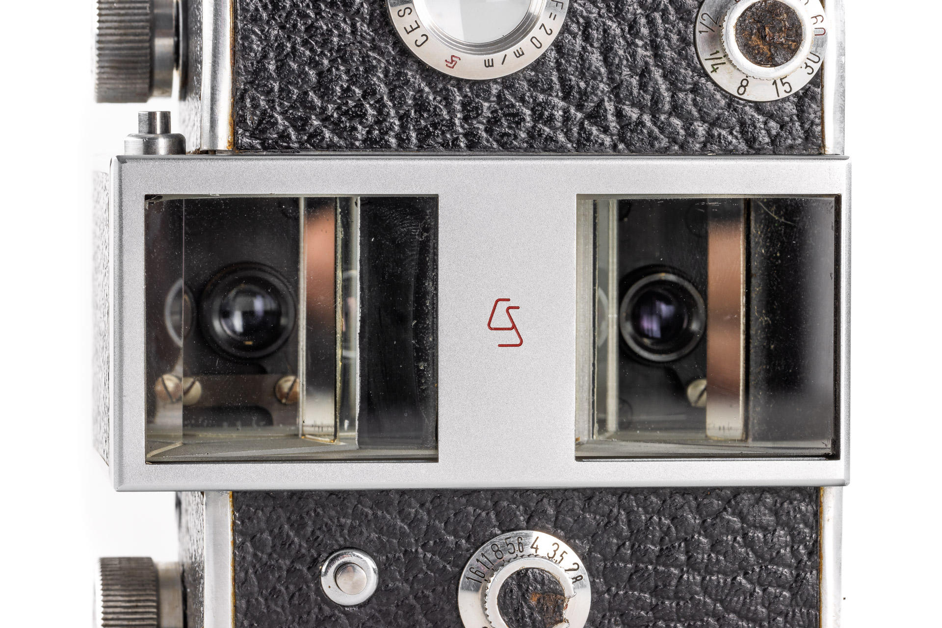An extremely rare stereo camera for 110 exposures 10x12mm on 35mm film in standard cassettes, with Rodenstock Cesare 2.8/20mm, only approximately 15 prototypes of this unusual camera were produced by Cesare Speich, Genoa, Italy. In very good original condition and working order. It is for sure one of the most sophisticated and unusual stereo 35mm cameras.
