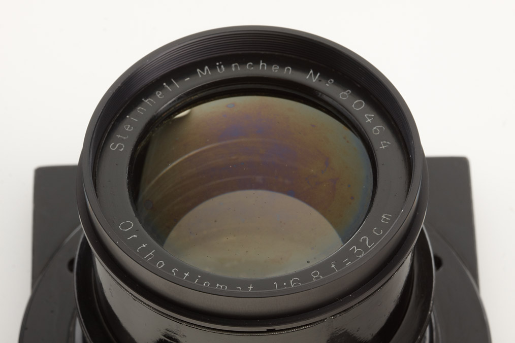 uncommon black painted brass Orthostigmat with iris diaphragm to 71, rear element with separation, some bubbles inside, caps (not original)