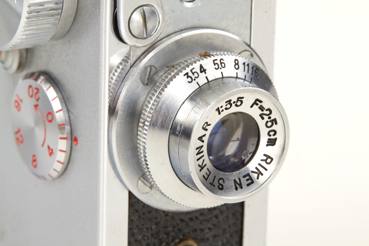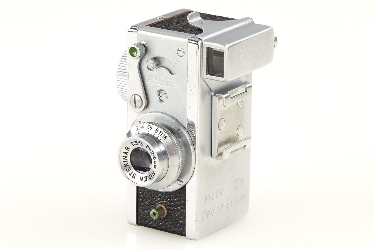mint 16mm miniature camera outfit with Stekaton wide angle converter, Steky telephoto lens, caps, leather cases and wooden boxes