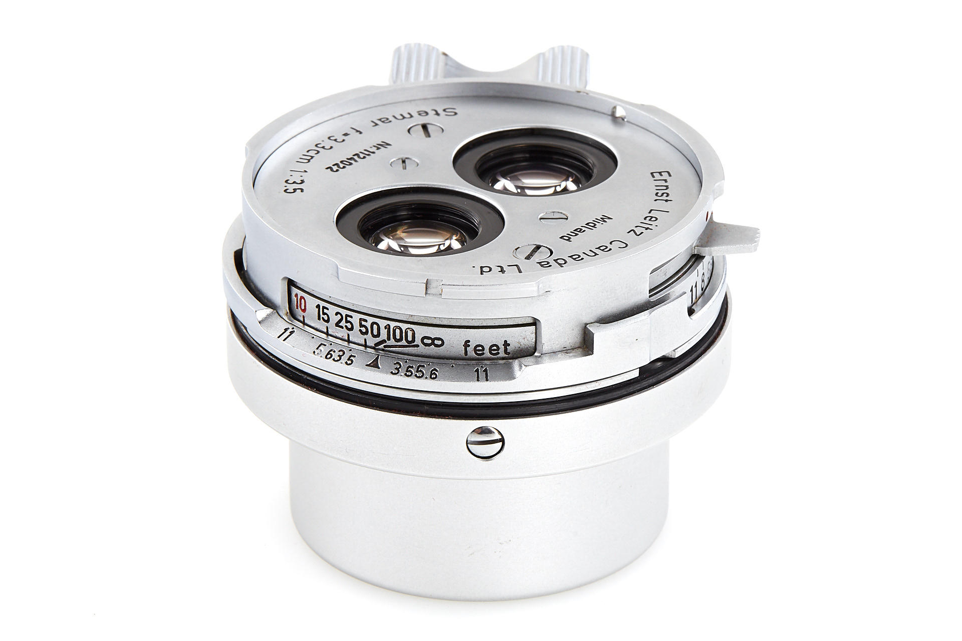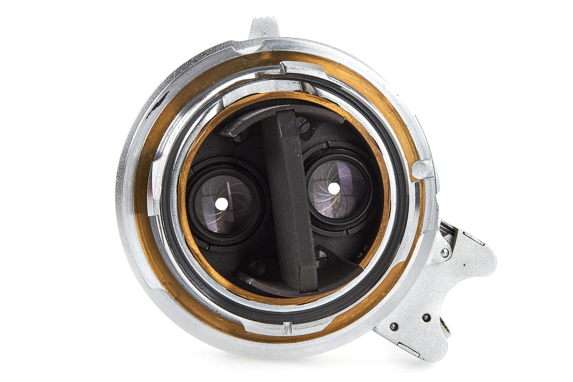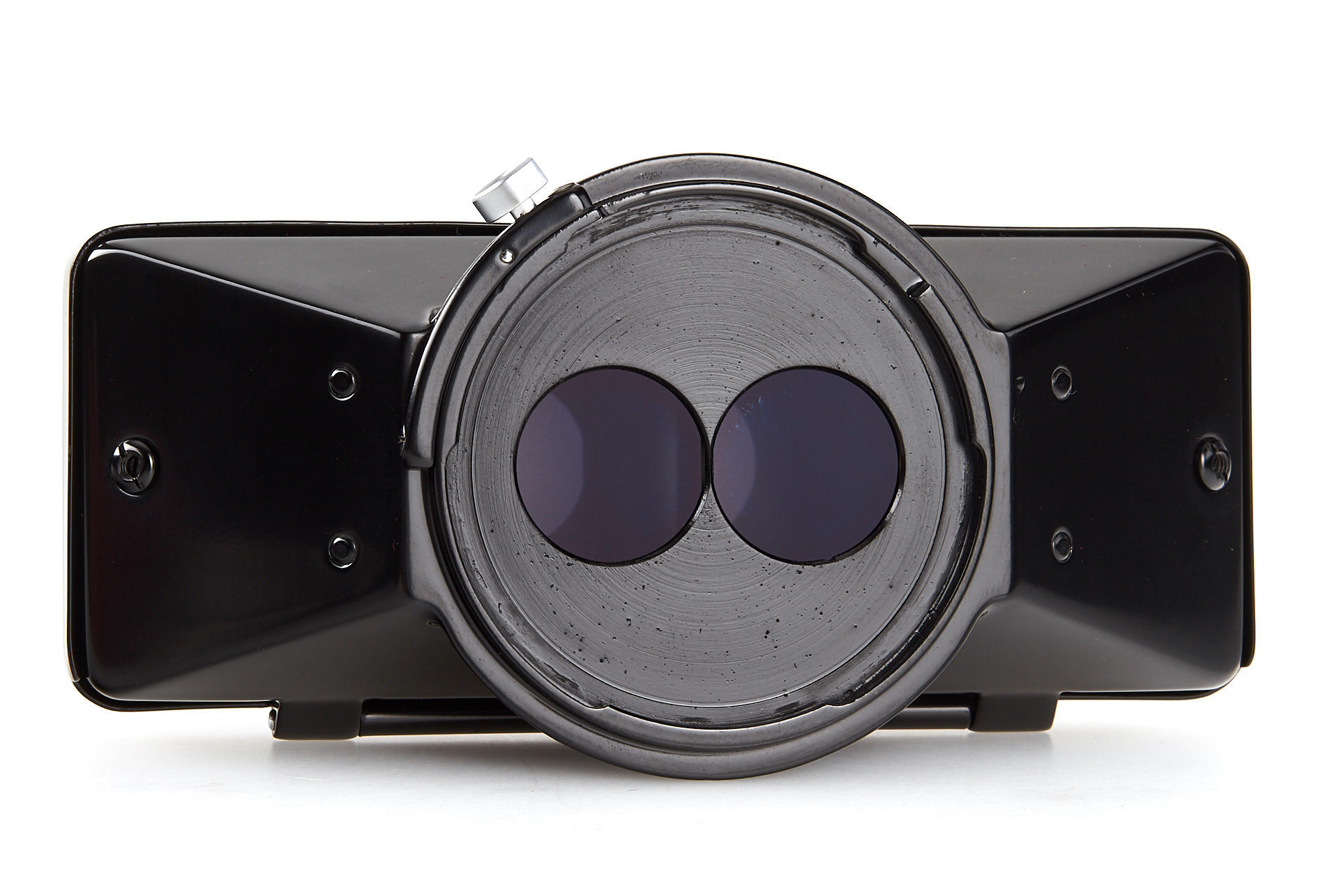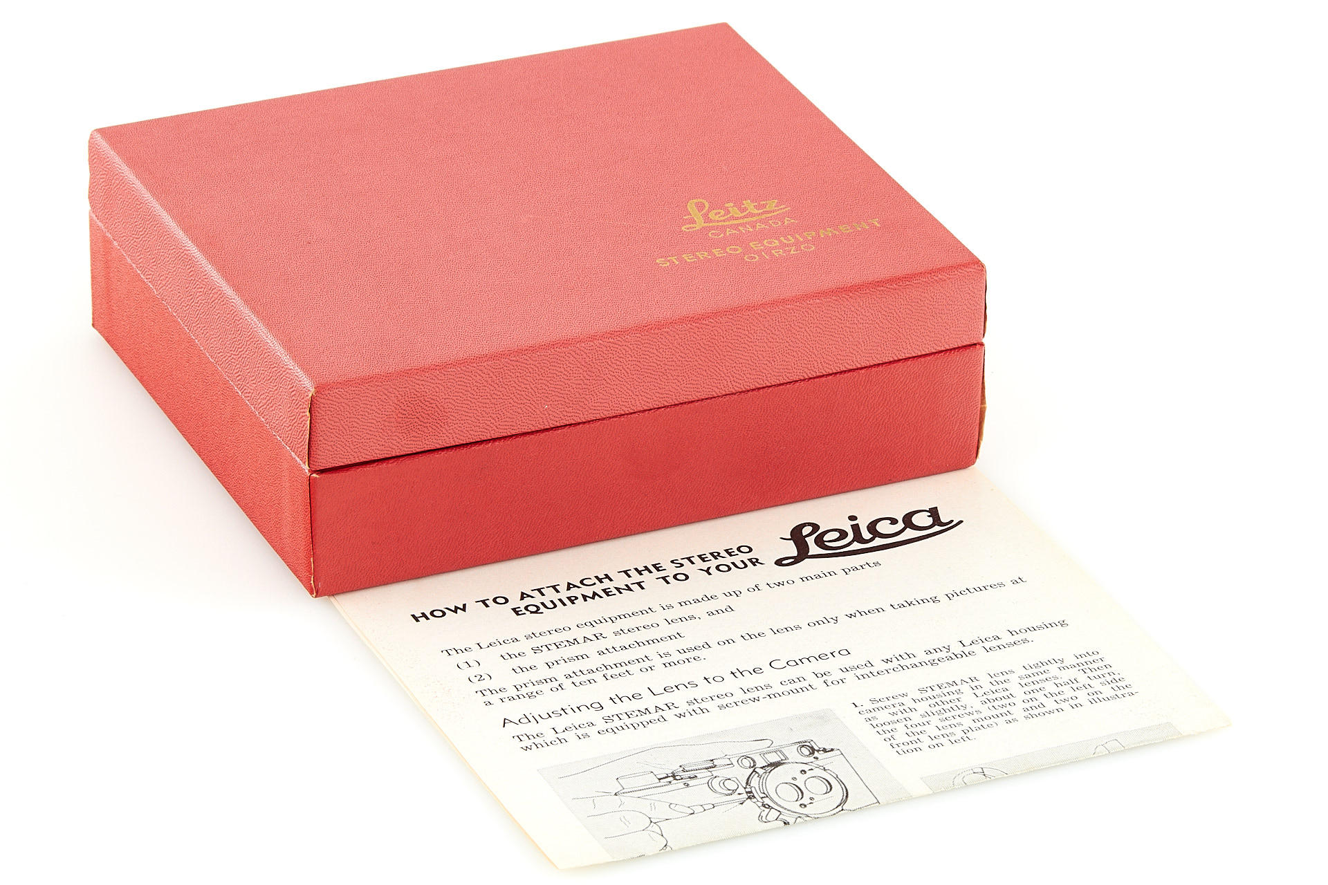 very rare stereo equipment OIRZO in beautiful, like new condition, including lens with M-adapter, rear cap, beam splitter no.1641 with rear cap, finder, hood, in original maker's red box, original instructions, hard to find in such a good condition