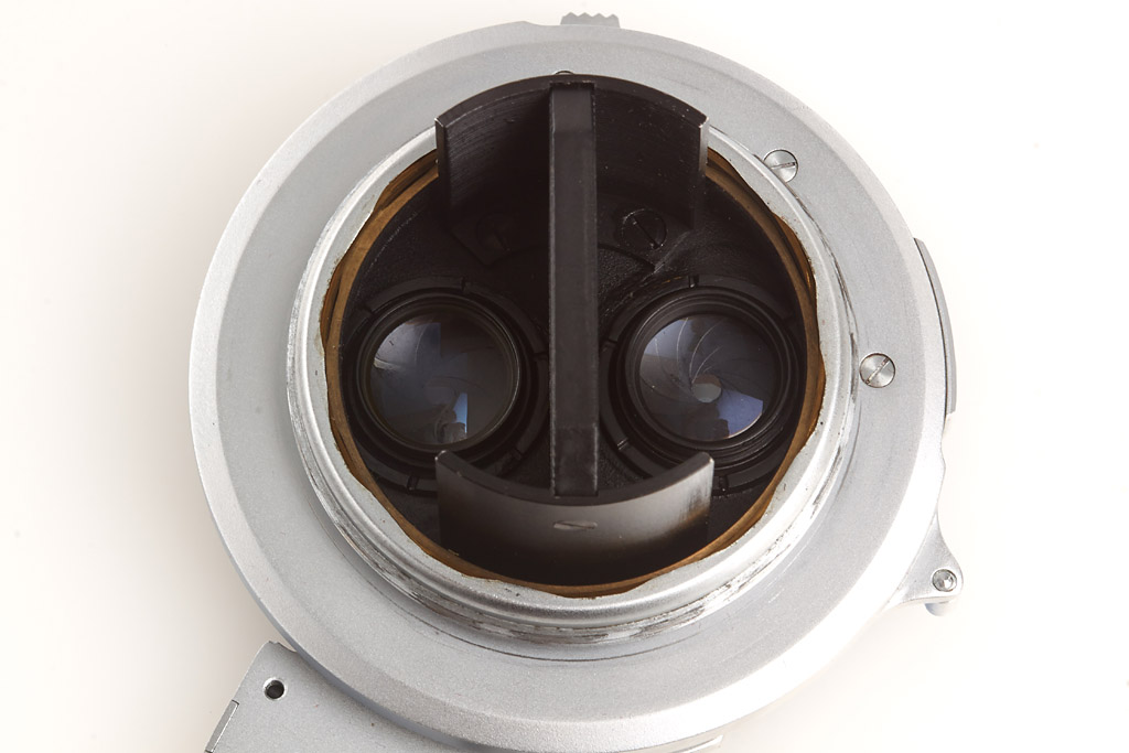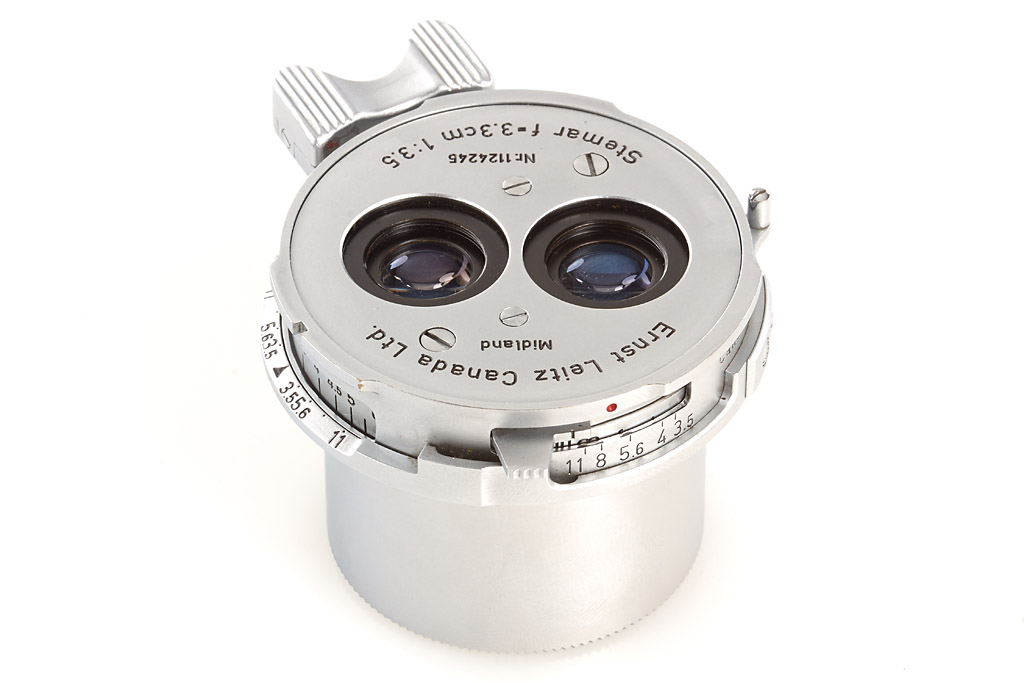 very rare stereo equipment OIRZO, OIASO screw mount Stemar, OIMPO beam splitter no.1341 (flip cap), OIDYO stereo finder, OISBO hood, in original red maker's box