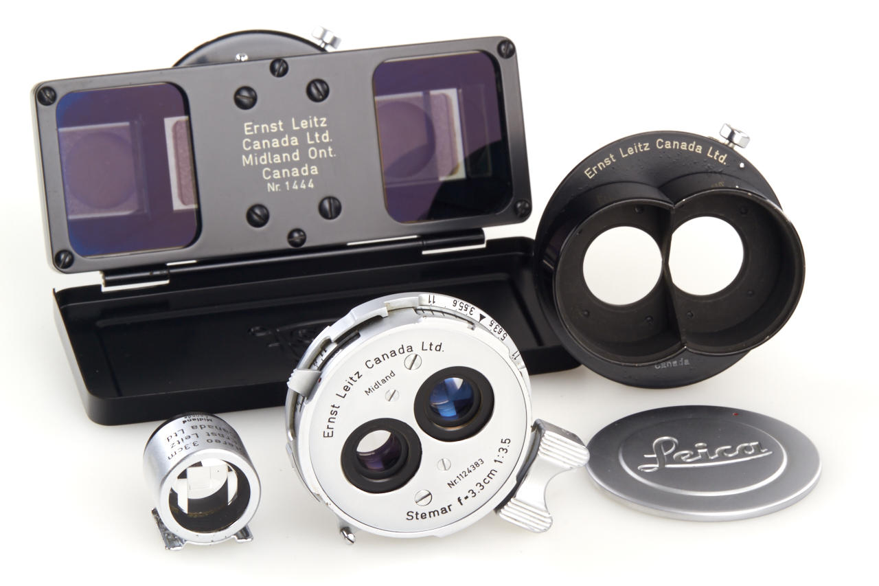 rare stereo equipment OIRZO, OIASO Stemar with fixed M-adapter (front cap), OIMPO beam splitter no.1444 (flip cap), OIDYO stereo finder, OISBO hood, in original case - all in like new condition with clean optics