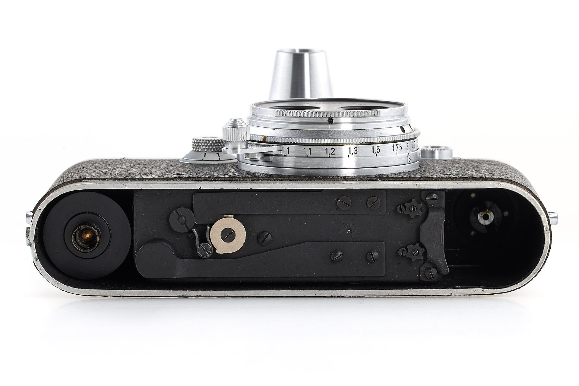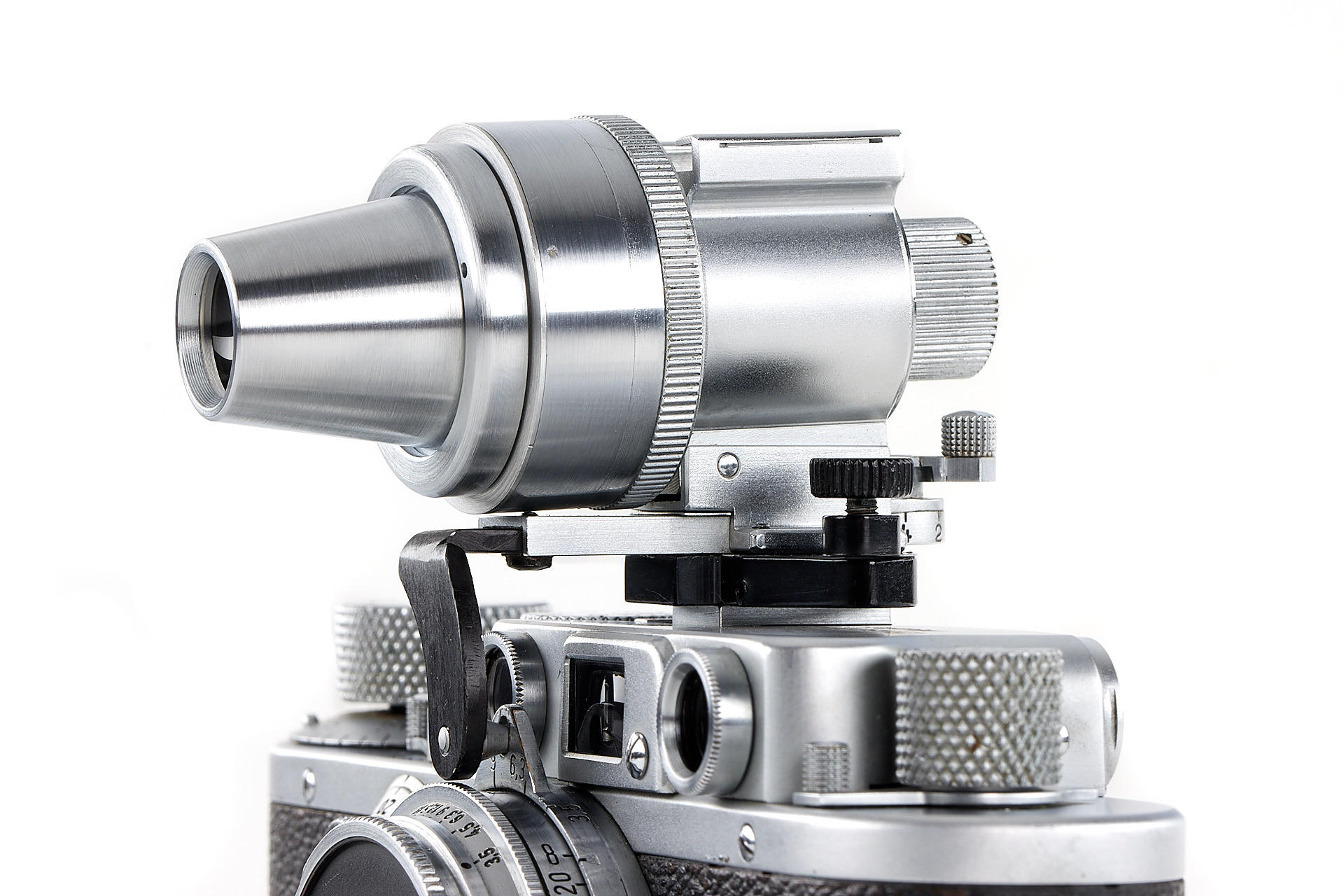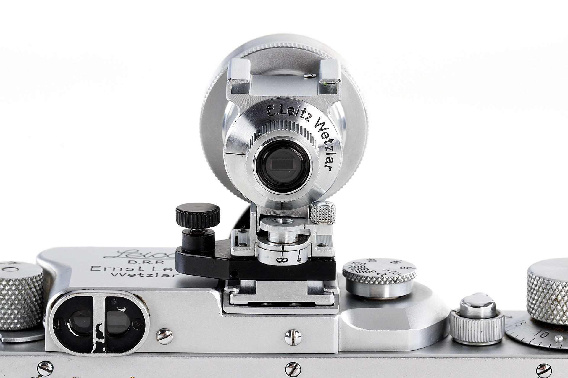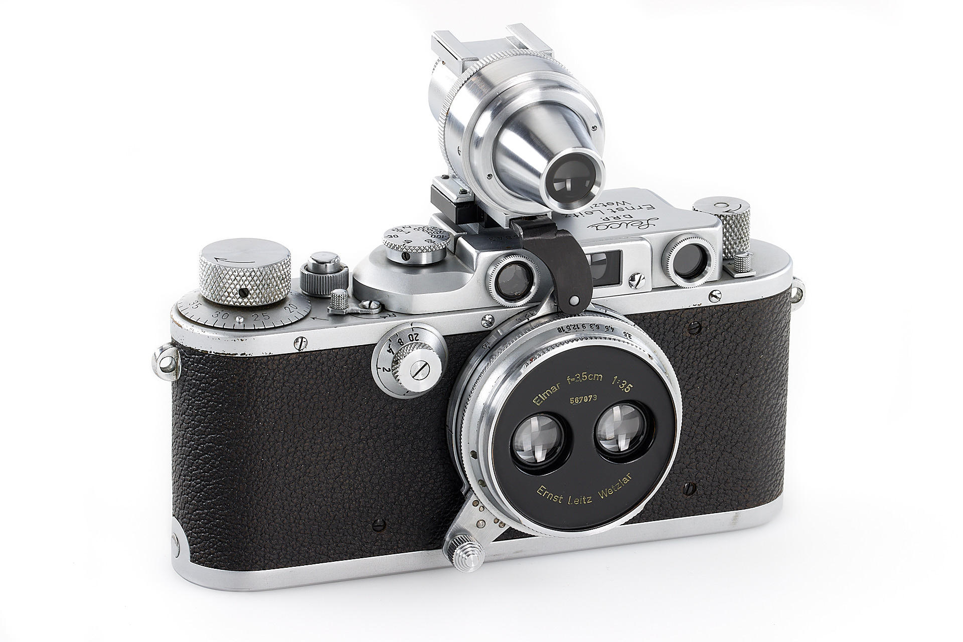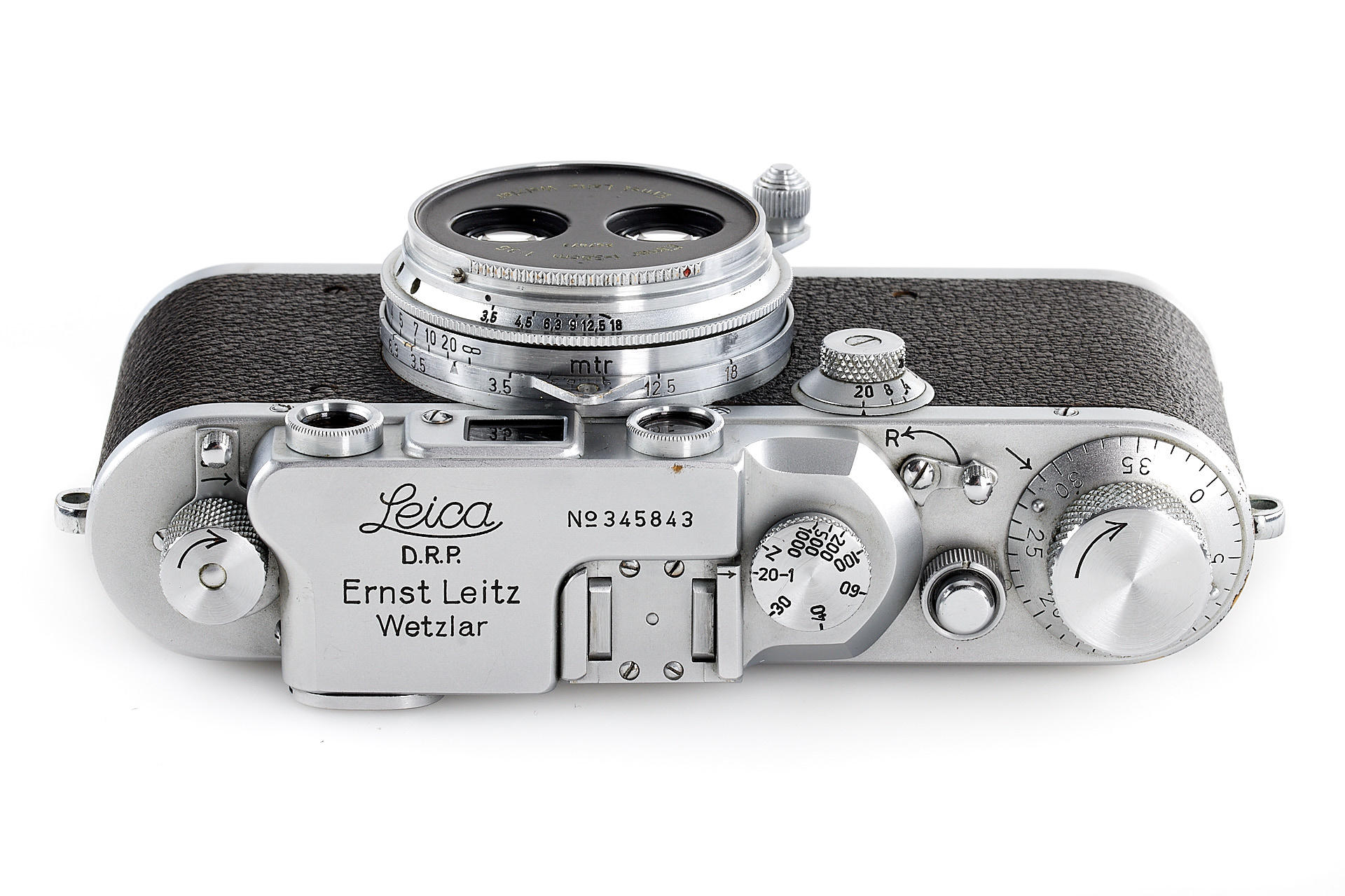 extremely rare pre-war stereo lens, from the second batch made in 1941, in near-mint condition and working order, with stereo VIDOM finder with arm for centring the lens, and Leica IIIb body no.345843. Only 89 of Stereo-Elmar lenses have been made in 1940/41, only a few survived in such good condition.