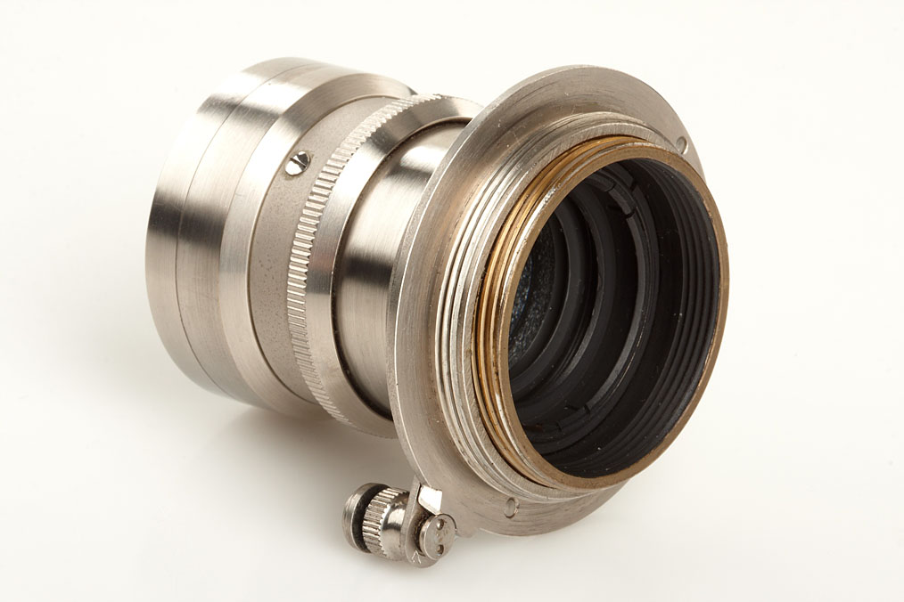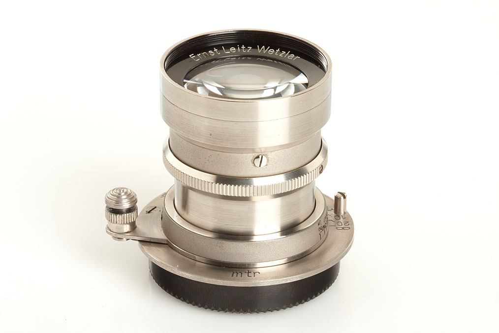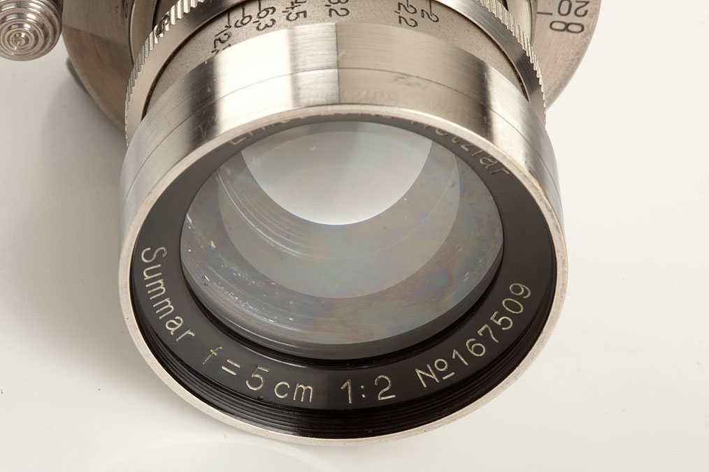 rare, early rigid Summar in nickel finish, in fine condition with perfect lenses, both original caps