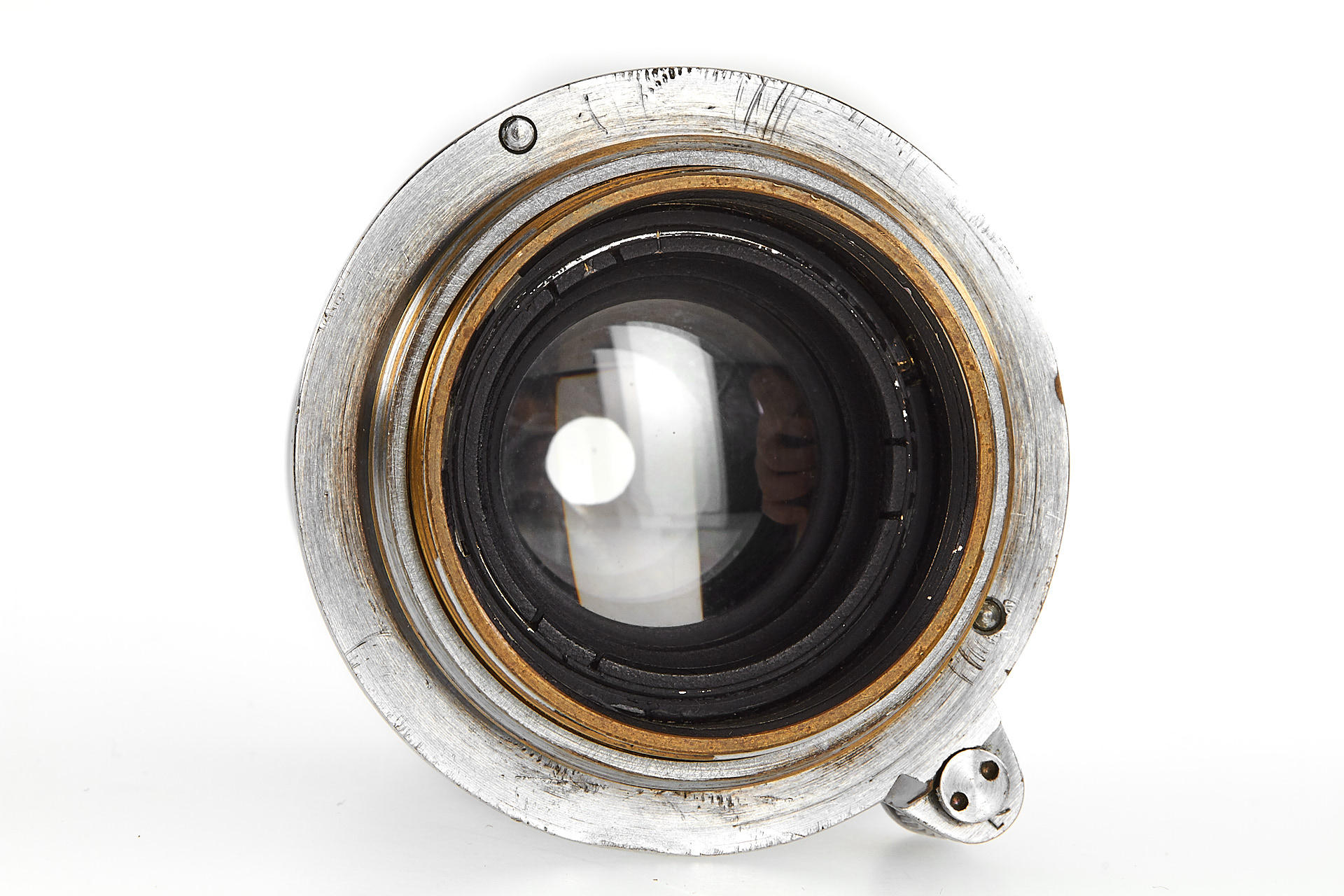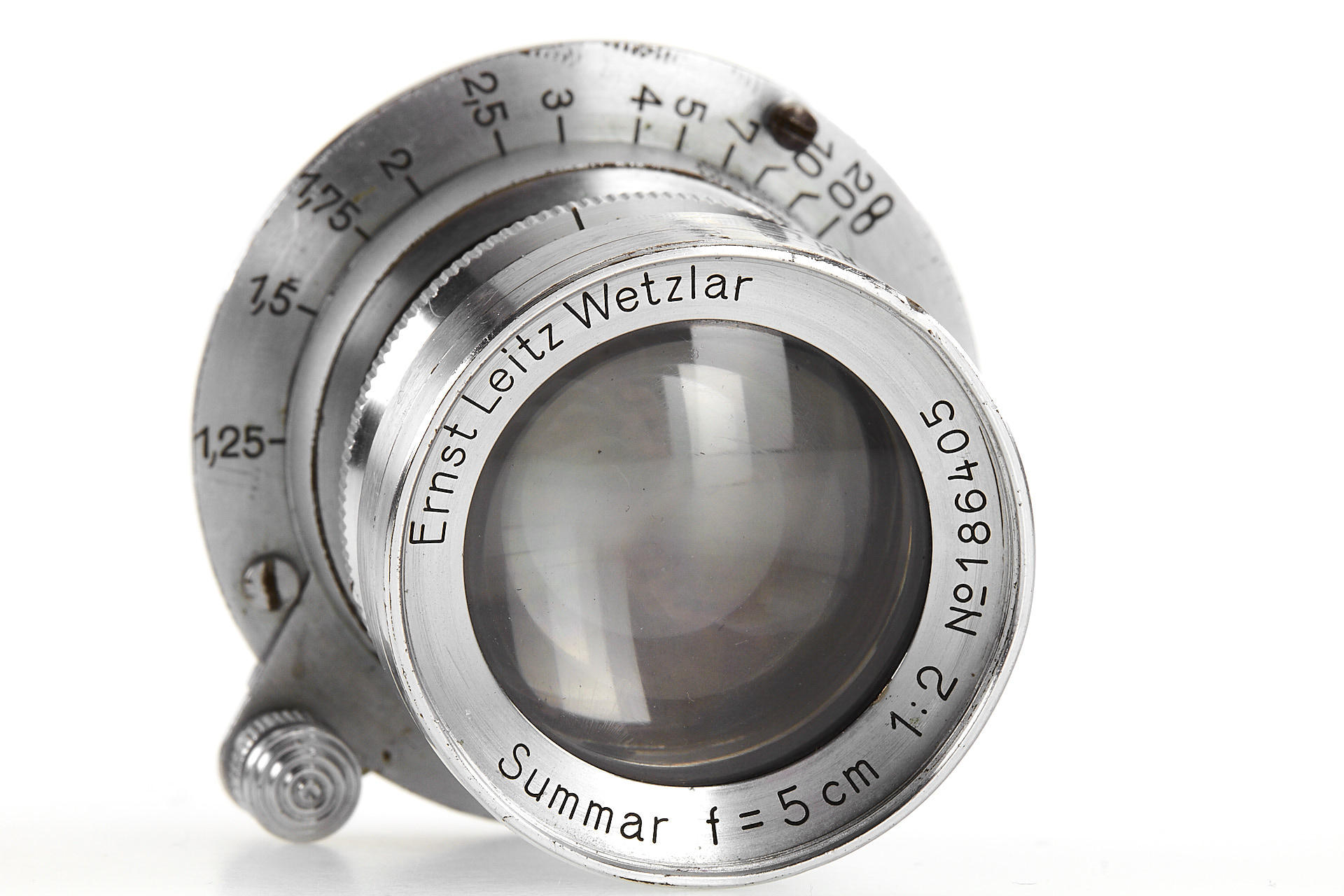 unusual version of the chrome rigid Summar, with engraved front rim also in chrome, in very good cosmetic condition, optics with cleaning marks on the front element and minimal separation