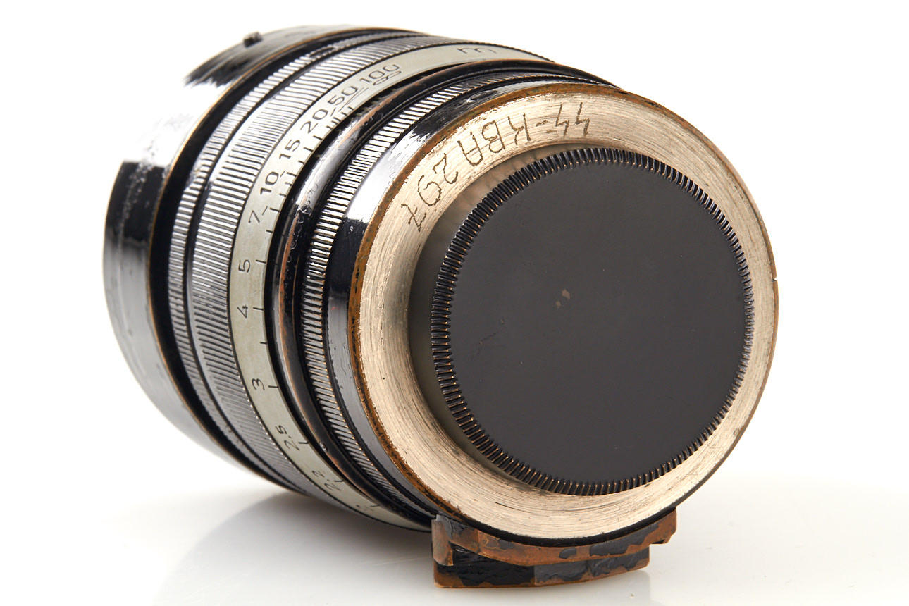 early black paint Summarex, hand-engraved on the mount 'SS-KBA297' - According to James Lager: 'War correspondents (Kriegsberichter) used the Leica extensively during the Second World War. Some cameras, lenses and cases exhibit the SS-KB (Waffen SS war correspondent) markings. The numerals (297, 300, 325) may signify the specific correspondent that the equipment was assigned to. The initials KB means Kriegsberichter. Exactly this lens is illustrated in Lager I, page 89 and Lager II, page 68 - it was delivered on July 28th, 1943 to Bln.29777 (LOOKX.B.)