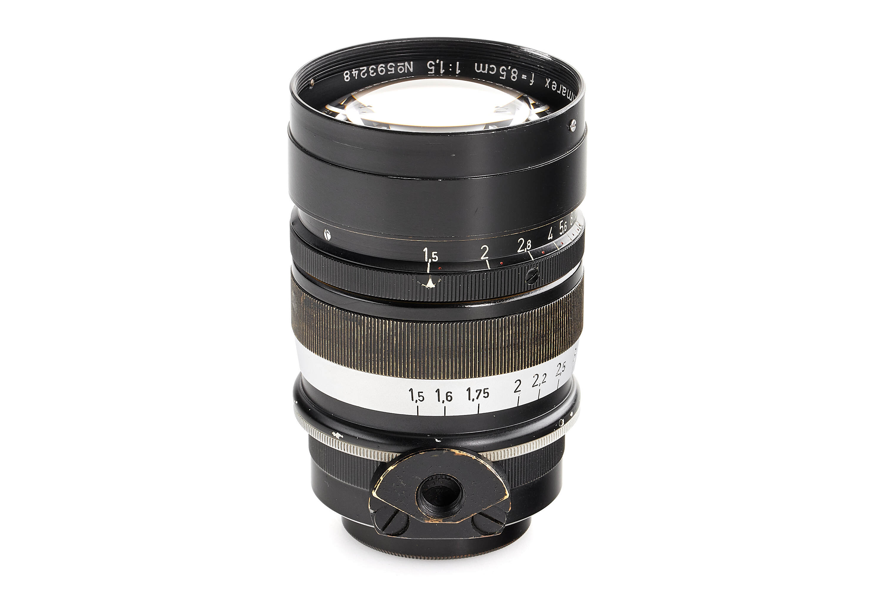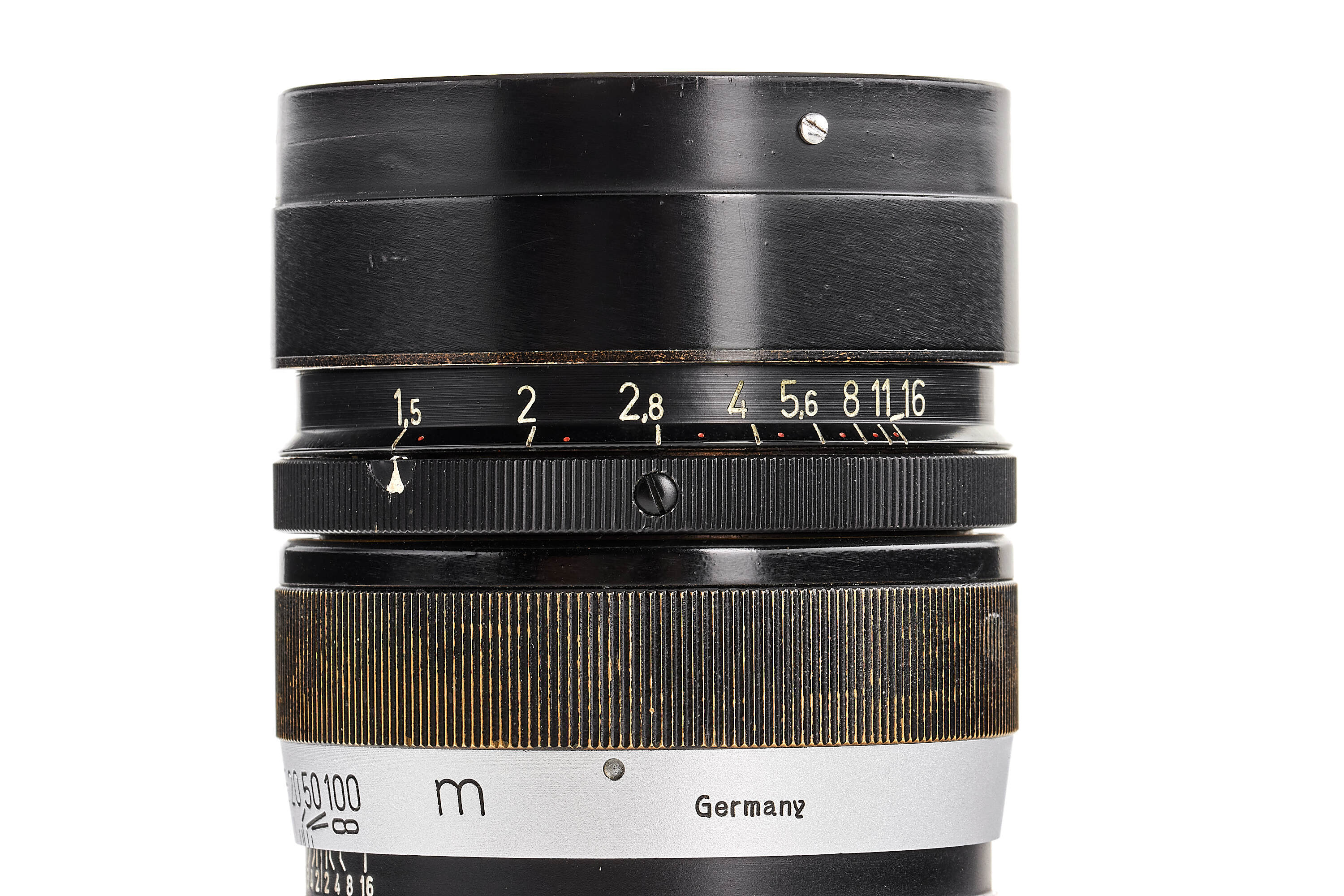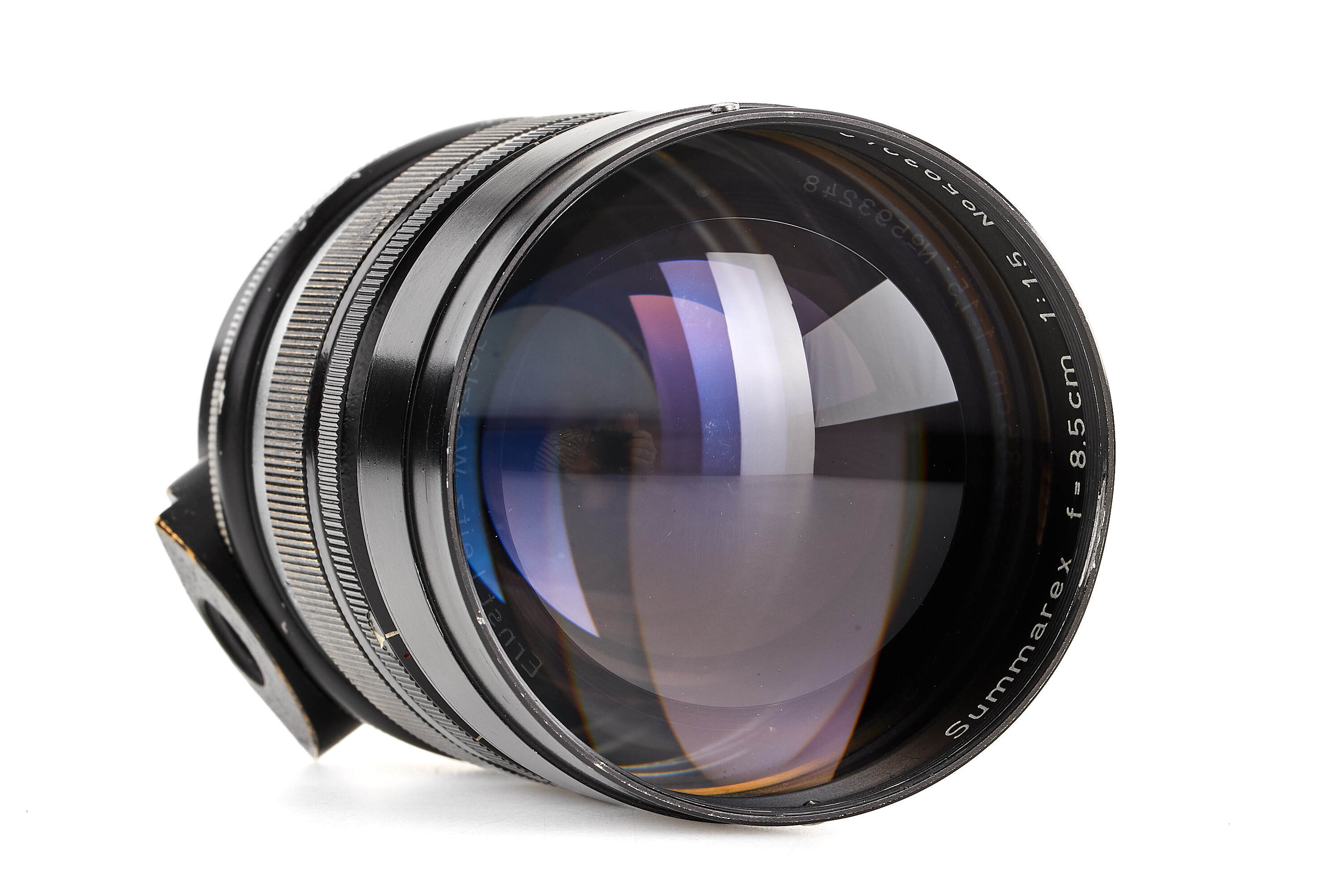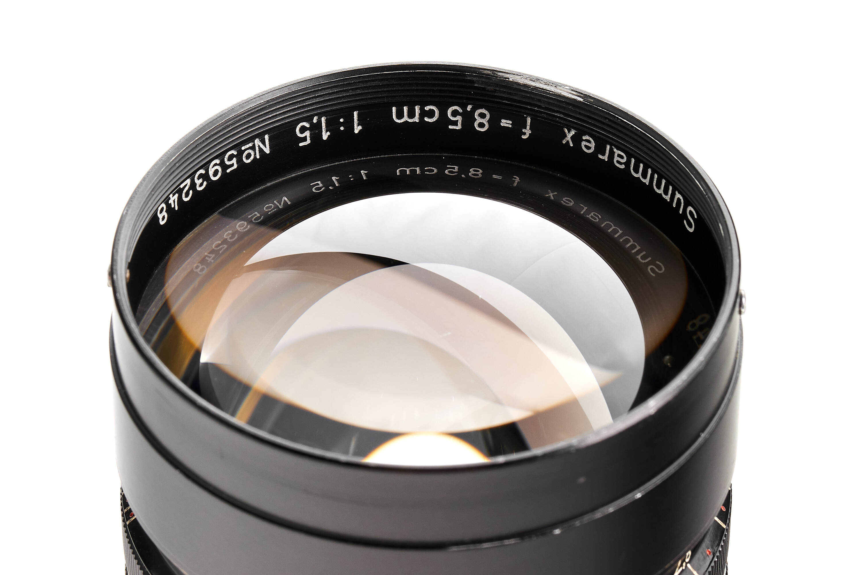 Very rare early original black paint Summarex (less than 300 units produced), meter scale version in good condition, showing signs of use, very good optics only showing typical bubbles in the glass, note the red dots on the aperture ring for continental scale, with rear lens cap, delivered on 27.08.1948.