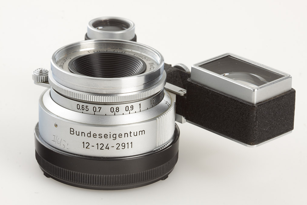 very rare M3 Summaron 3.5/3.5cm for the German Army engraved: Bundeseigentum 12-124-2911, both caps, original maker's box with matching number
