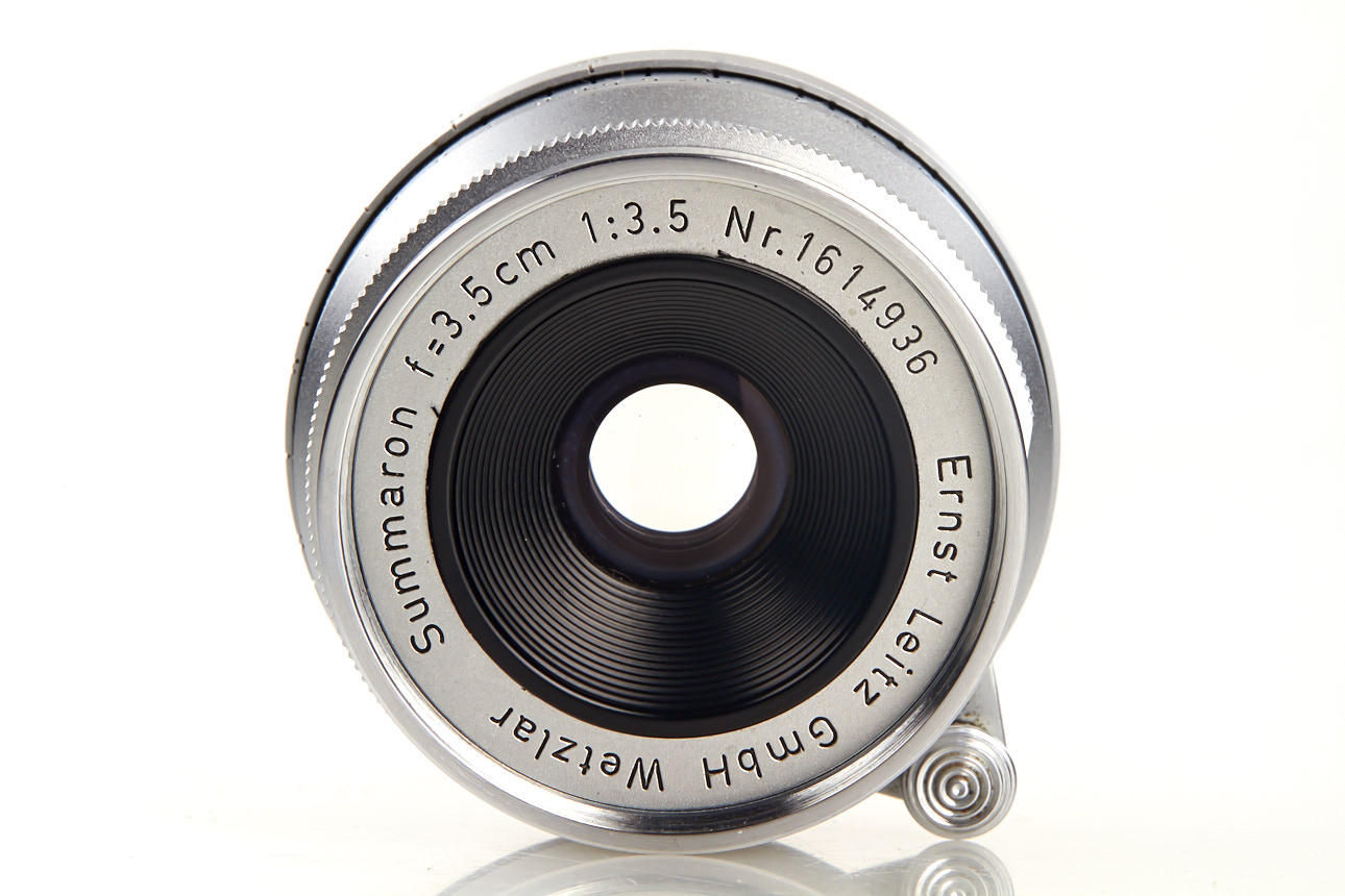 late screw-mount Summaron with E39 filter-size in near mint condition, clean optics, with Leitz UV filter, front and rear cap