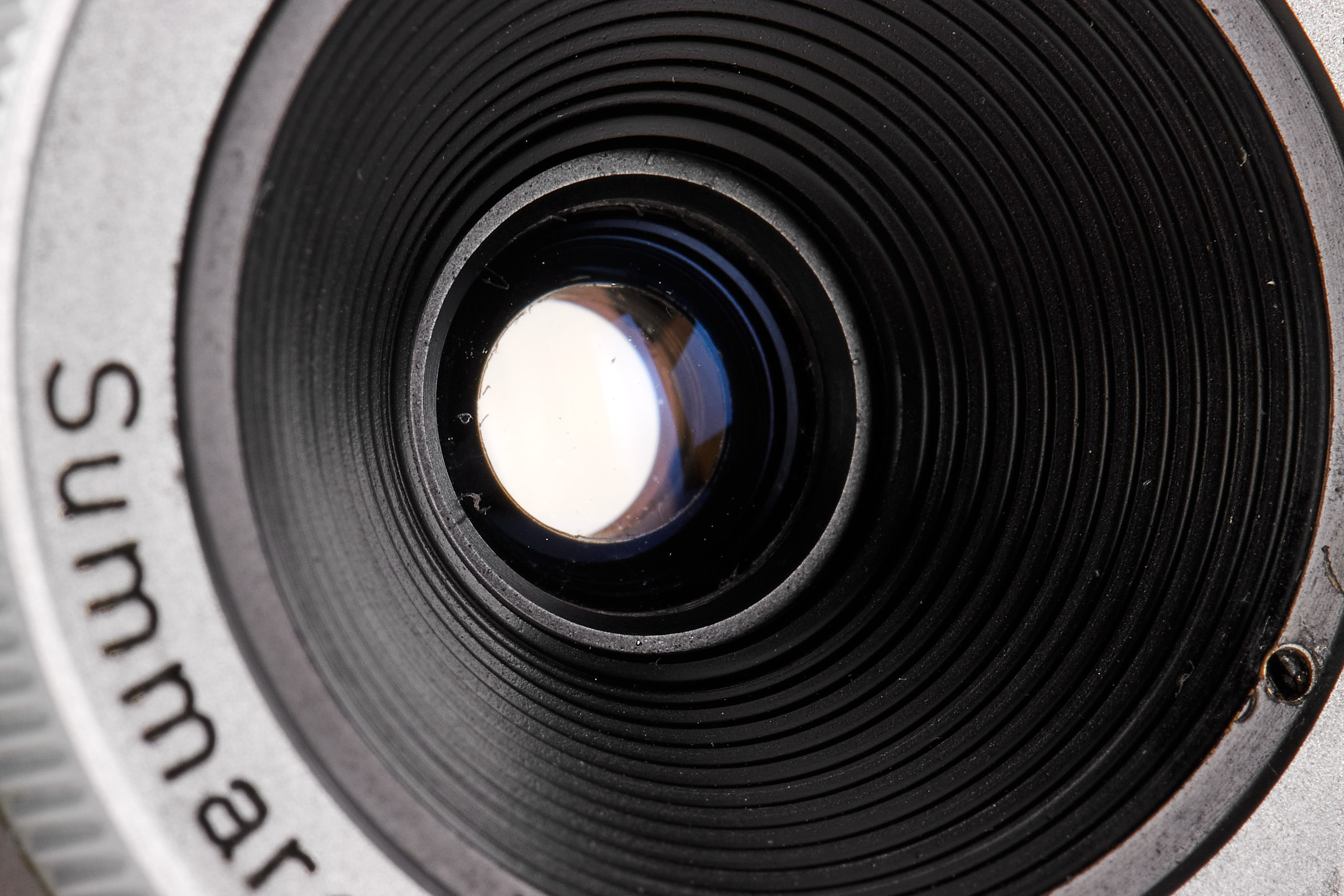 Very rare original factory converted Summaron for use on Leitz Aristophot, a photographic device for micro- and macro photography work, in mint condition, optics showing few cleaning marks, complete with inversion ring and special mask.