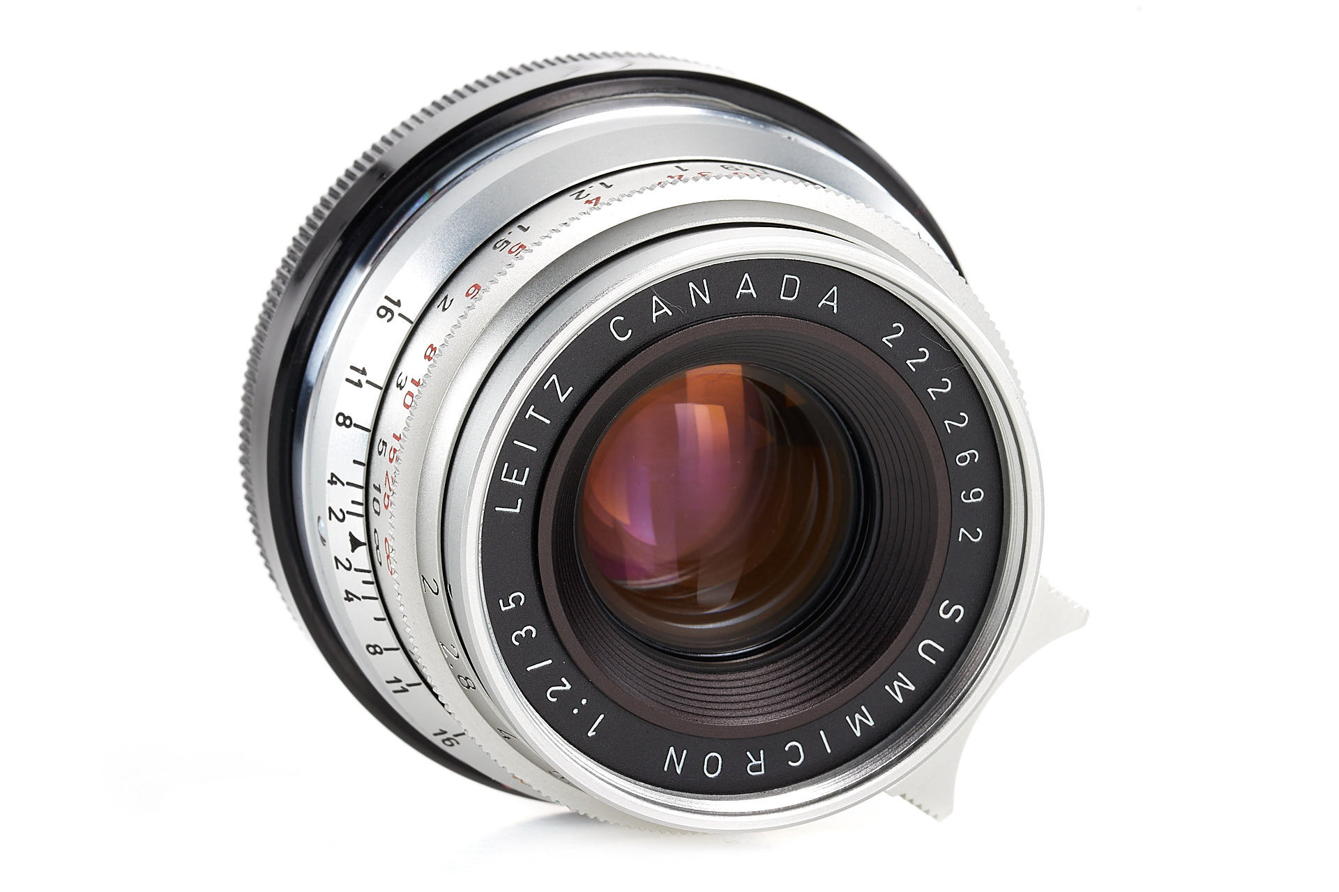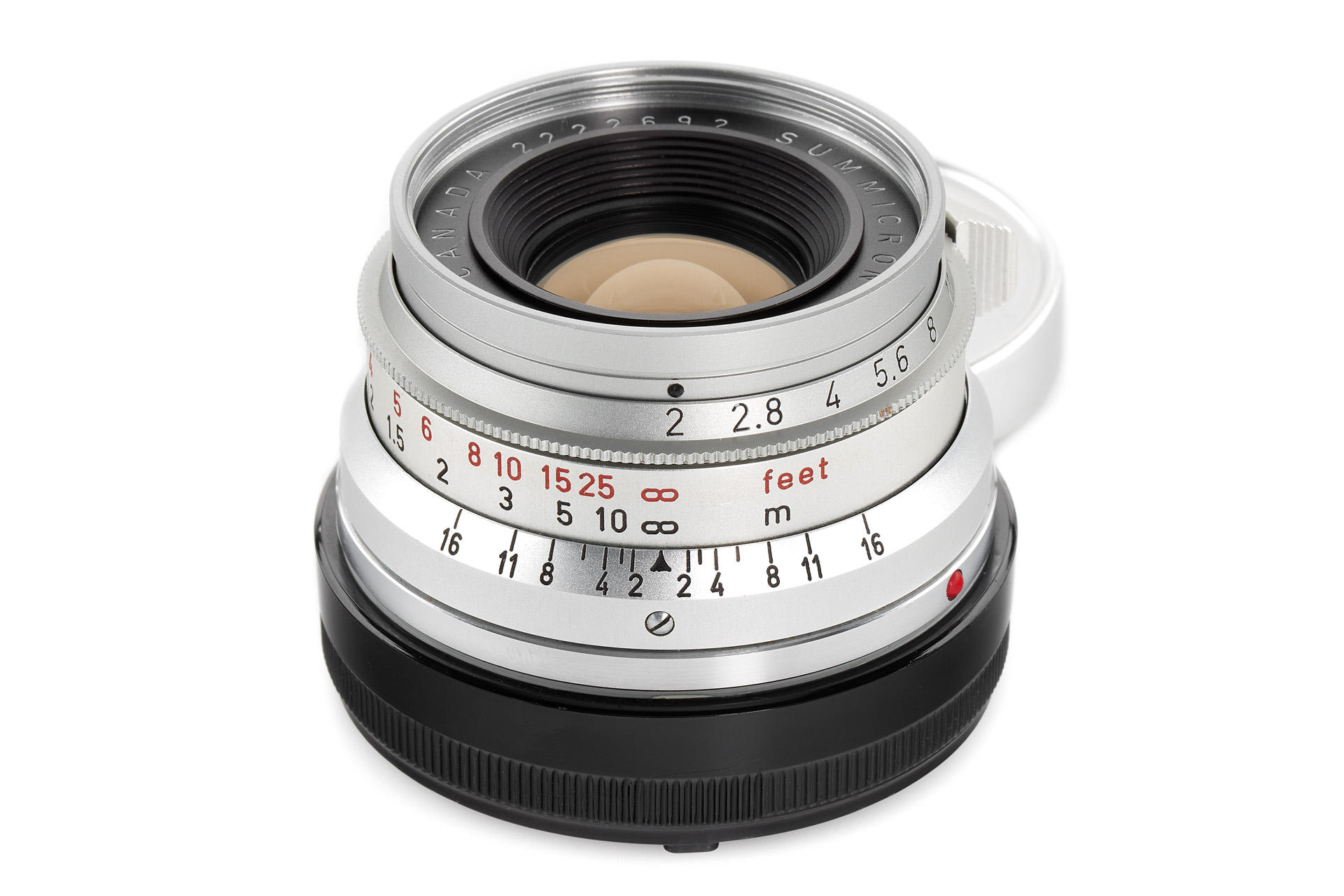 rare and sought after 8-element Summicron made in Canada, in mint condition, very good lenses, with both caps