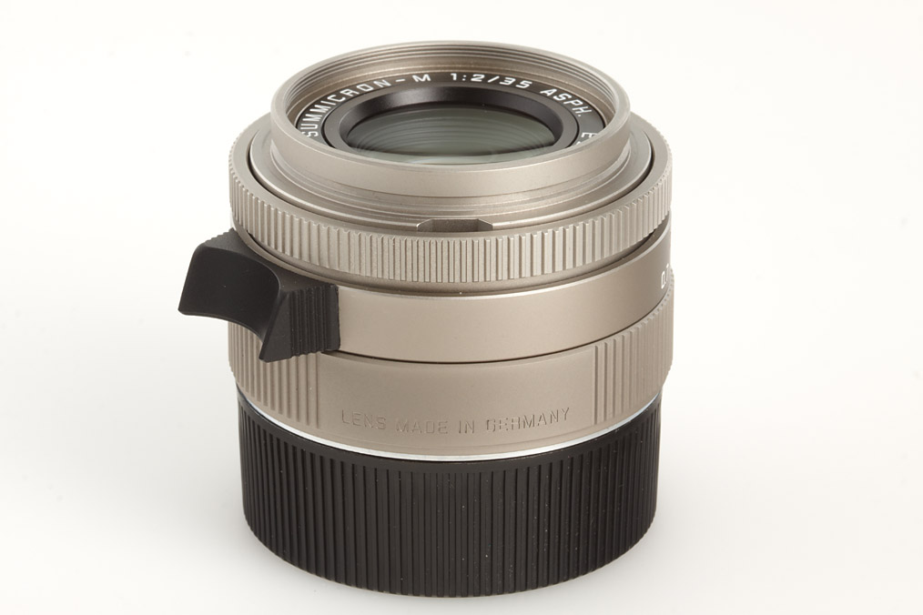 rare titanium lens in mint condition, perfect lenses, both original caps, hood, keeper, papers, maker's box