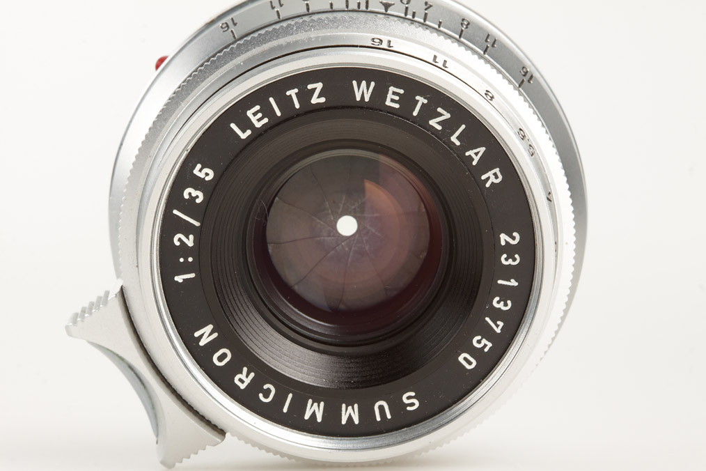 chrome 8-element Wetzlar Summicron for M2 in mint condition with clean lenses, cap, keeper