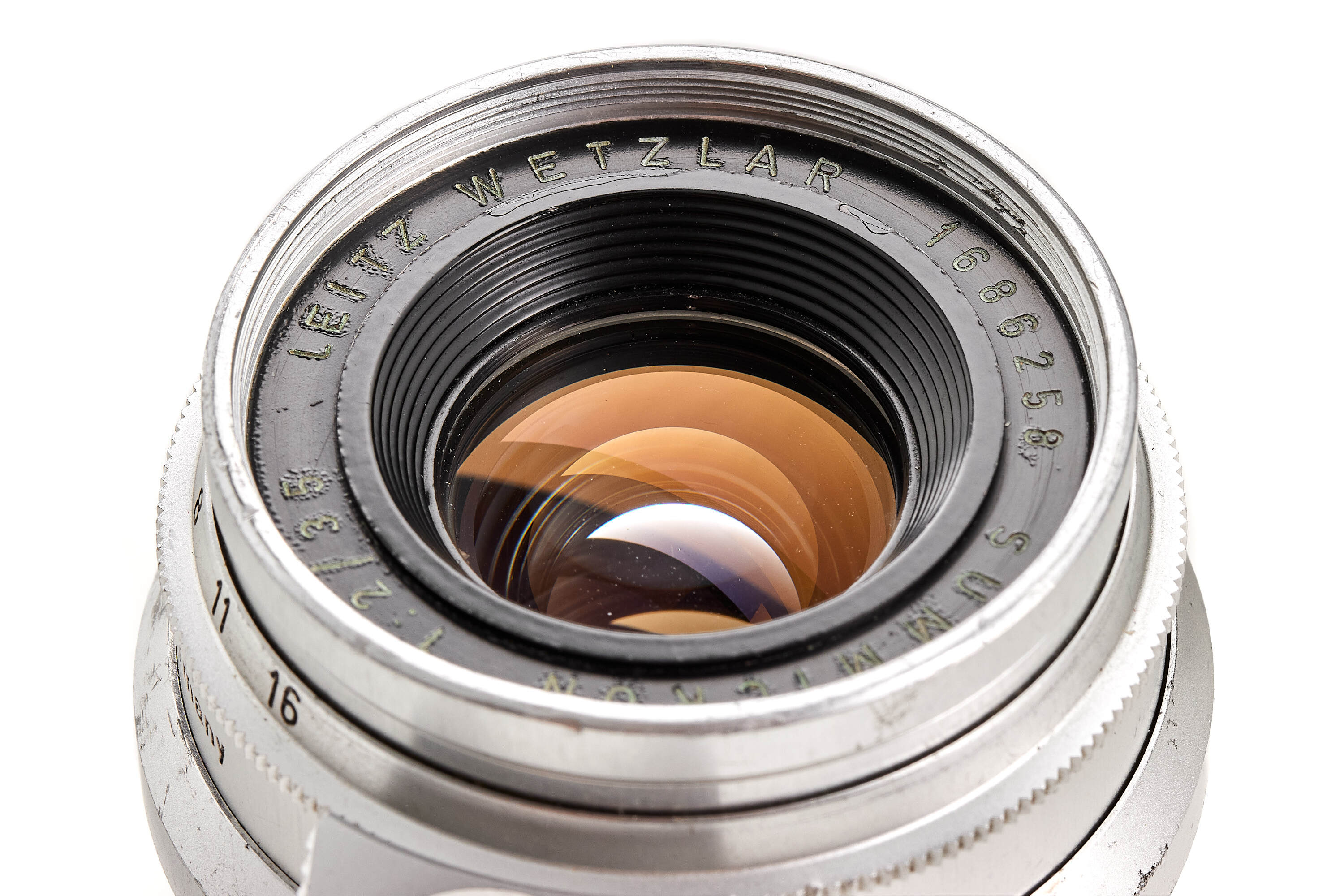 Rare screw-mount 8-element Summicron chrome made in Wetzlar with focus from 1m to infinity, in good condition, the screw-mount shows some damages (not affecting the operation or image quality), clean and clear optics, with rear cap.