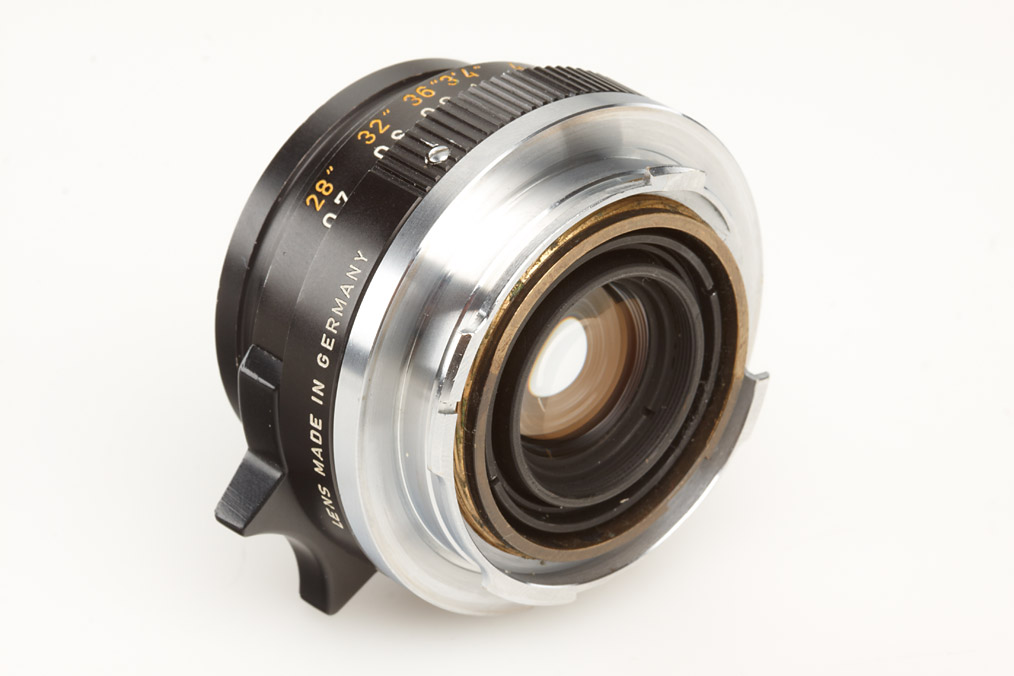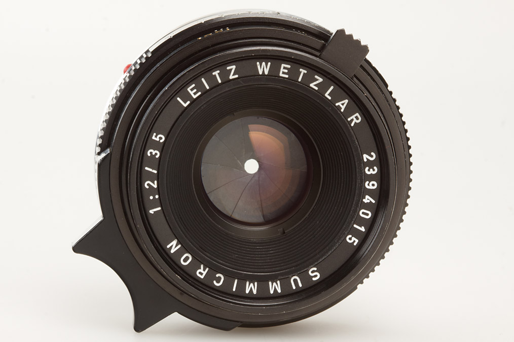 near mint 6-element Summicron, second version, scooped focus control lever, clean lenses, E39 filter thread, caps