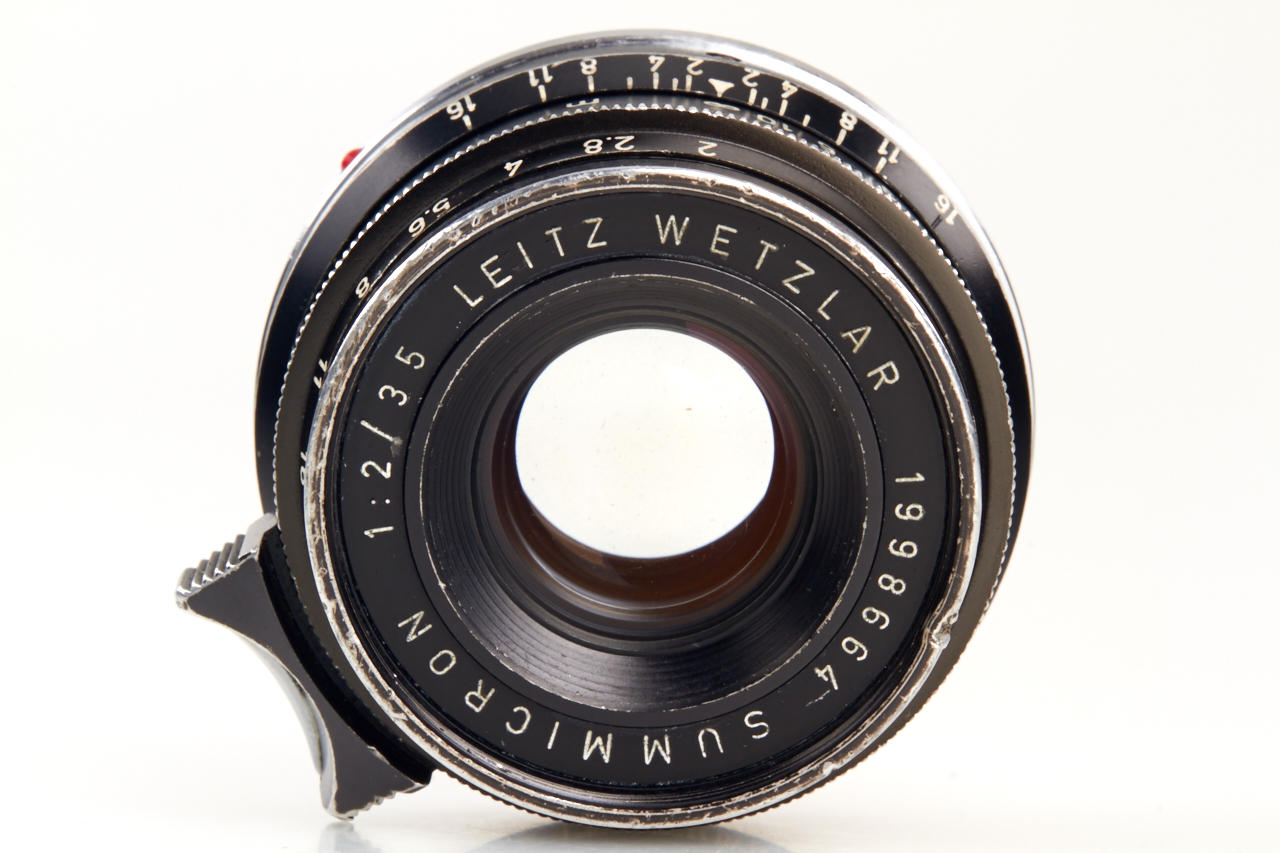 rare black anodised 8-element Wetzlar Summicron 2/35mm for M2, in used condition, clear lenses with some cleaning marks on front element, both caps - provenience: Ulrich Mack