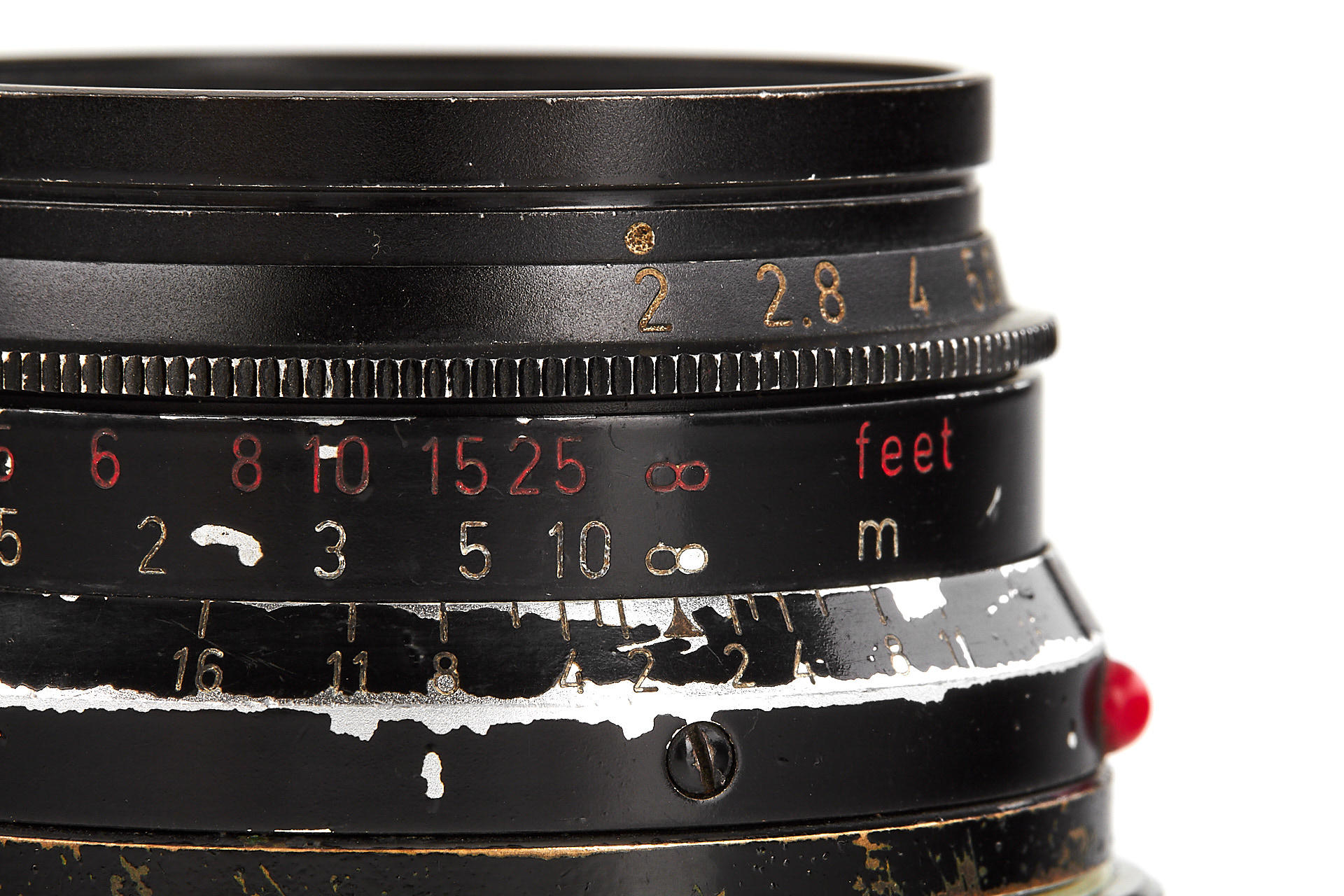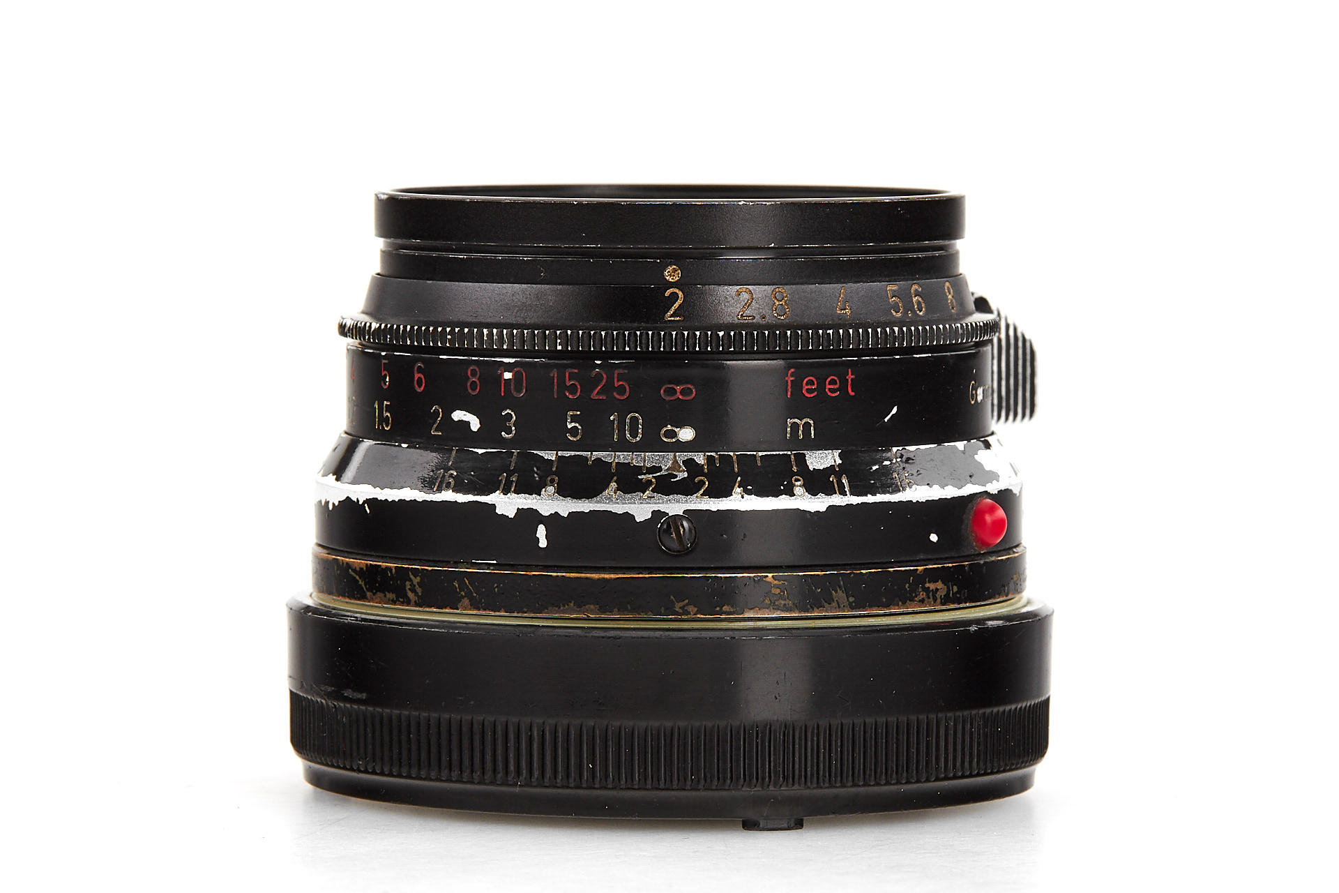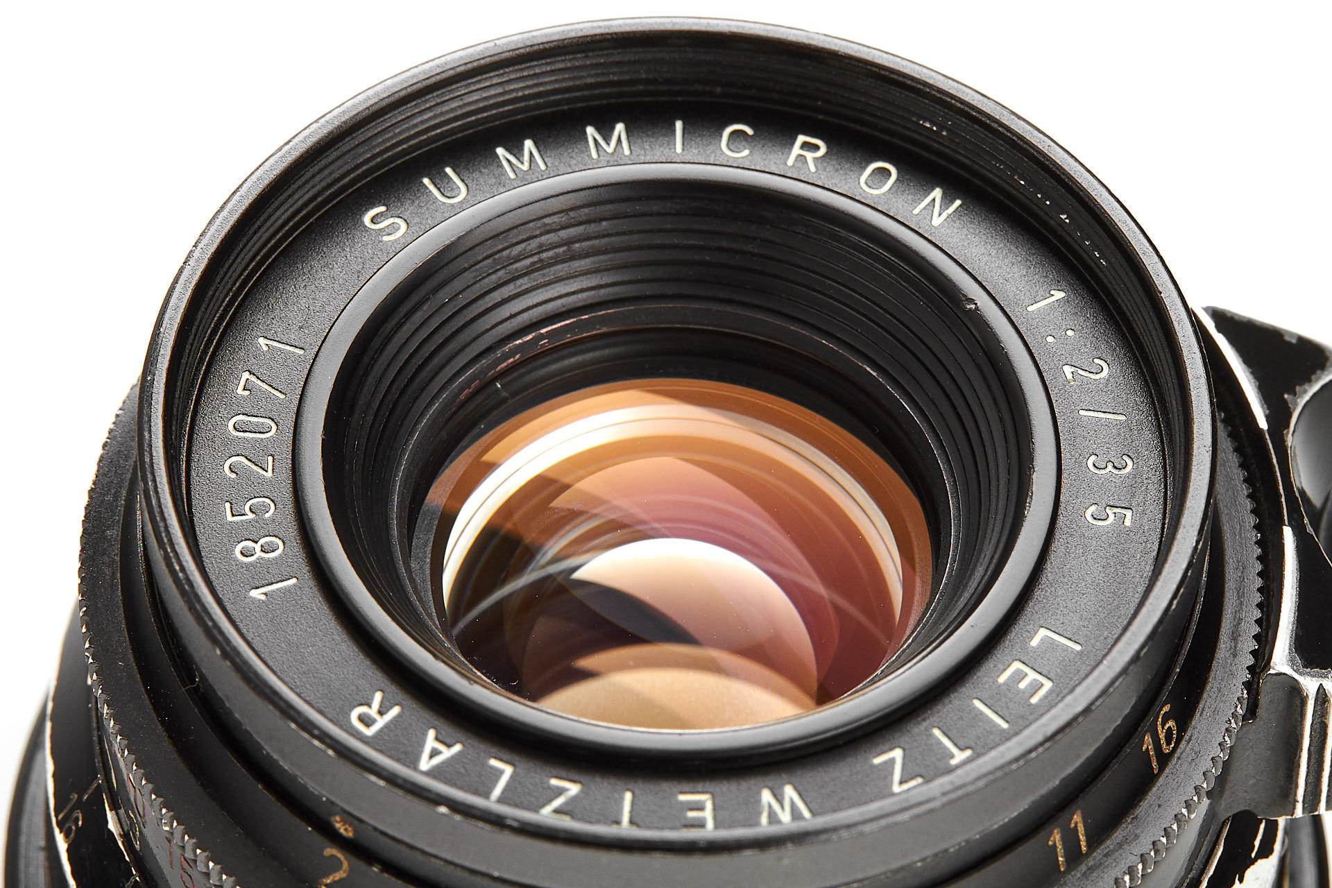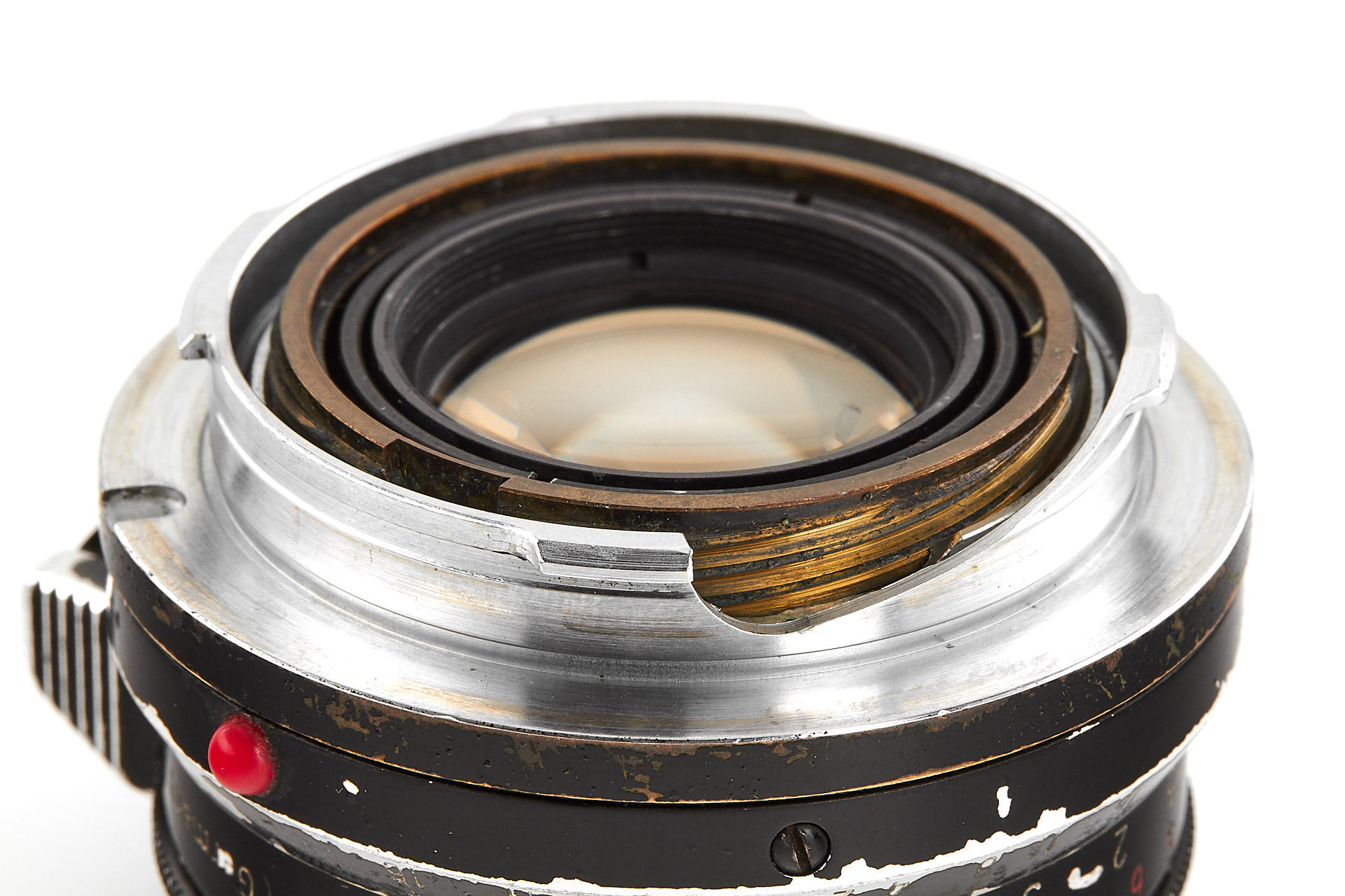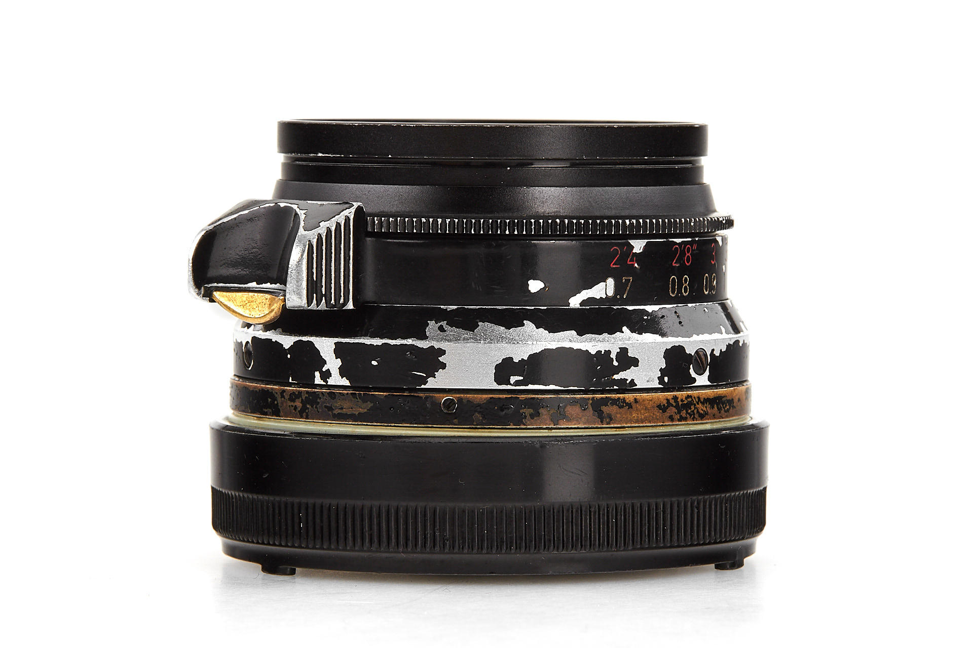 sought-after very rare black paint 8-element Wetzlar Summicron, partially painted on aluminium (only a few of these uncommon variants are known to exist), with good optics (slightly hazy), both caps