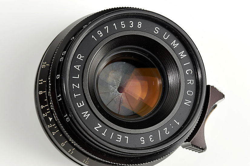 black 8-element Summicron, some parts black painted, clean lenses, both caps