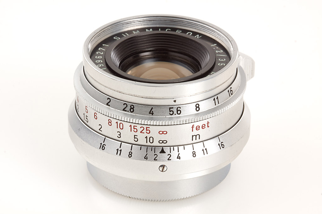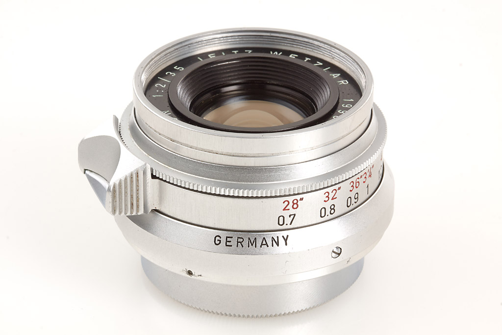 in near mint condition, Wetzlar Summicron with removed M-adapter, focus to 0.7m, clean lenses (caps, UVa filter), IROOA hood, SBLOO 3.5cm BL finder (cond. B)