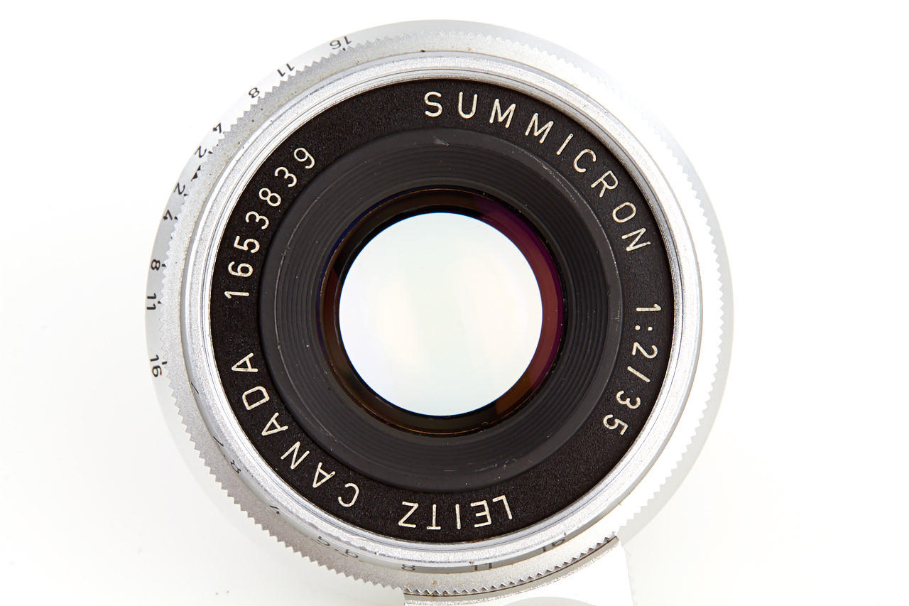 screw-mount 8-element Summicron in excellent condition, optics with only few hairline marks on front element, with front and rear cap