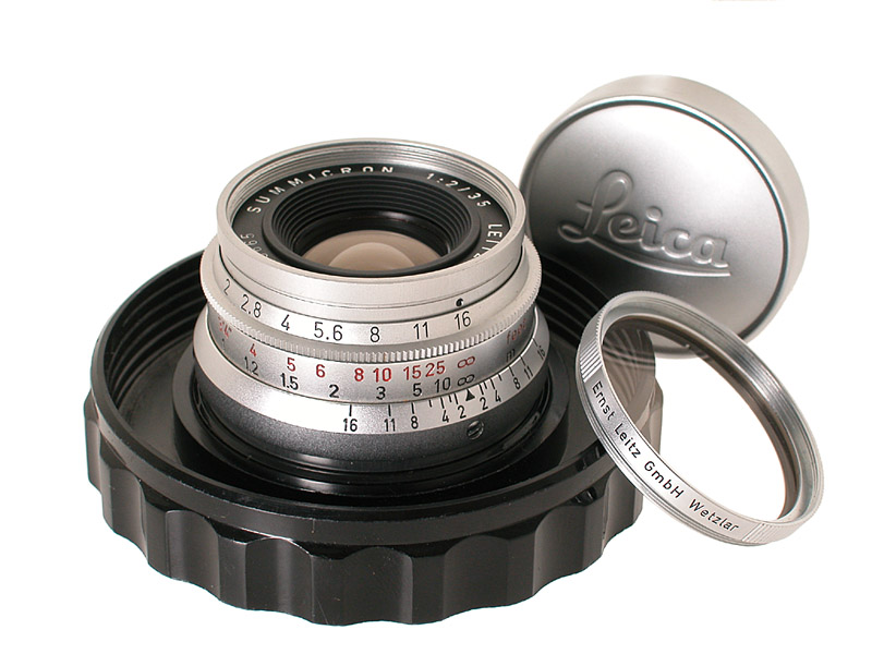 Neuwertiges und seltenes, original Schraub-Summicron, perfekte Linsen, UV-Filter, Deckel, Köcher
