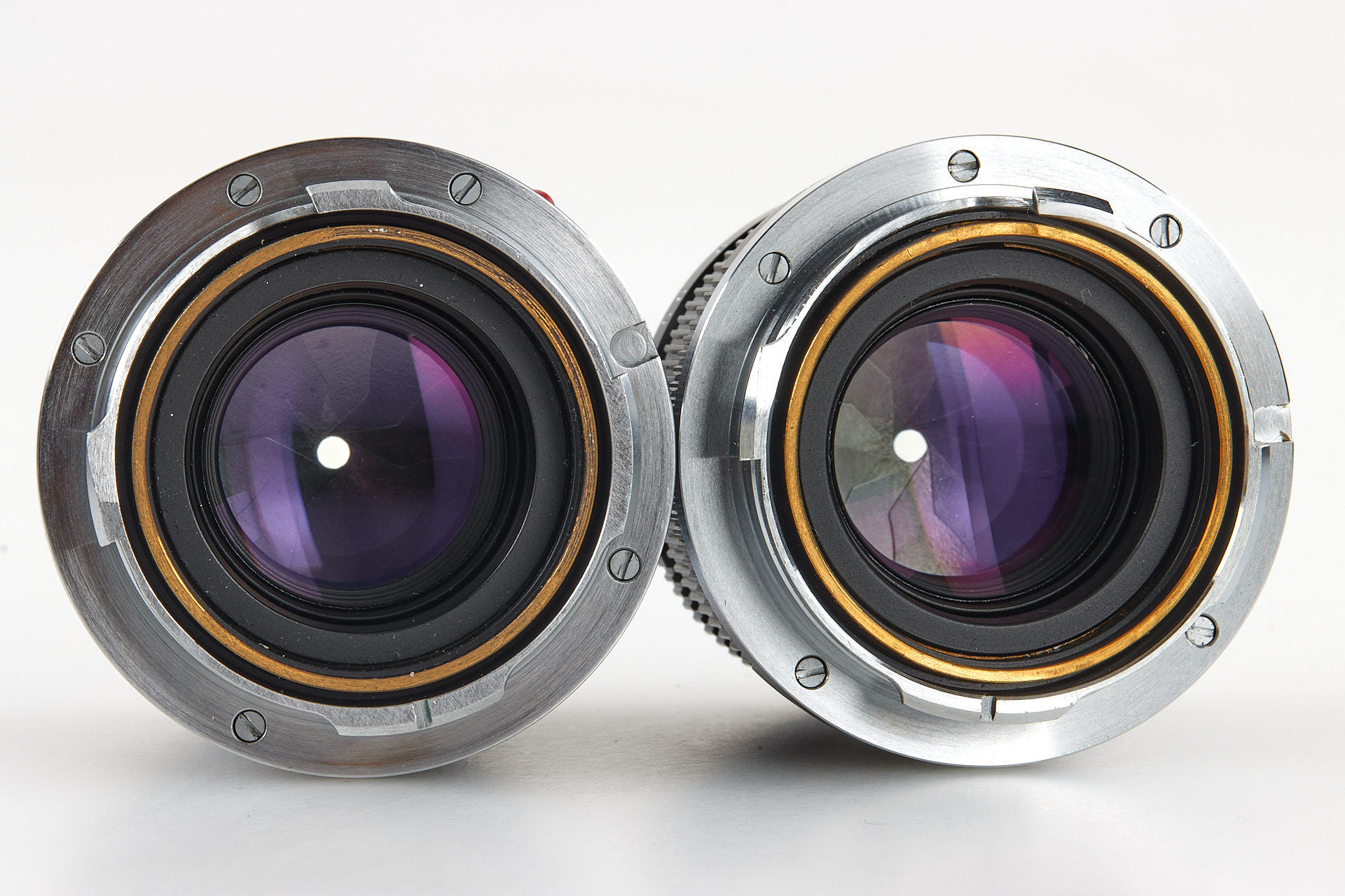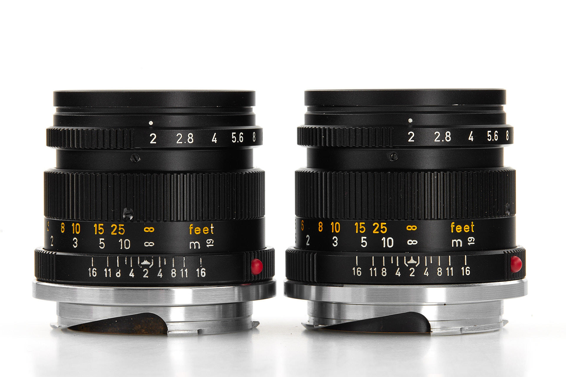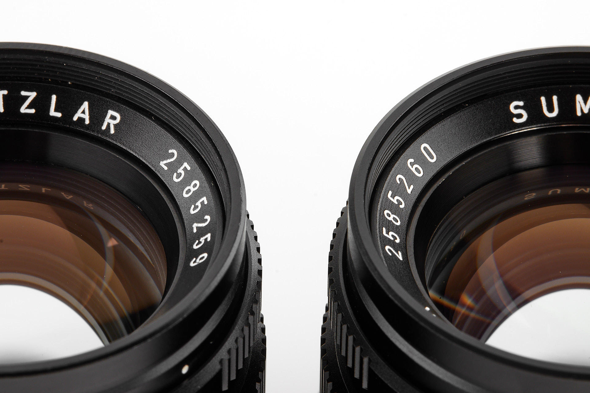 Very attractive set of two Summicron 2/50mm with consecutive serial numbers, both in mint condition and perfect lenses, with plastic keeper and maker's boxes