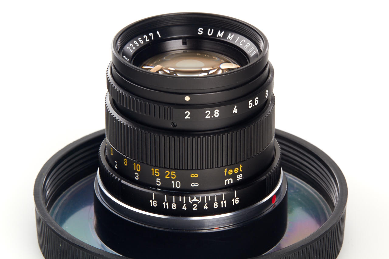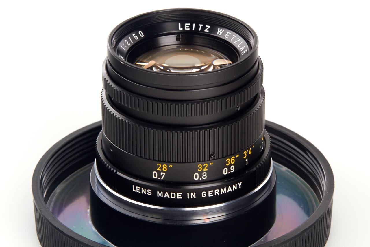 in near mint condition with clean optics, 12585 hood, front cap, plastic keeper, in maker's box