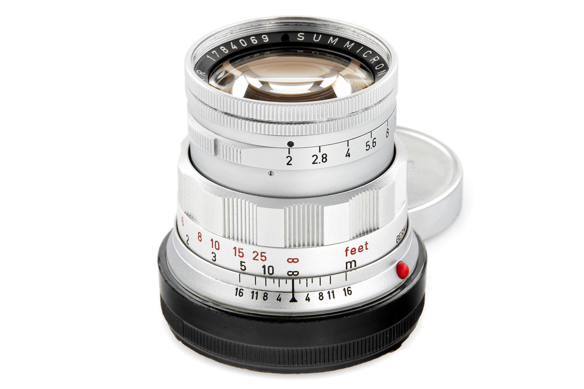 rigid Summicron in near-mint condition, good optics (tiny spot of separation in the middle - not affecting the photo quality), with front and rear cap