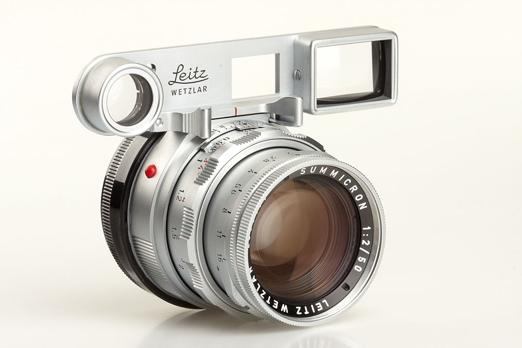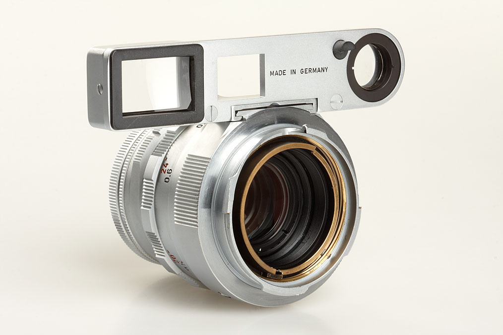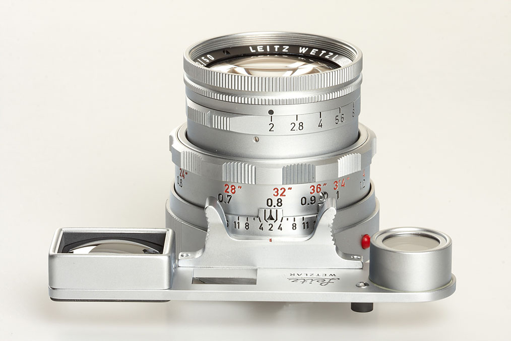 new (never used) close focus Summicron 11318 (slightly hazy) with both caps, viewfinder attachment, import certficate and maker's box with matching number - very hard to find in this perfect condition