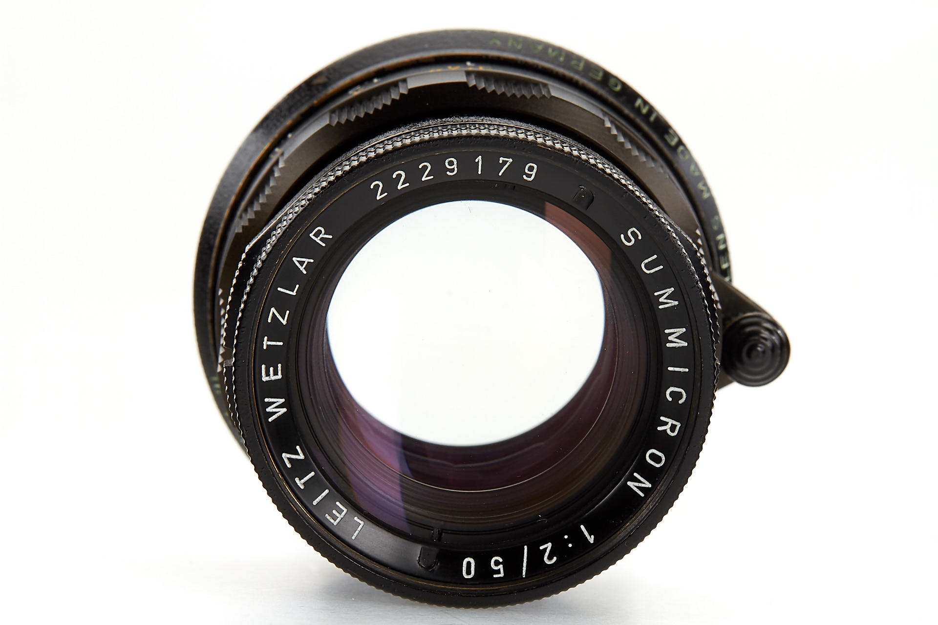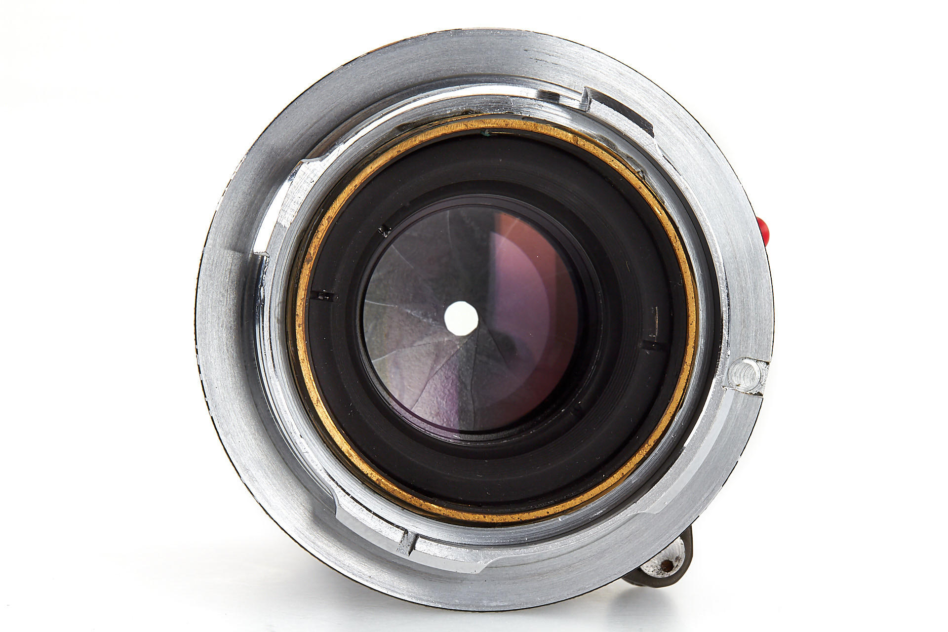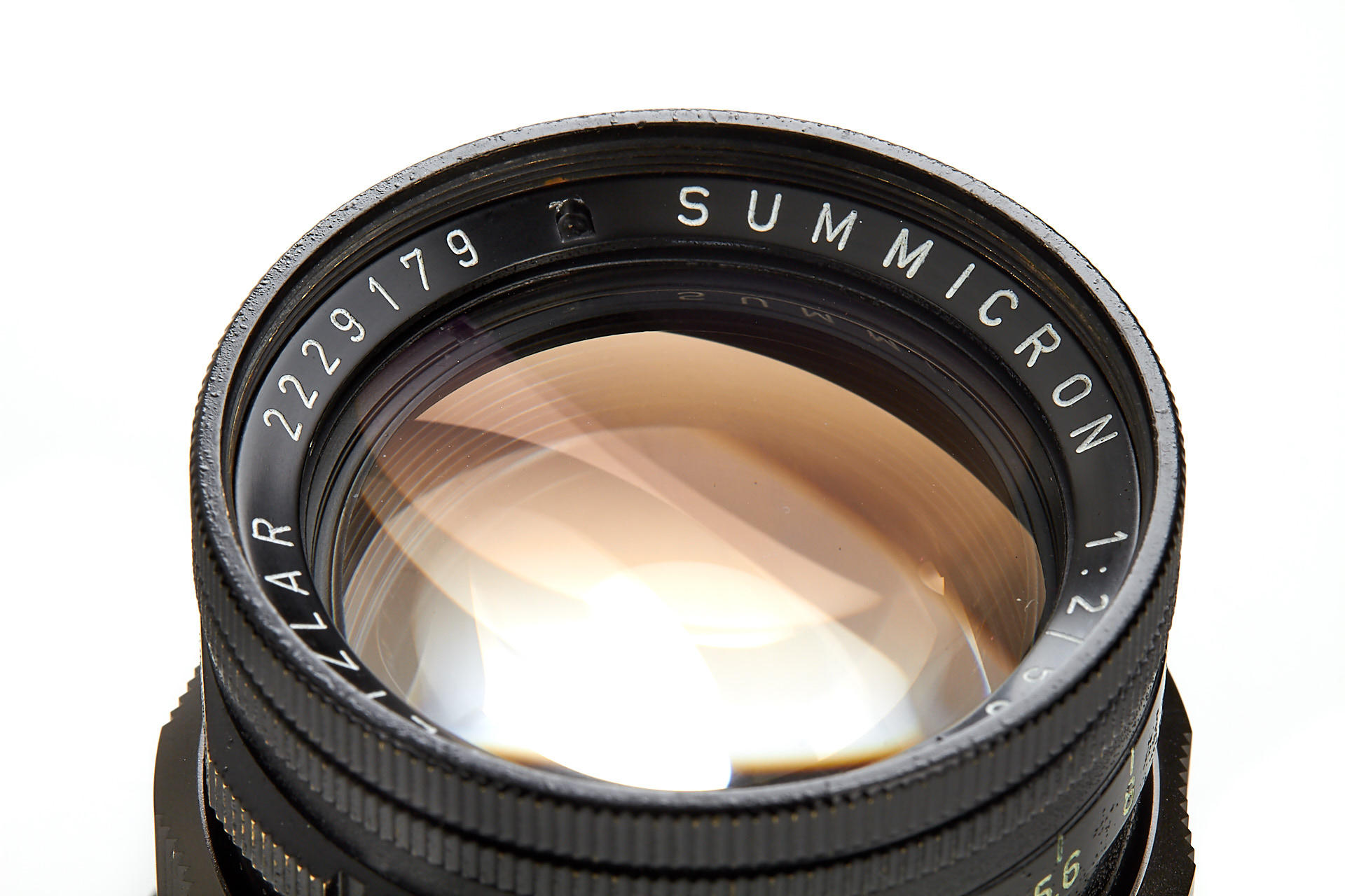 original black paint Summicron (later version with black/chrome focusing ring and chrome mount), in excellent condition, typical 'bubbles' in the black painted parts, very good optics, with front and rear cap
