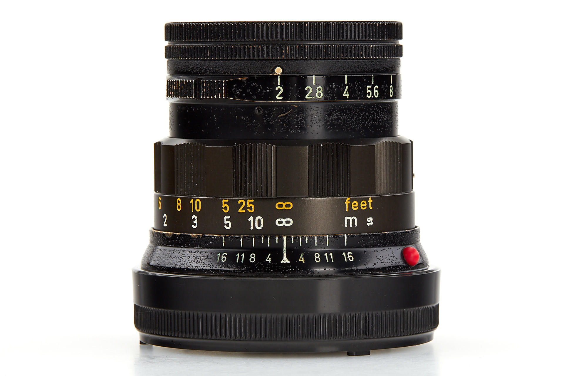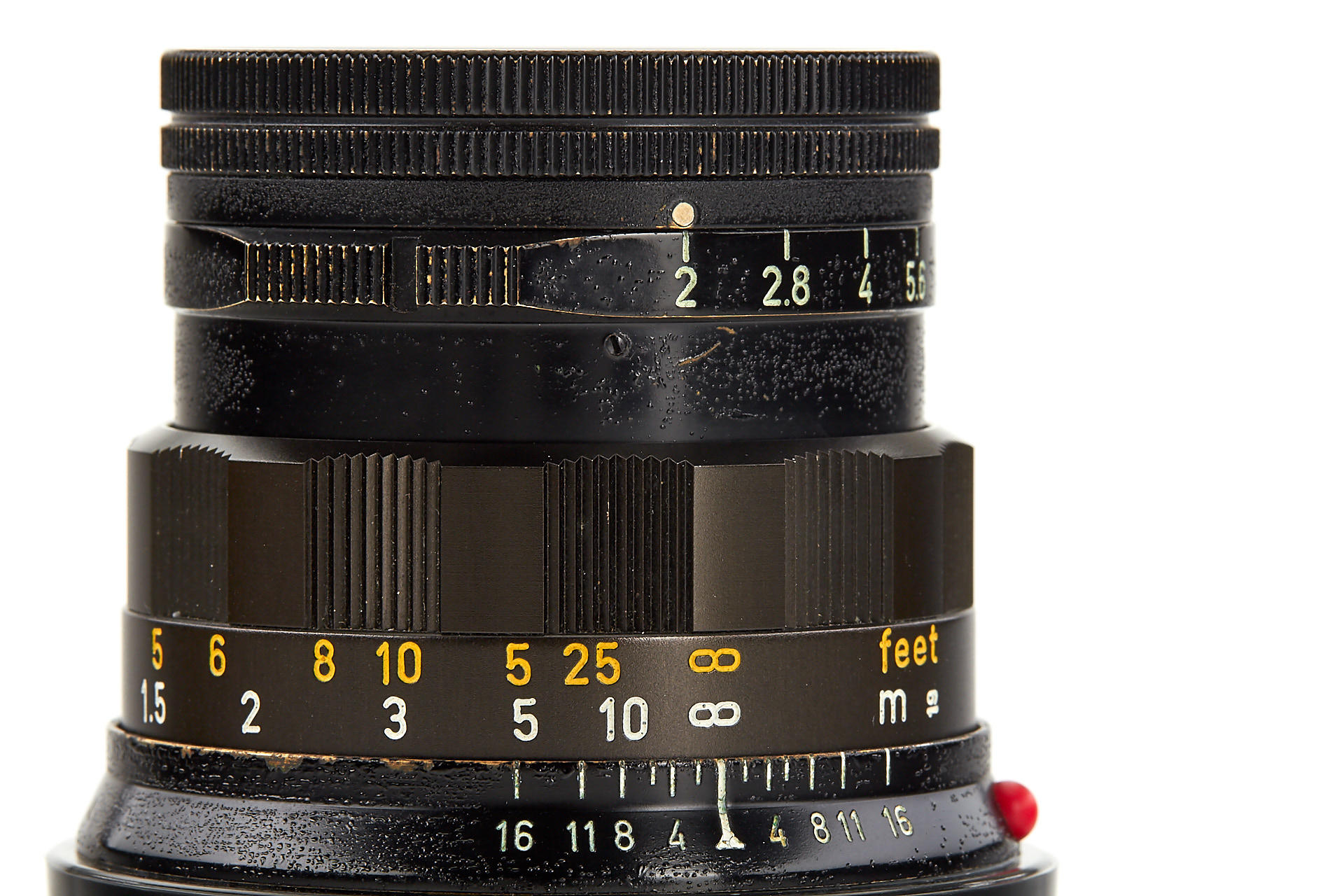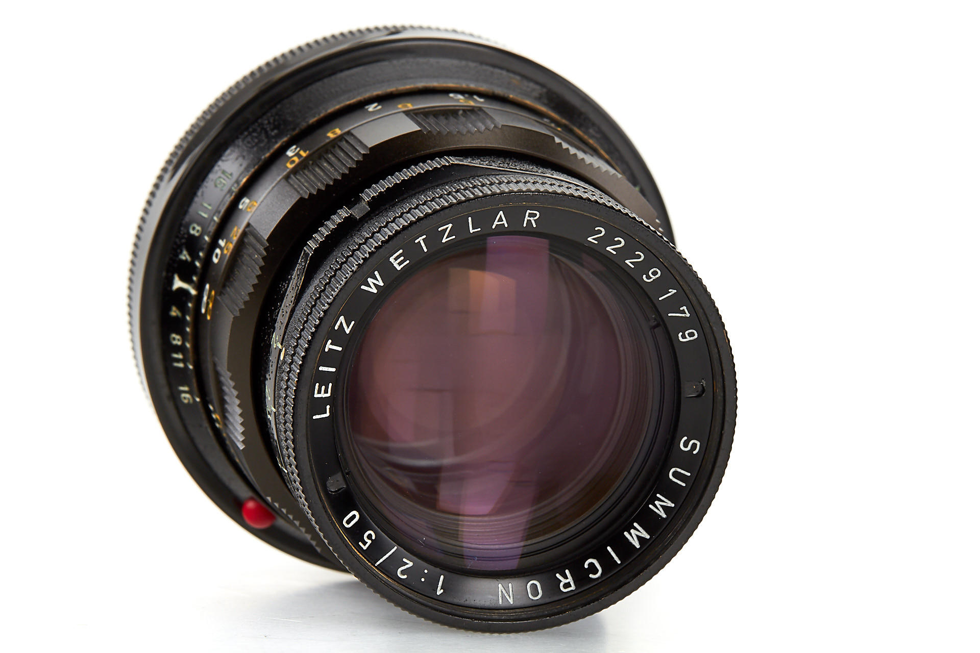 original black paint Summicron (later version with black/chrome focusing ring and chrome mount), in excellent condition, typical 'bubbles' in the black painted parts, very good optics, with front and rear cap