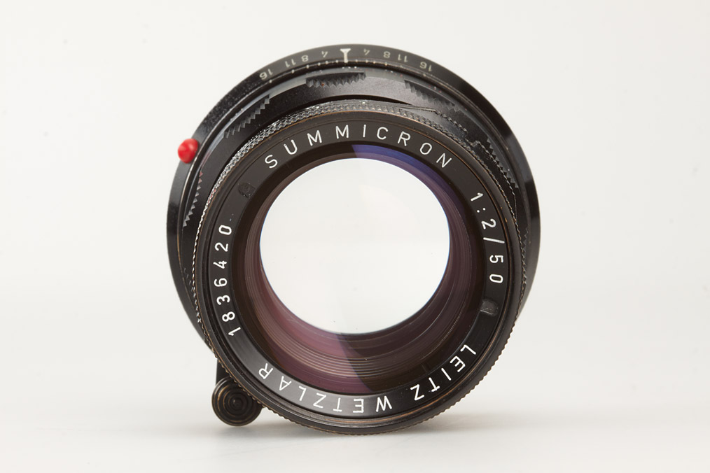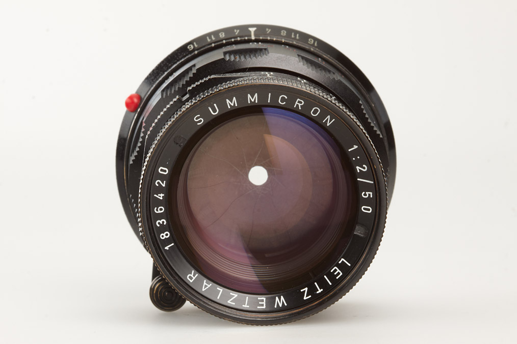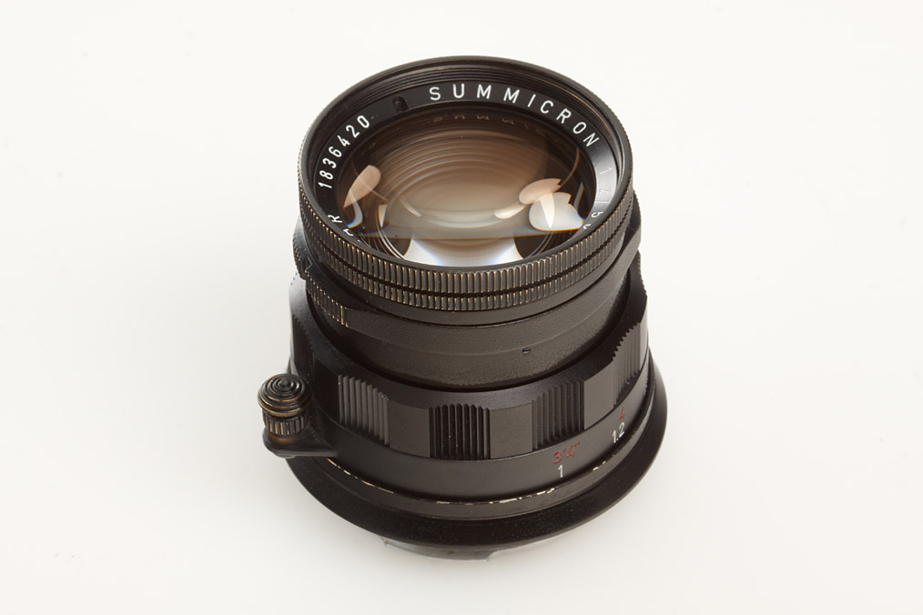 original black painted Summicron in beautiful condition, clean lenses, cap, rare special leather case