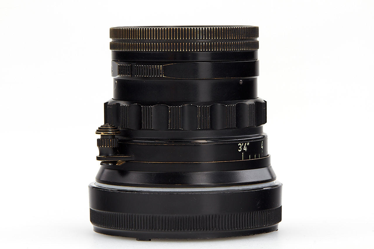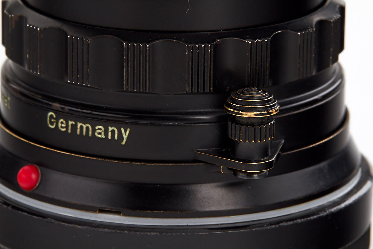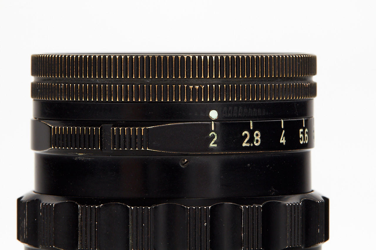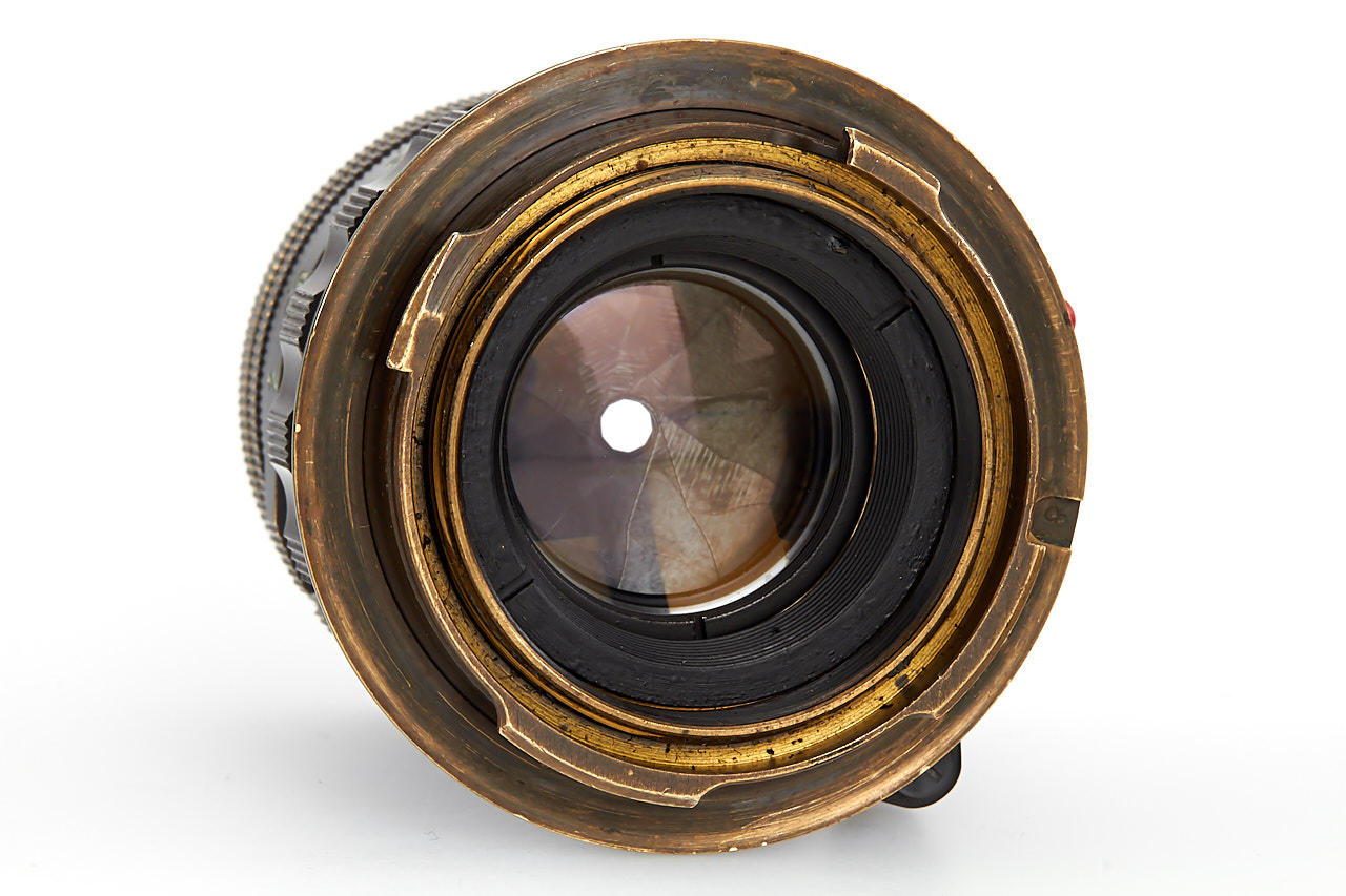 early and rare black paint Summicron with black brass lens mount, feet scale, in very fine condition, good optics (slight cleaning marks on front element), incl. IROOA hood, front and rear cap and keeper - a classic lens for a black MP