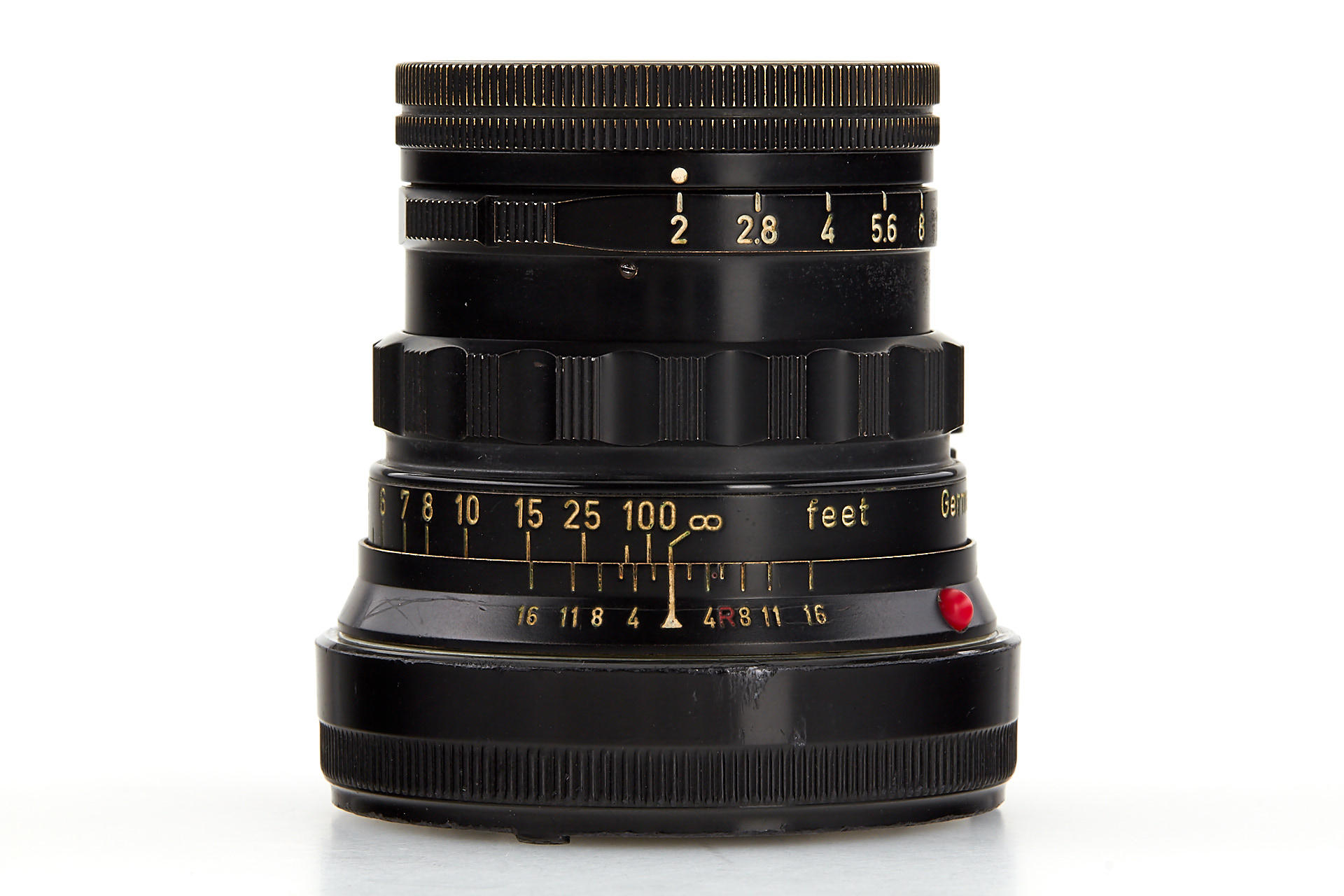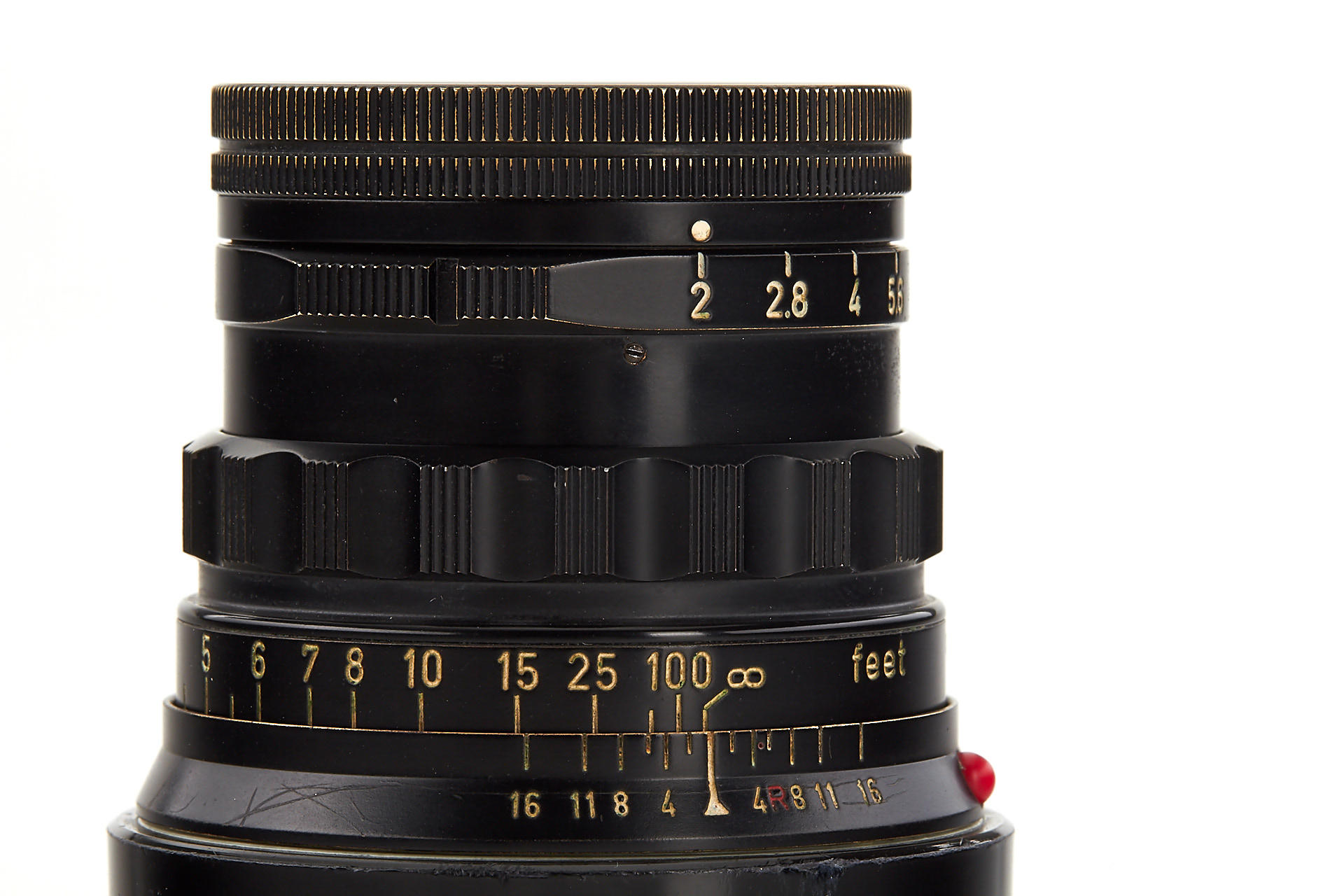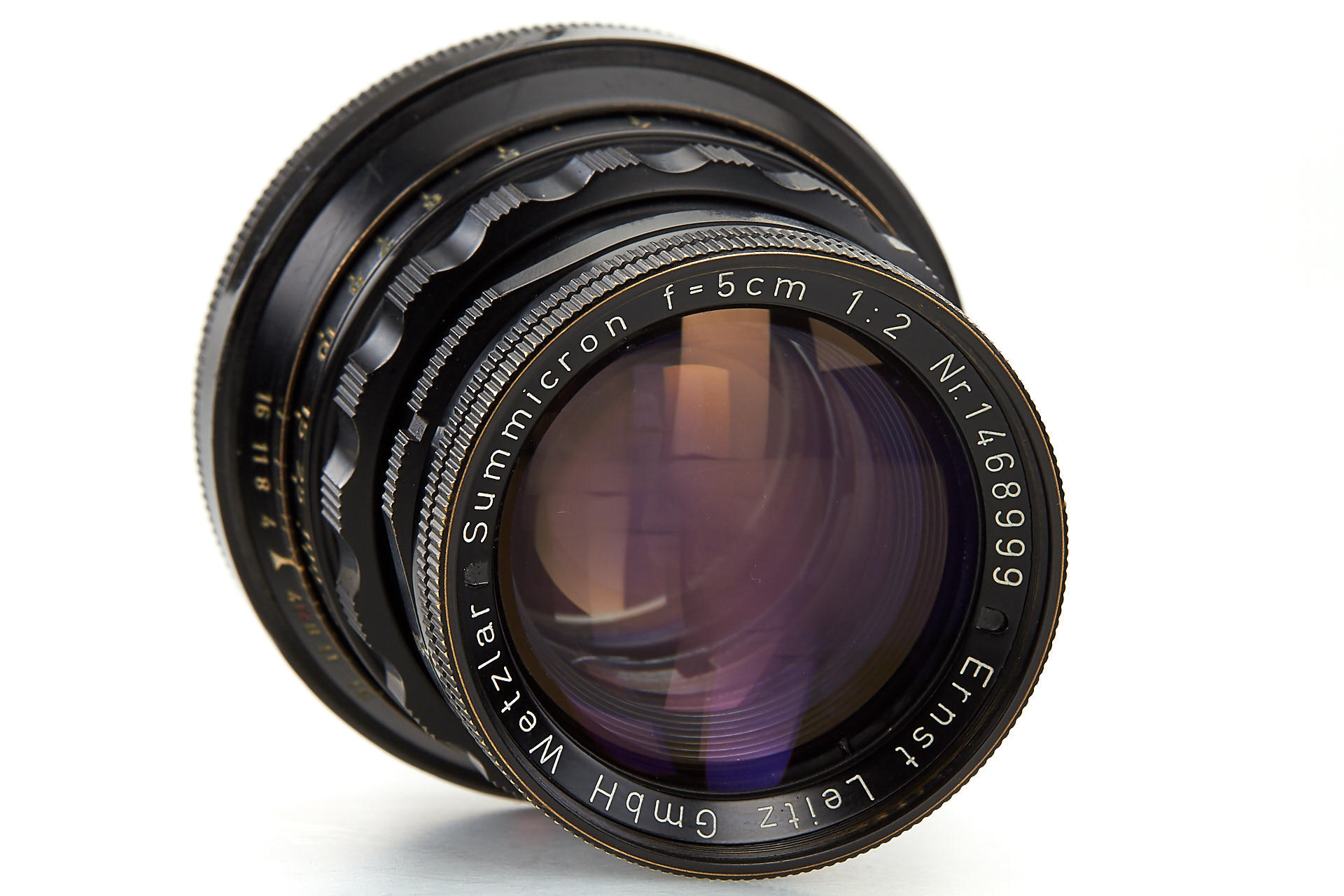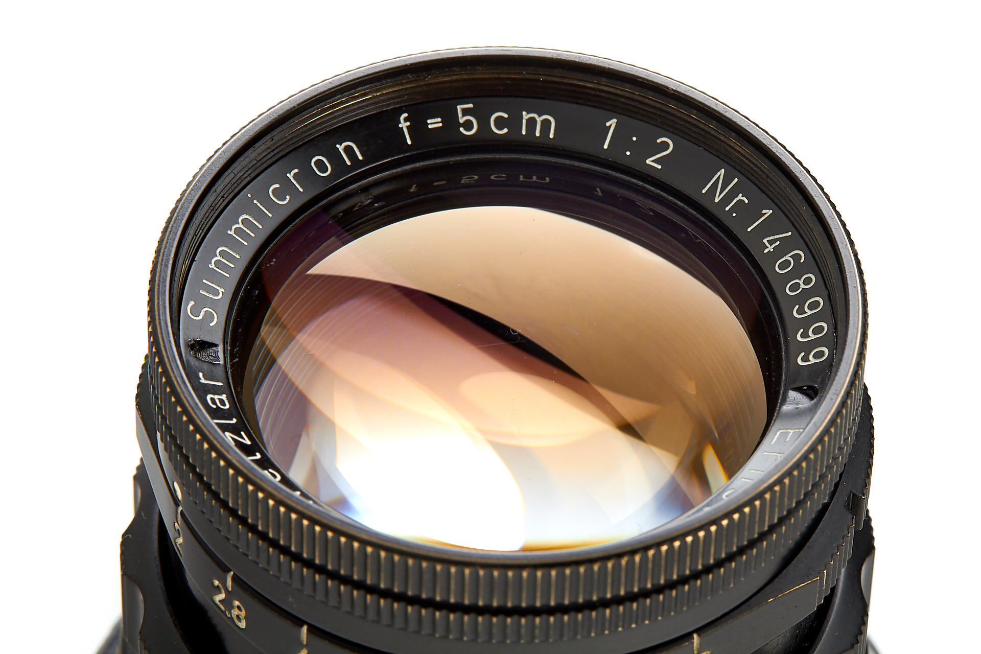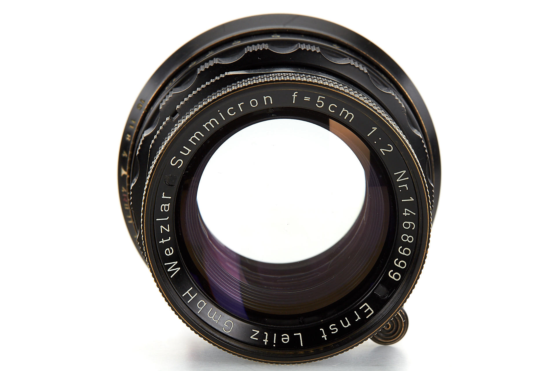 early and rare black paint Summicron with brass lens mount, feet scale, in beautiful condition, good optics, incl. both caps
