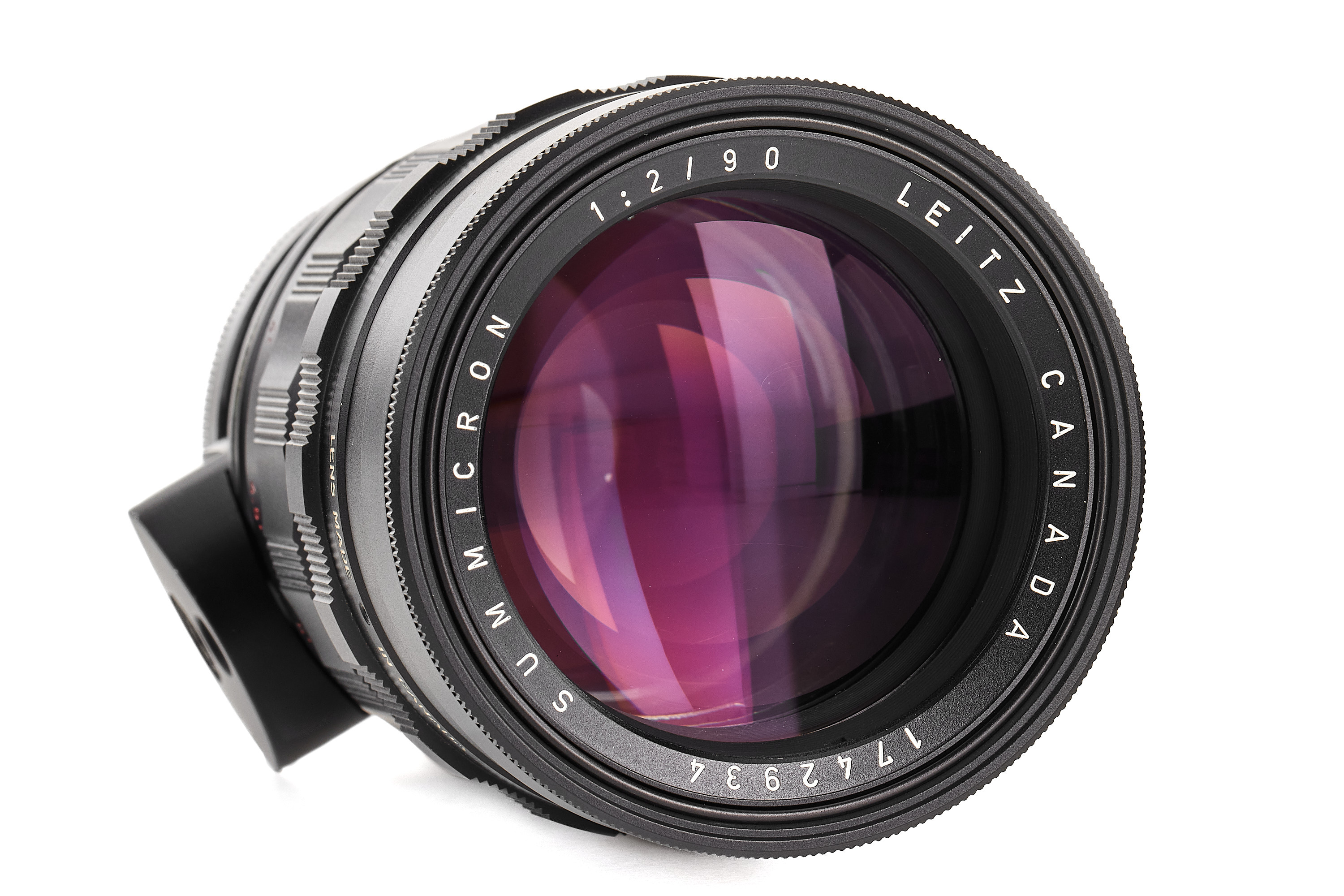 Uncommon, black Summicron 90mm, with a small intermediate ring finished in black paint (other parts black chrome), in near-mint condition, with both caps.